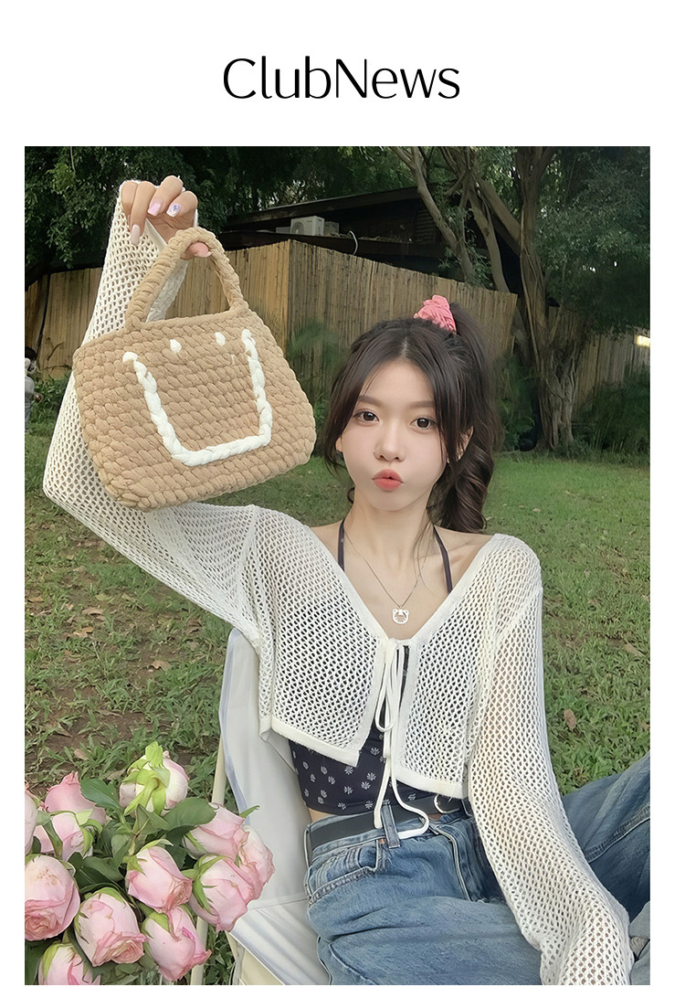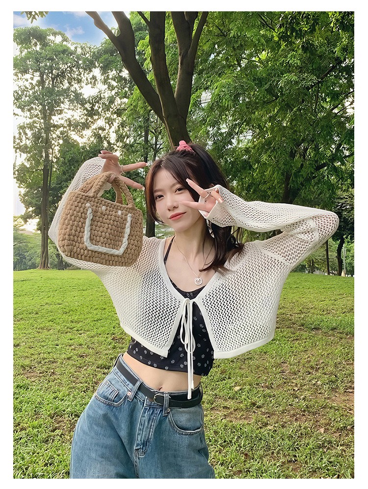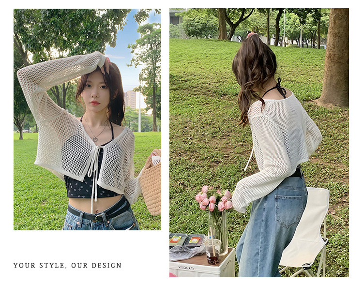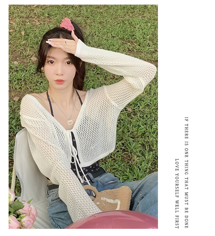 商品名称:V领薄款镂空空调衫女百搭优雅甜美长袖针织外套 234307
