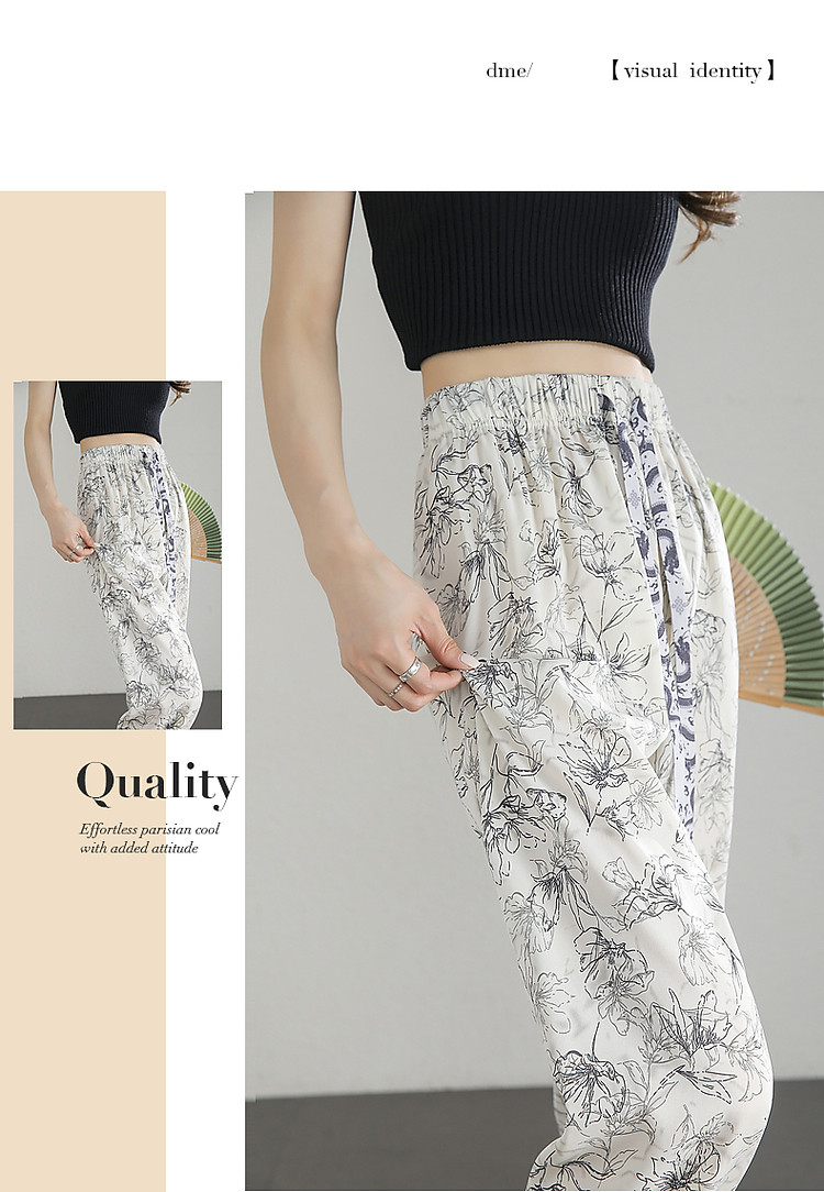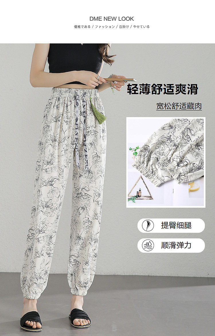商品名称:【国风水墨印象】夏爽滑飘逸薄款舒适松紧腰显瘦藏肉休闲裤 987969