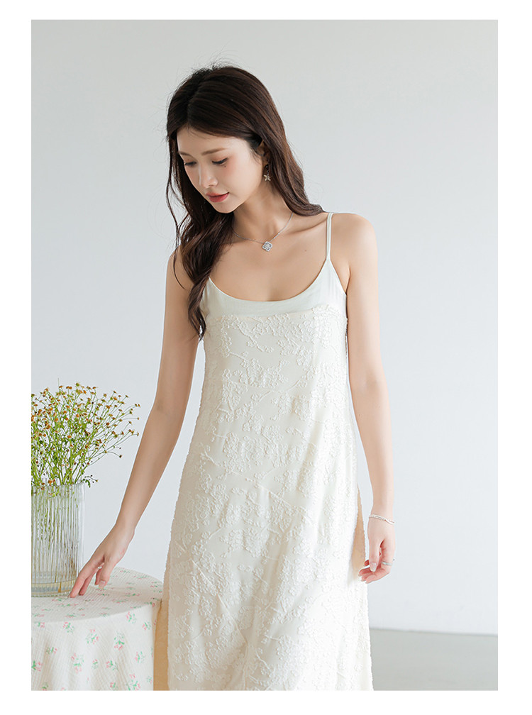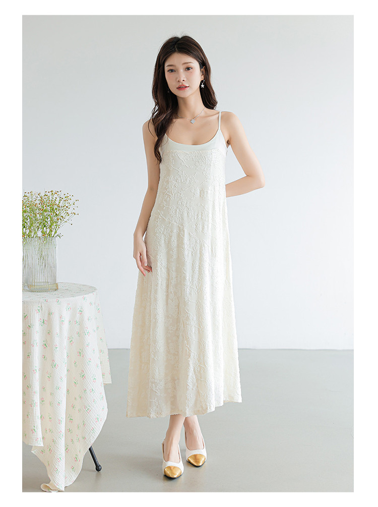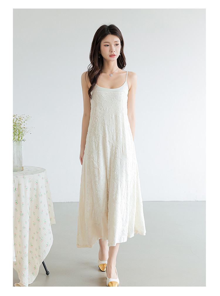 商品名称:清冷高级感温柔气质提花吊带长裙宽松新中式A字连衣裙女 244227