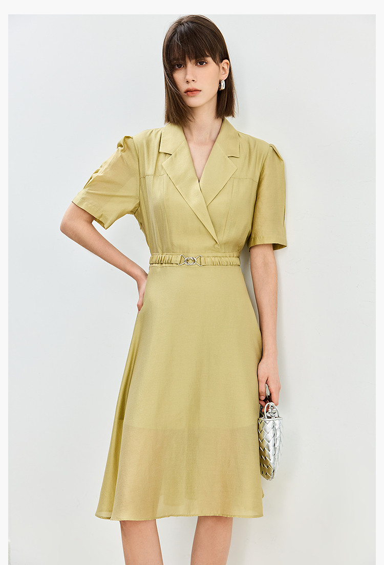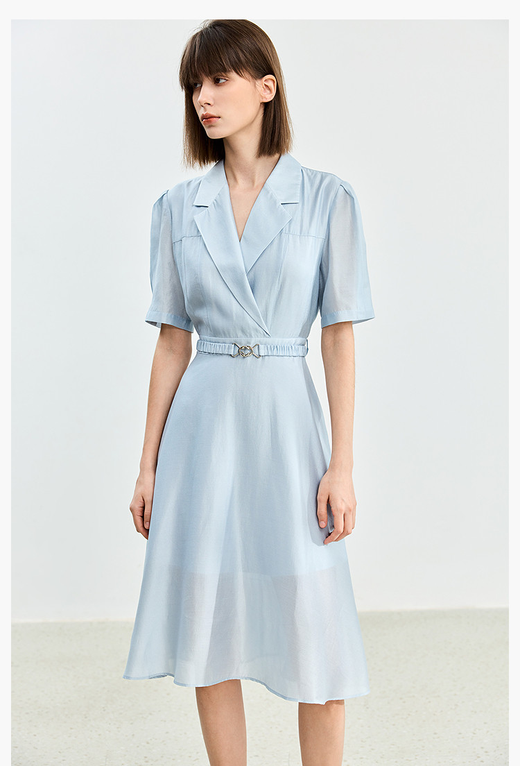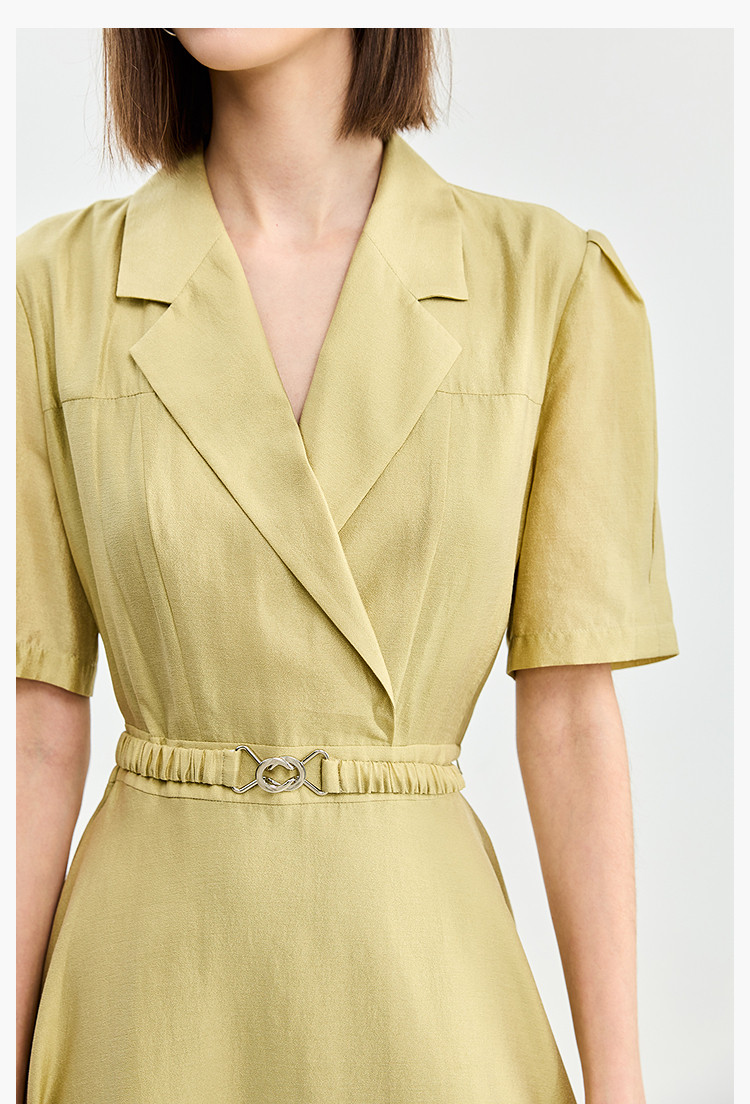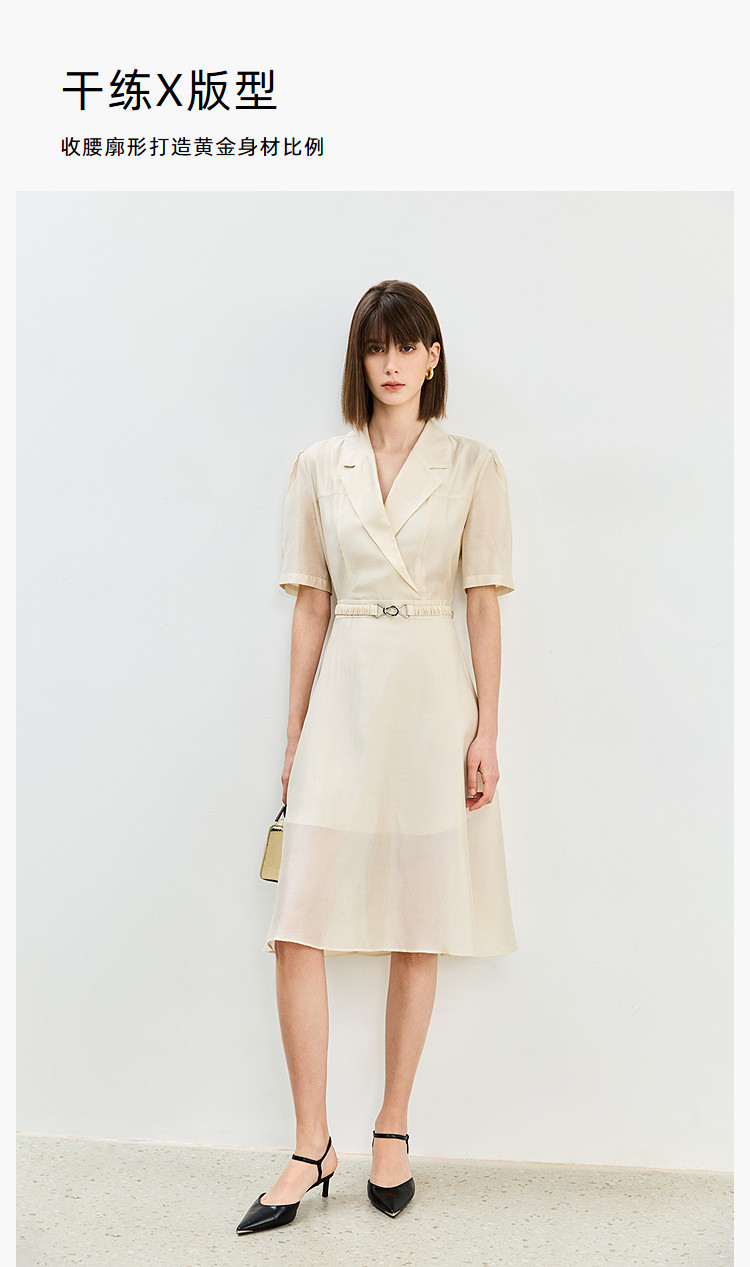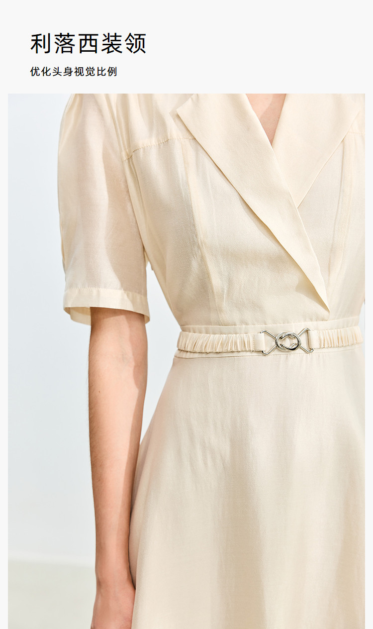 商品名称:【含醋纤】夏款莫代尔微光高级感经典西装式短袖显瘦连衣裙 633627
