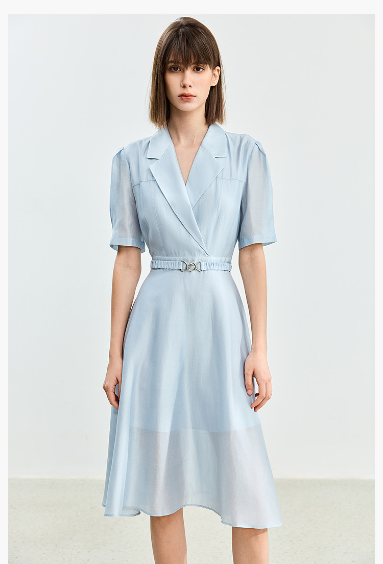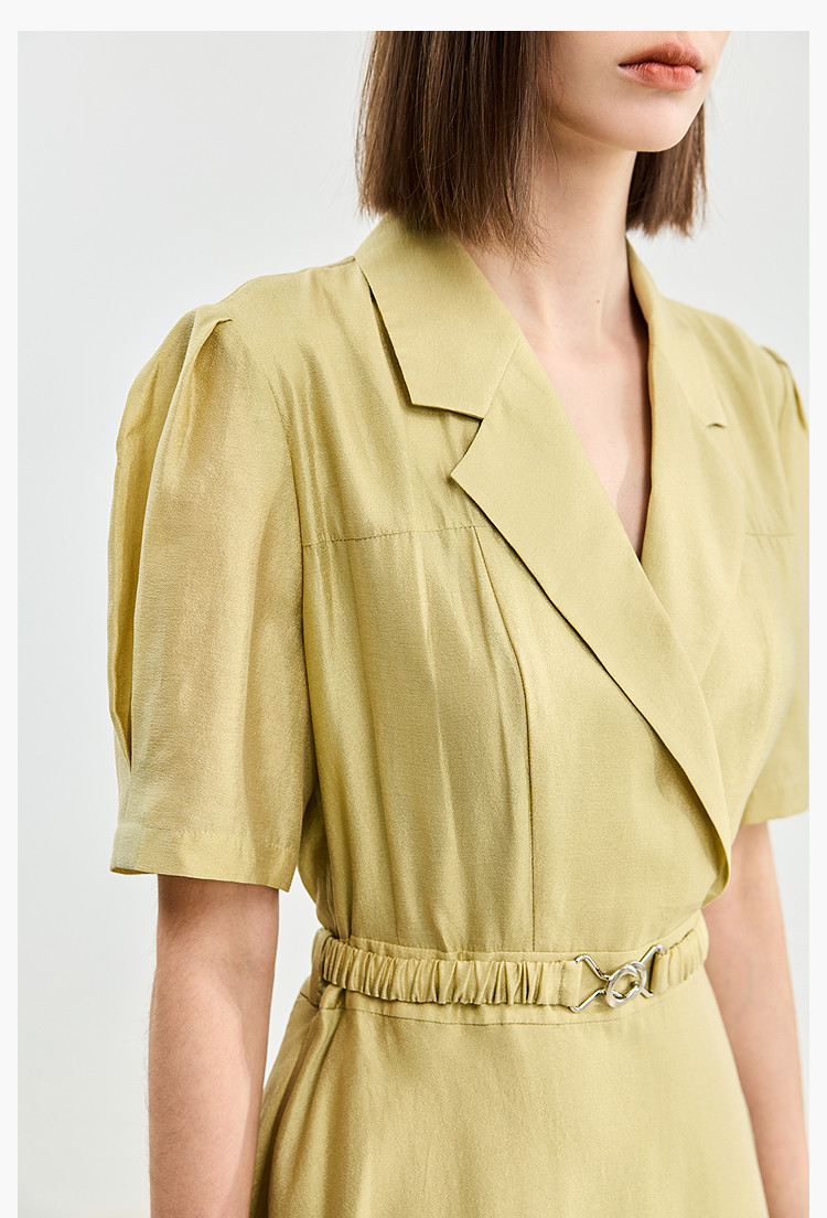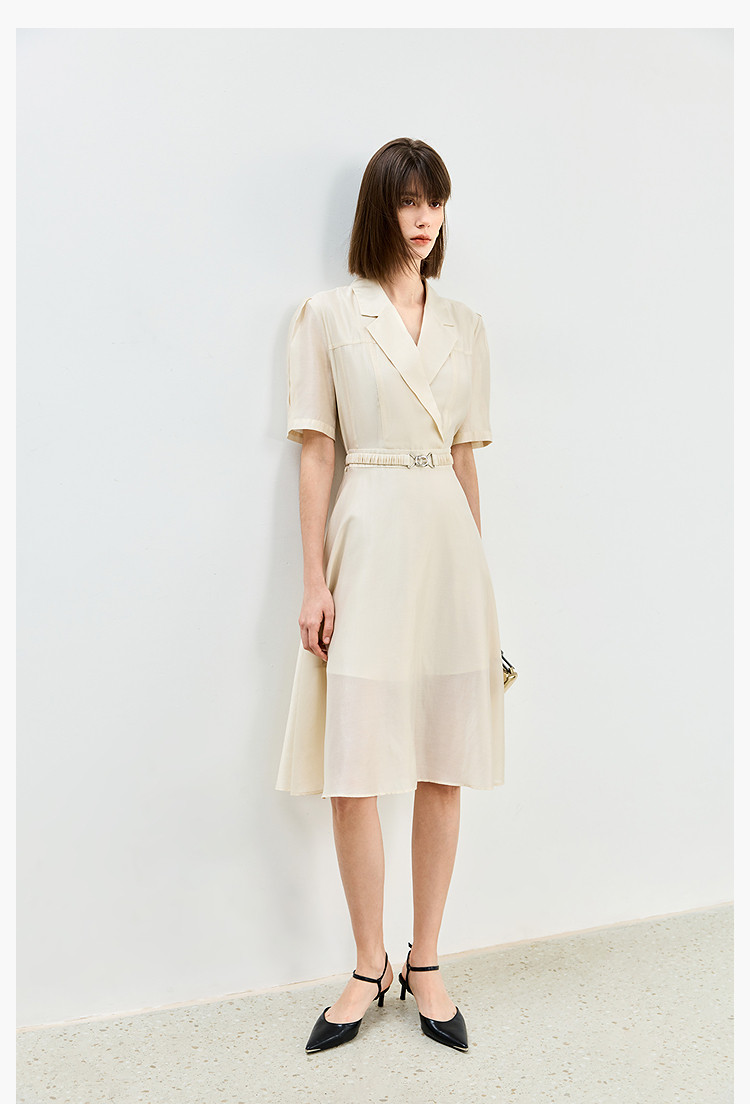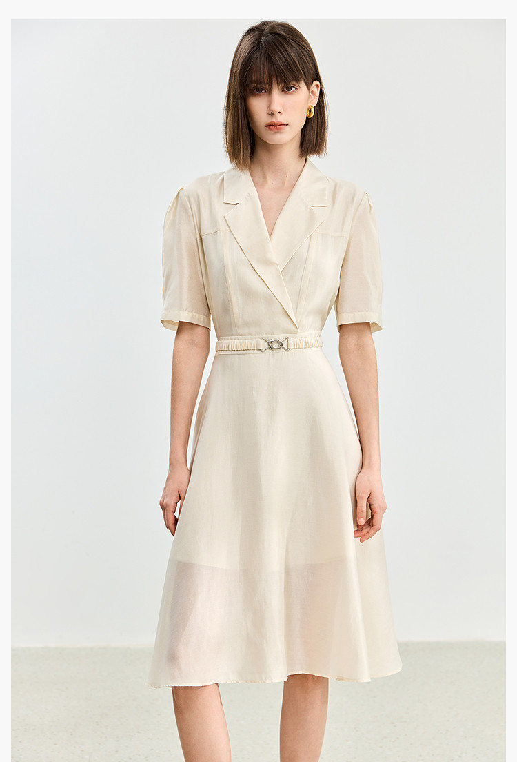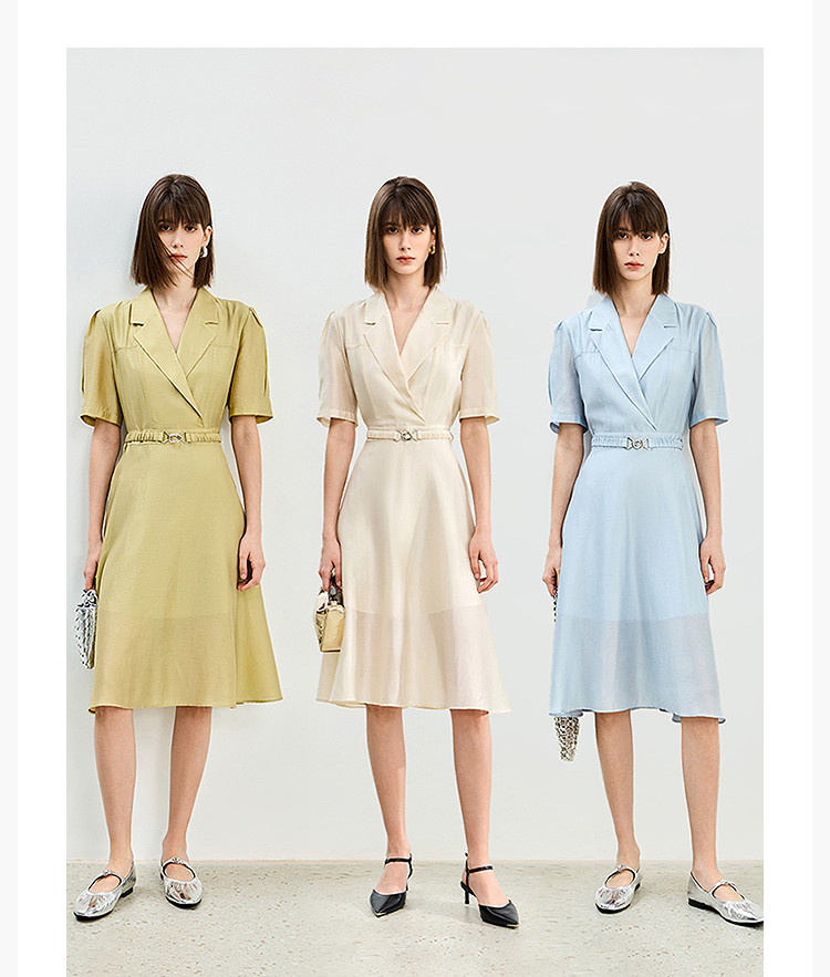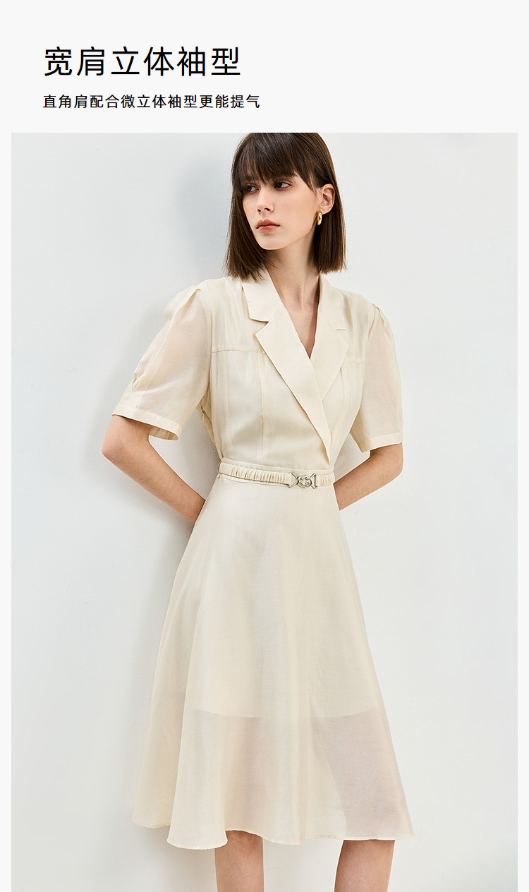 商品名称:【含醋纤】夏款莫代尔微光高级感经典西装式短袖显瘦连衣裙 633627