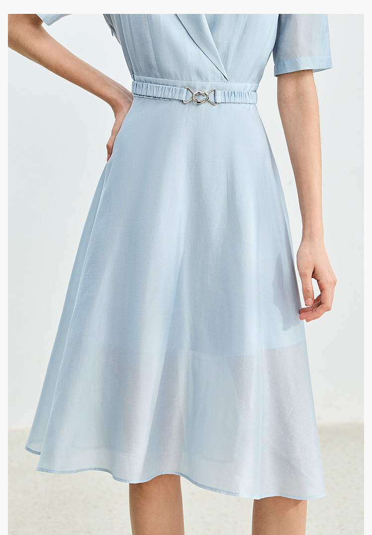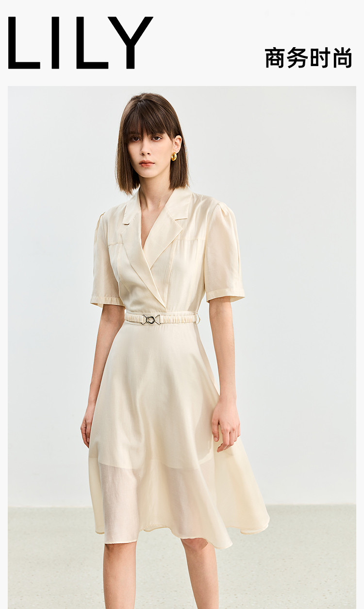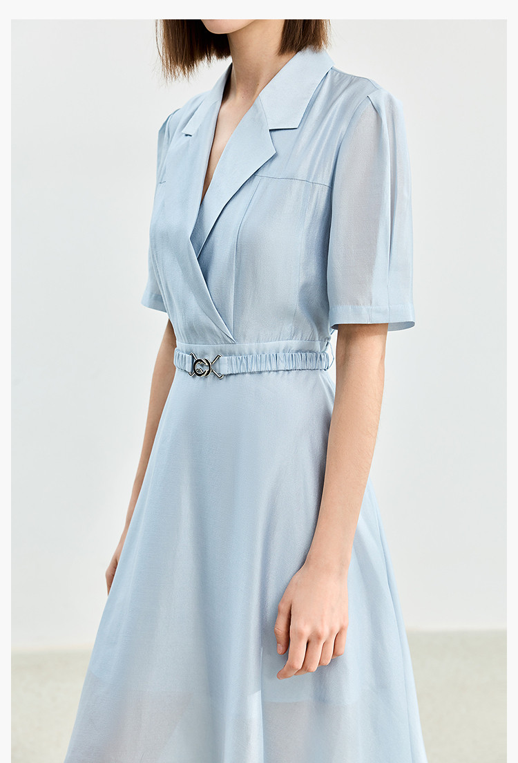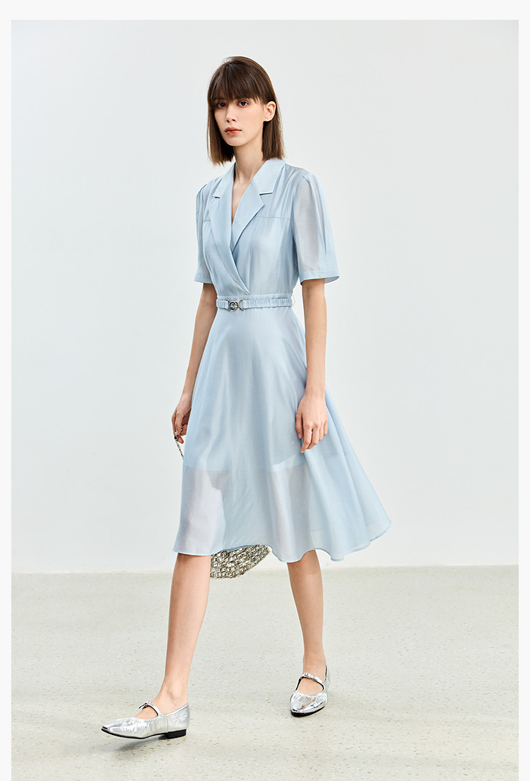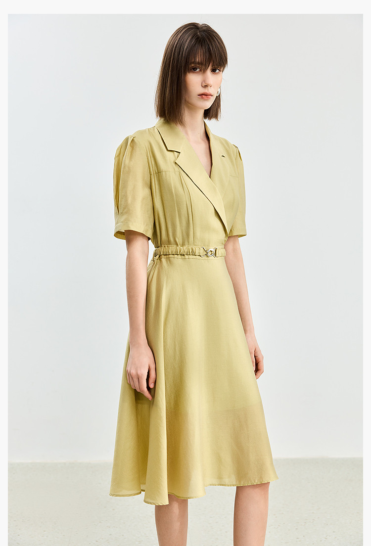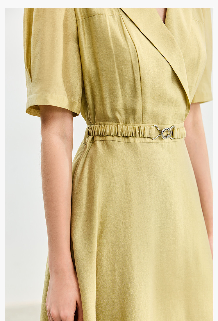 商品名称:【含醋纤】夏款莫代尔微光高级感经典西装式短袖显瘦连衣裙 633627