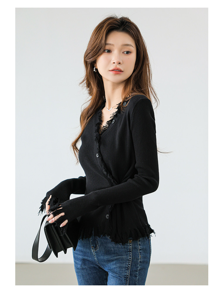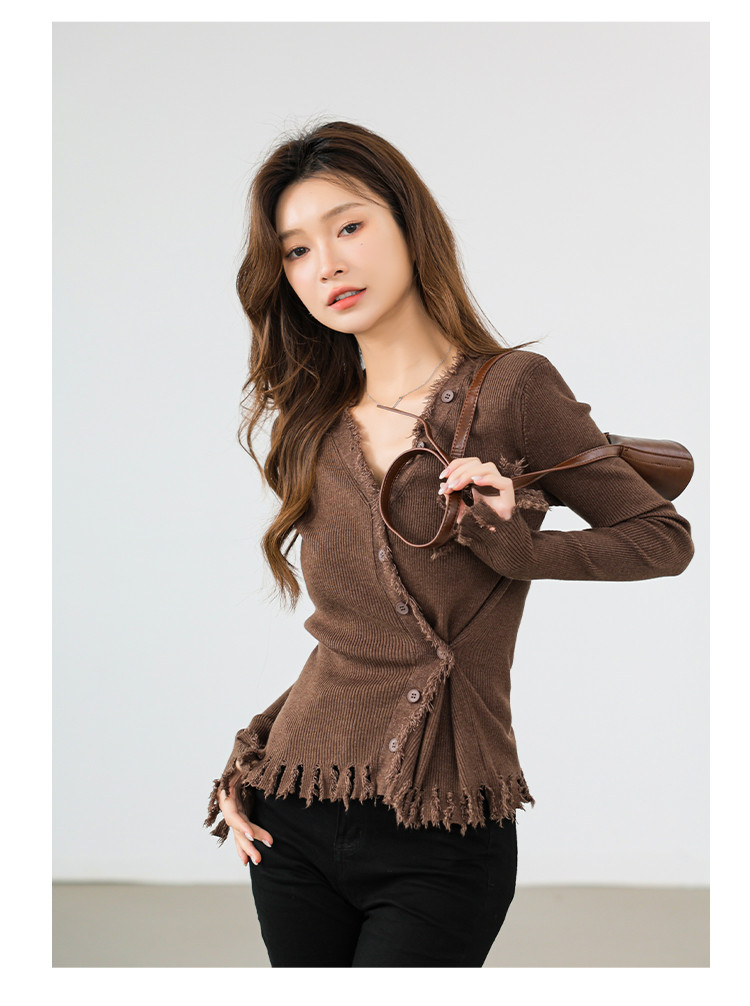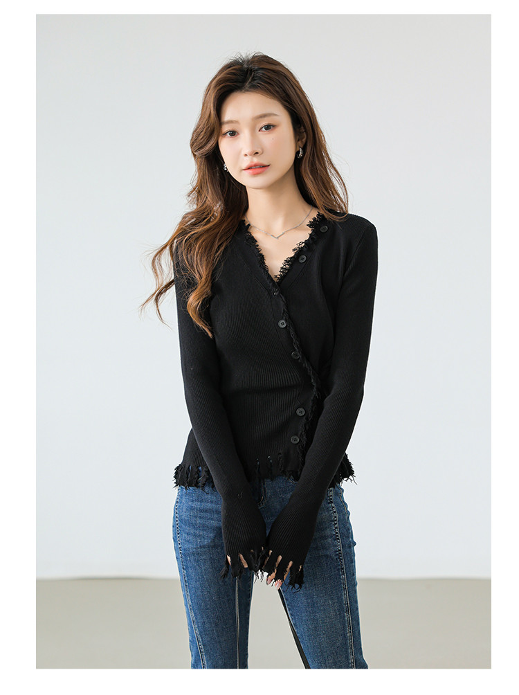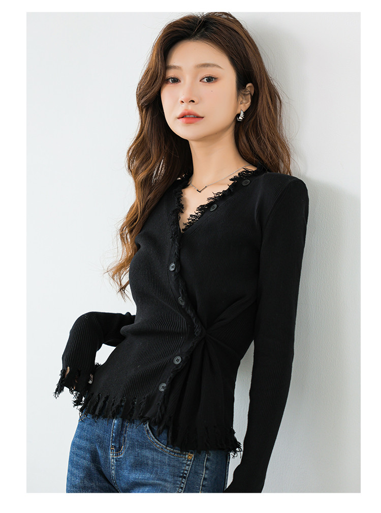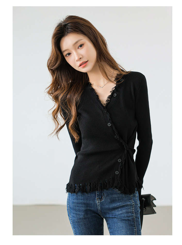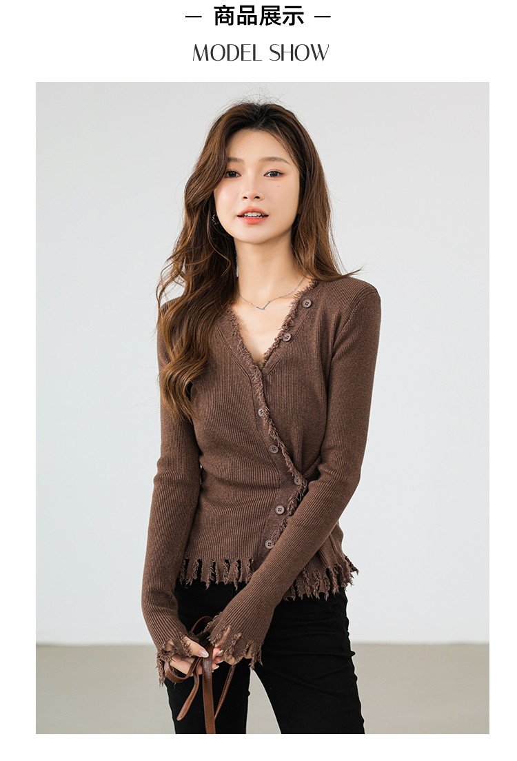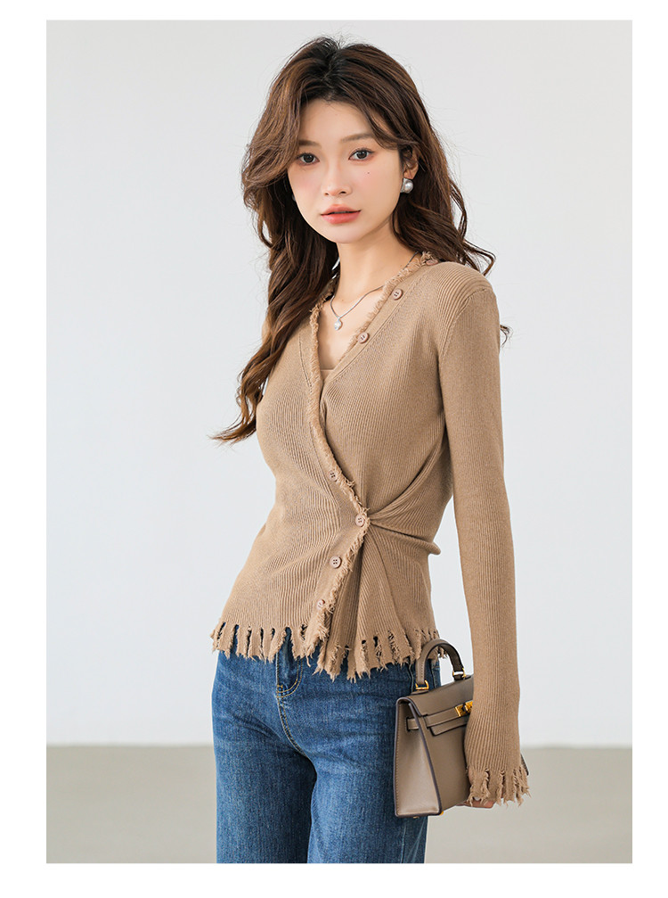 商品名称:V领长袖针织衫女流苏设计打底内搭针织开衫空调服 831683