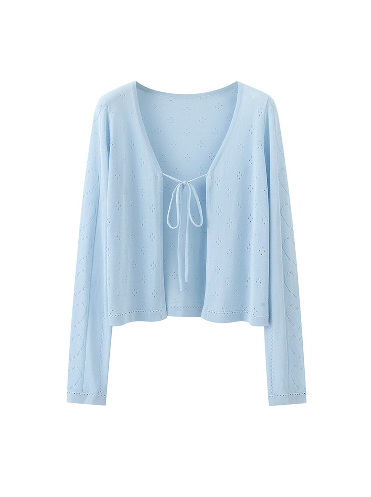 小众设计款百搭镂空针织开衫外套薄款空调服上衣女 982915