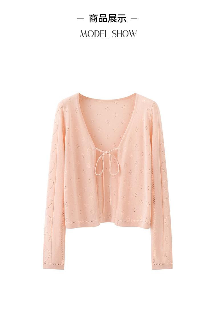 商品名称:小众设计款百搭镂空针织开衫外套薄款空调服上衣女 982915