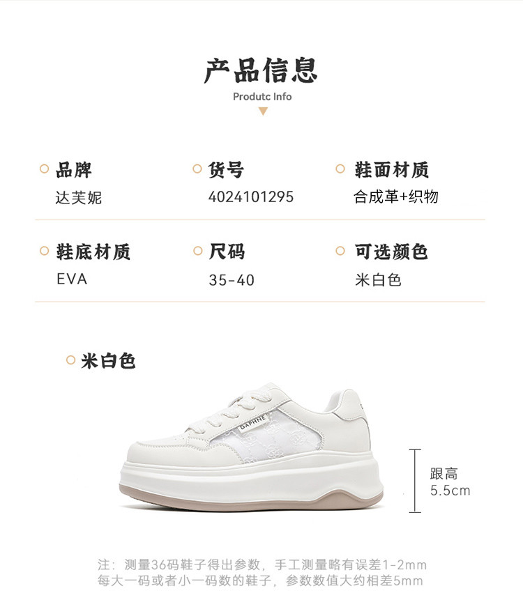 商品名称:【拼色板鞋】简约风春夏百搭小白鞋小个子增高鞋厚底鞋休闲运动鞋 398807