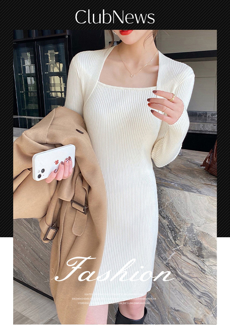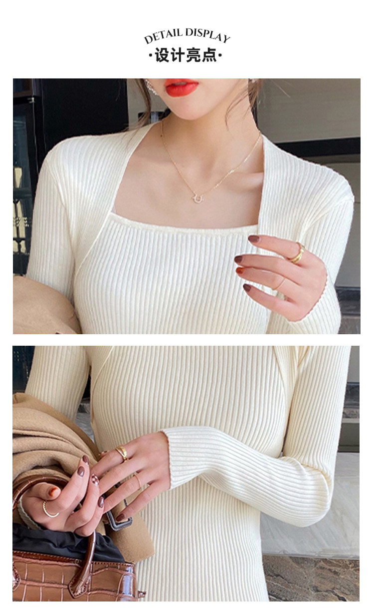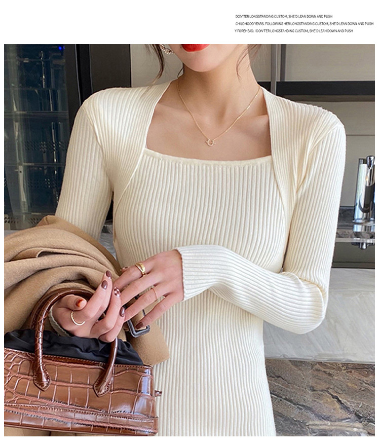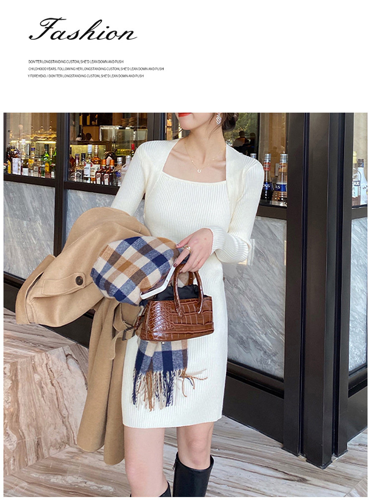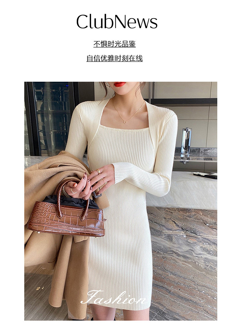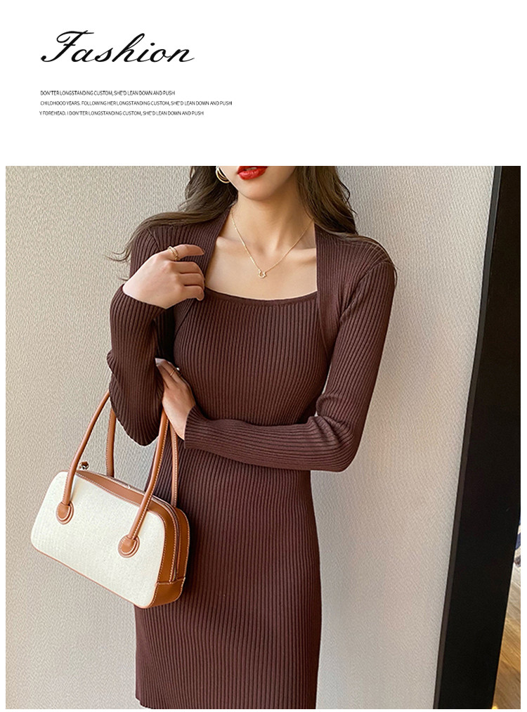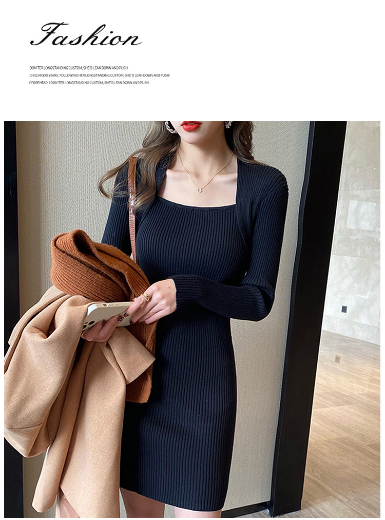 商品名称:方领针织连衣裙女小个子中长内搭裙子小众修身针织裙 075523