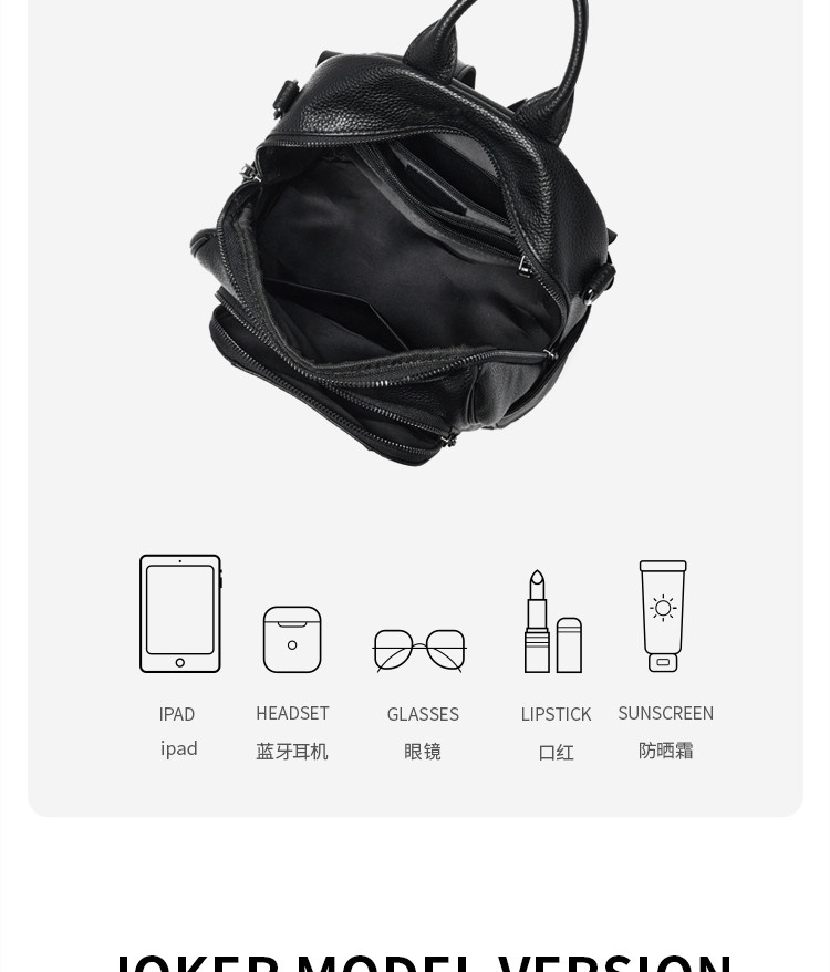 商品名称:【双肩包包女款】女背包旅行轻便头层牛皮大容量百搭背包 577303