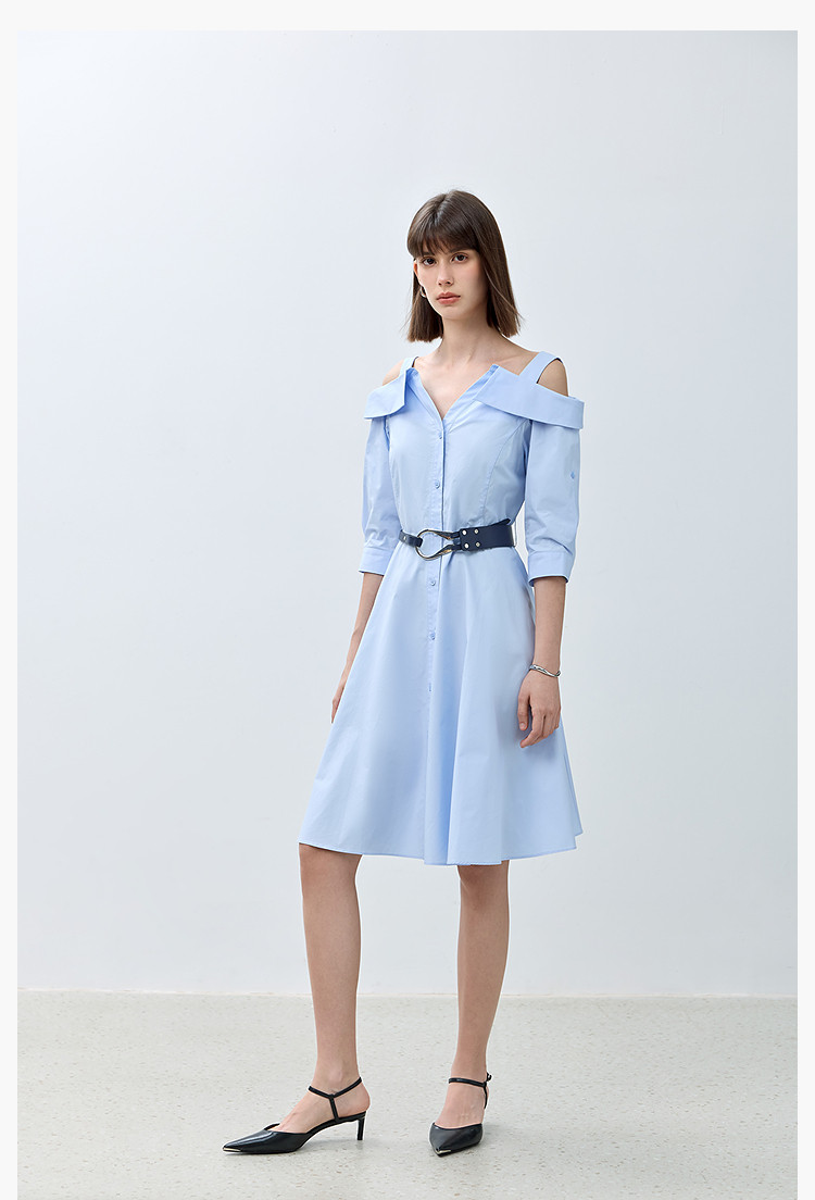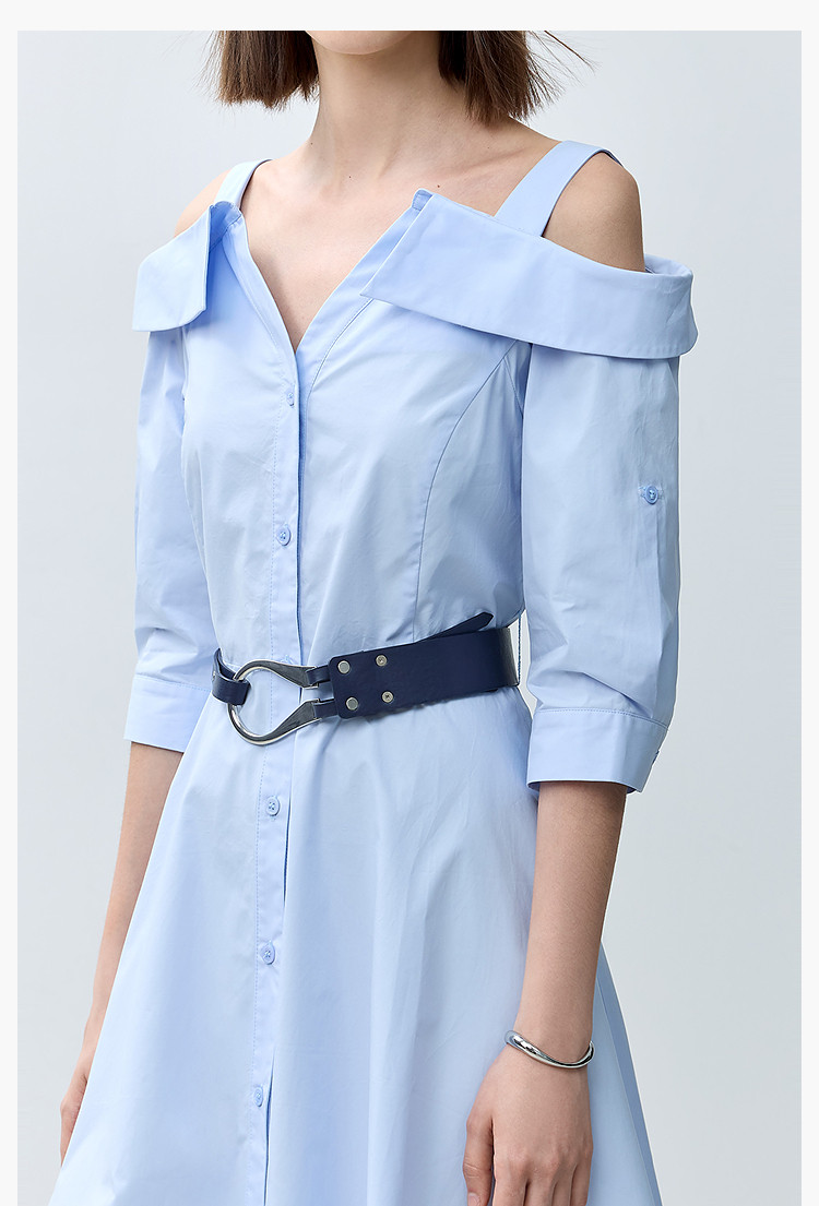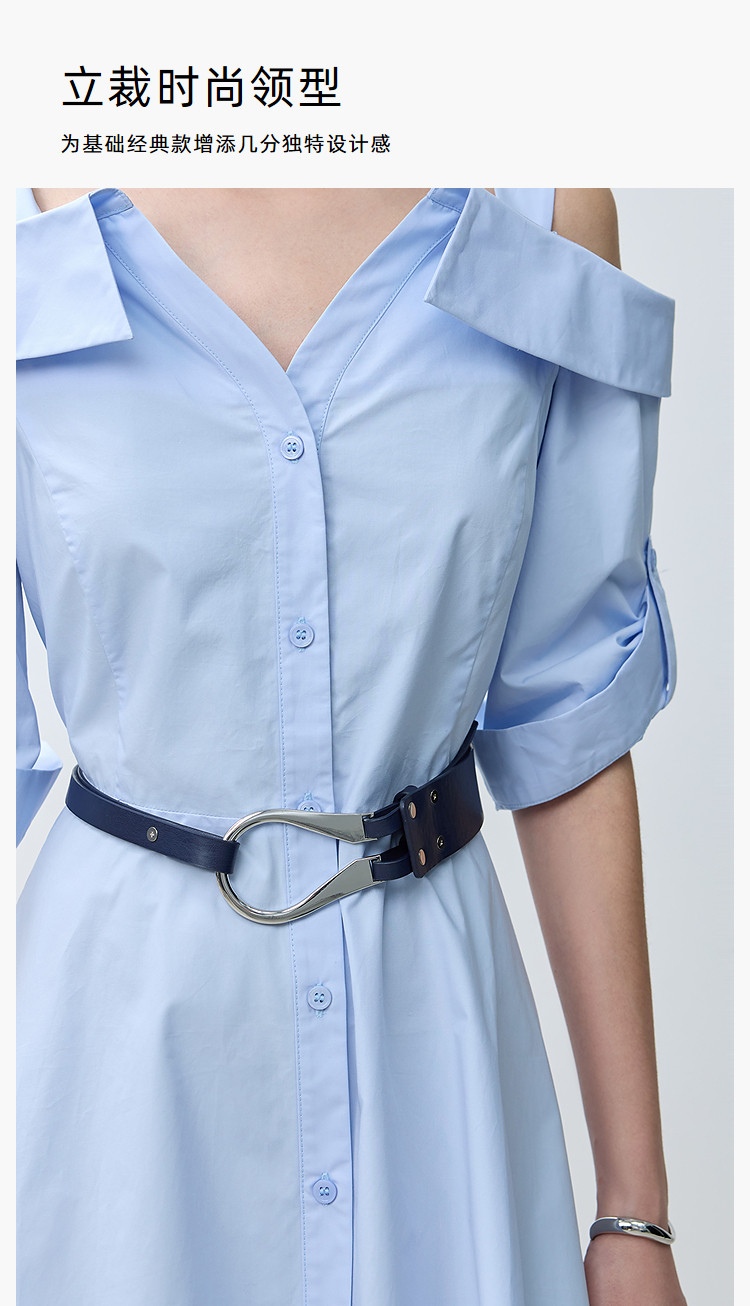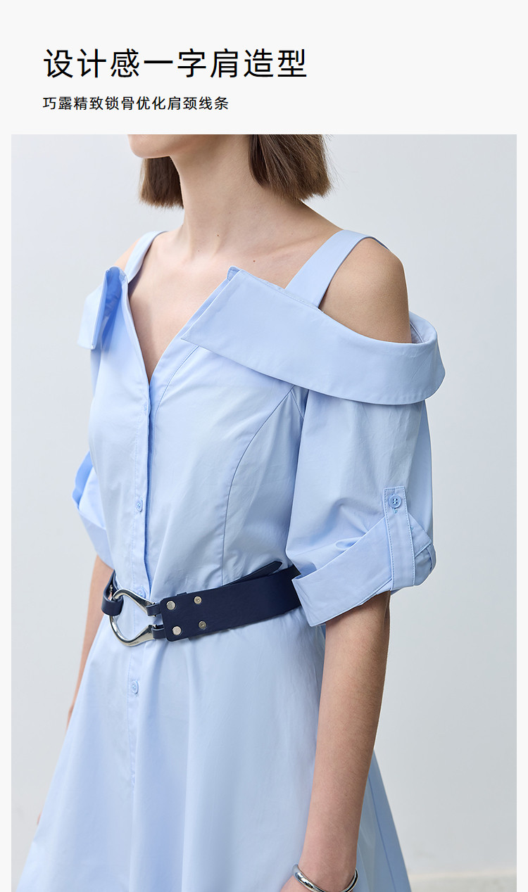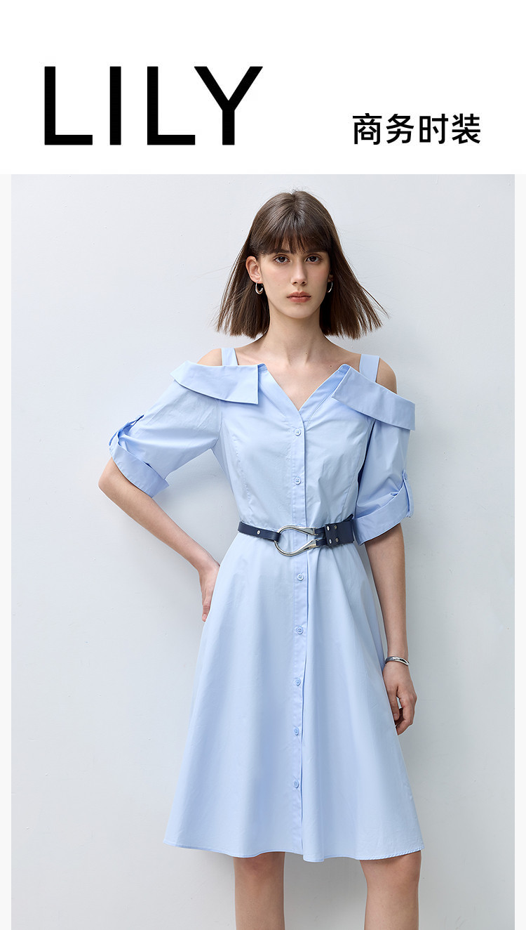 商品名称:夏款都市优雅气质设计感复古时尚显瘦通勤感蓝色连衣裙女 702747