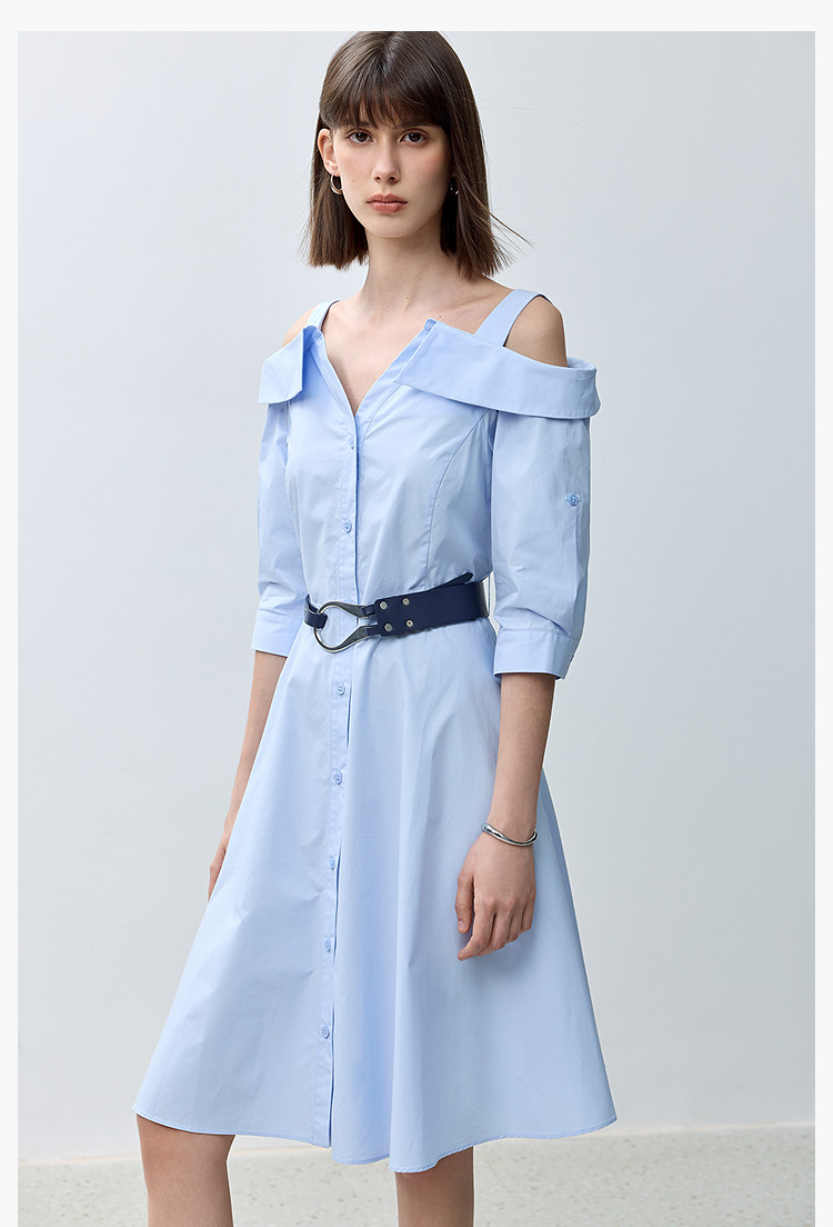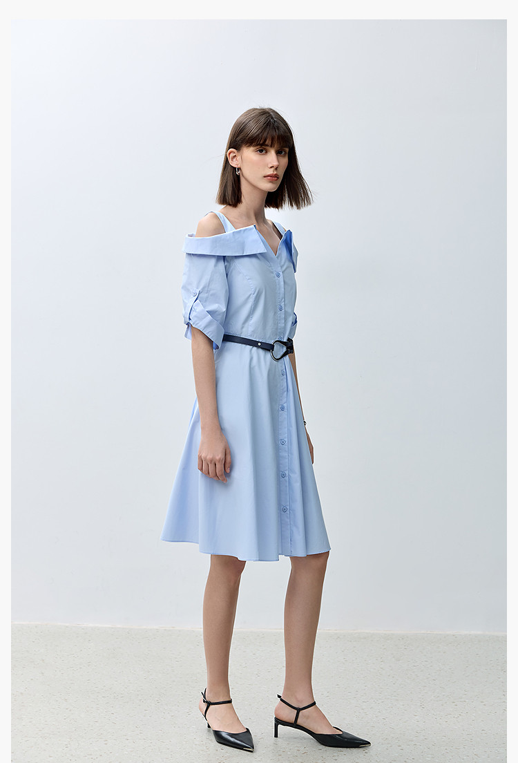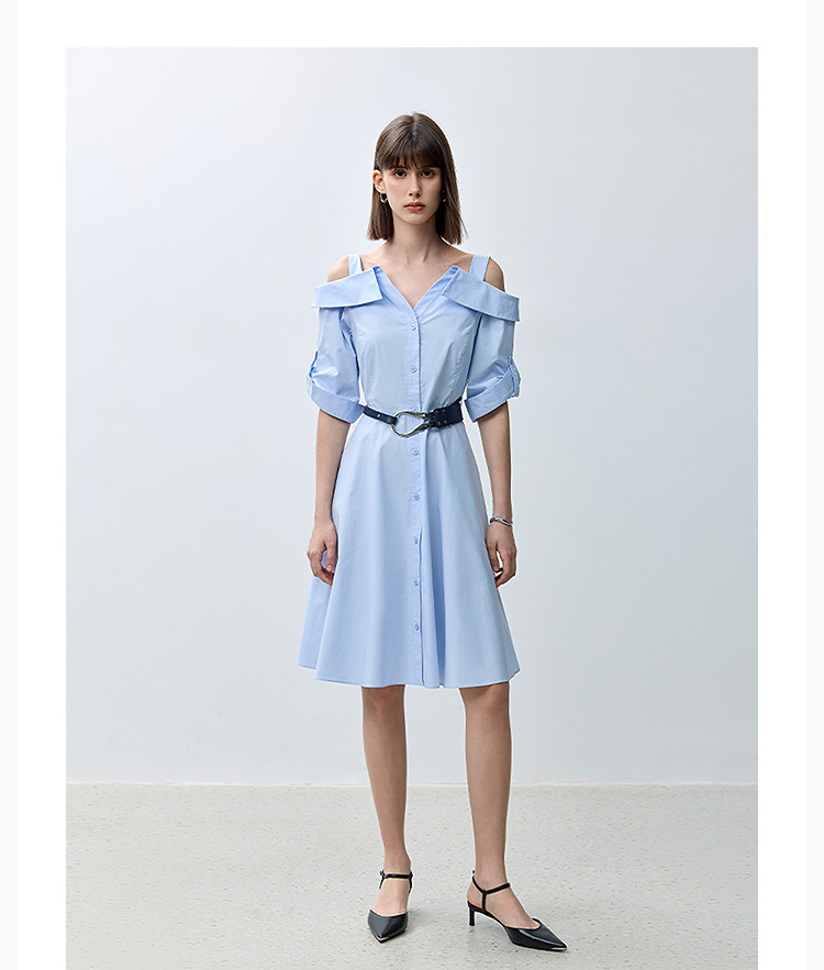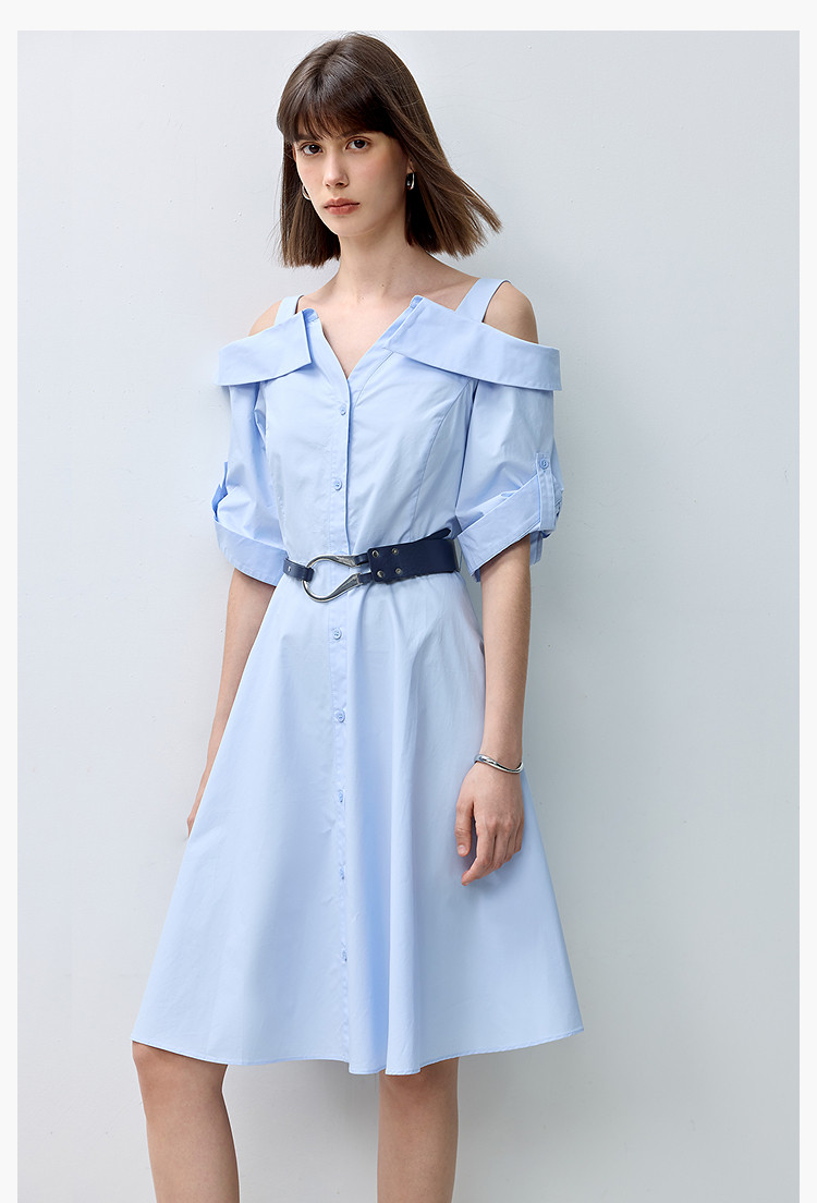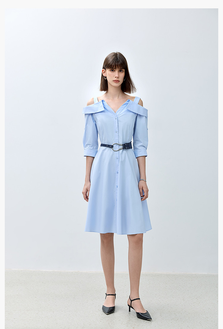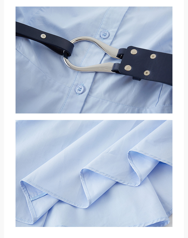 商品名称:夏款都市优雅气质设计感复古时尚显瘦通勤感蓝色连衣裙女 702747