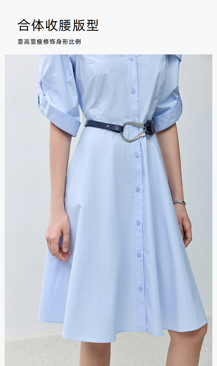 夏款都市优雅气质设计感复古时尚显瘦通勤感蓝色连衣裙女 702747