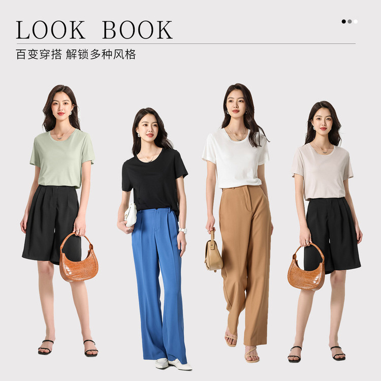 商品名称:【含桑蚕丝】简约百搭纯色圆领短袖丝光T恤 514643