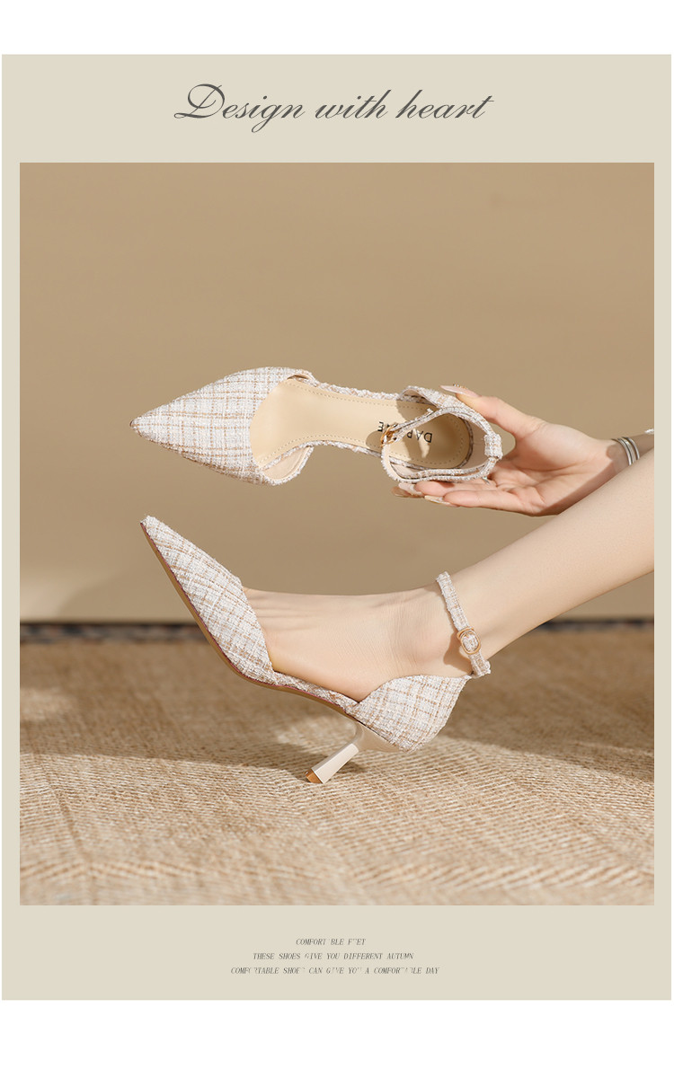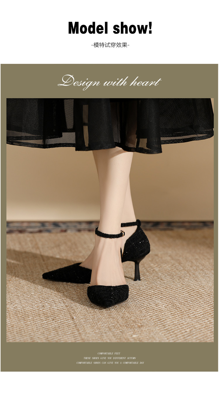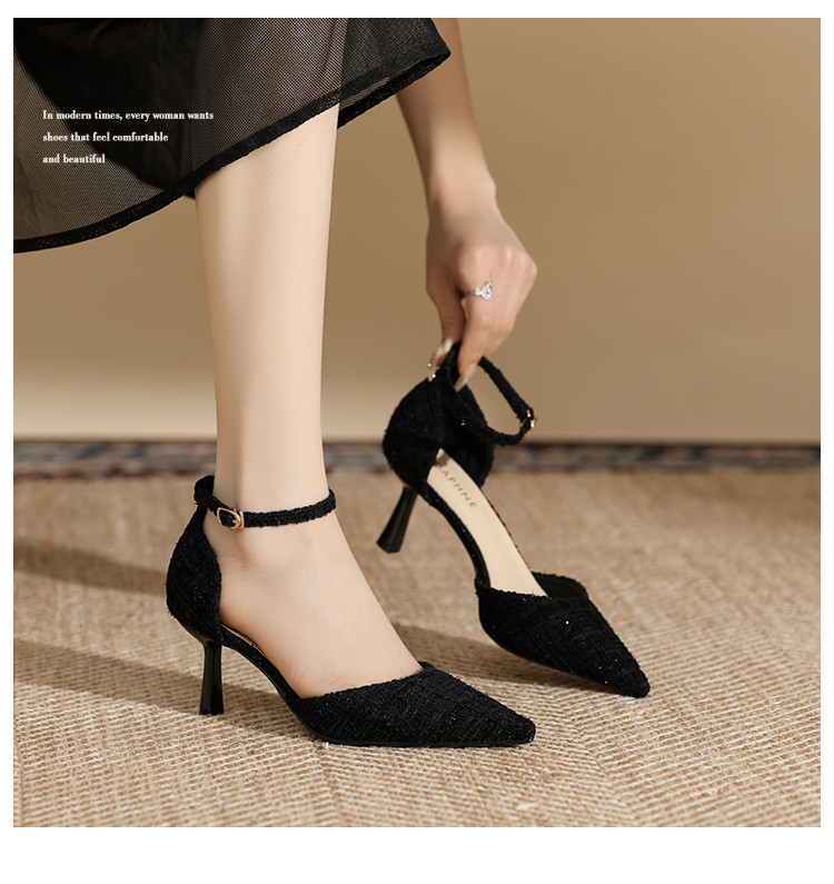 商品名称:夏季优雅气质高跟鞋时装鞋中空凉鞋商务面试时尚通勤鞋细跟女单鞋 370007