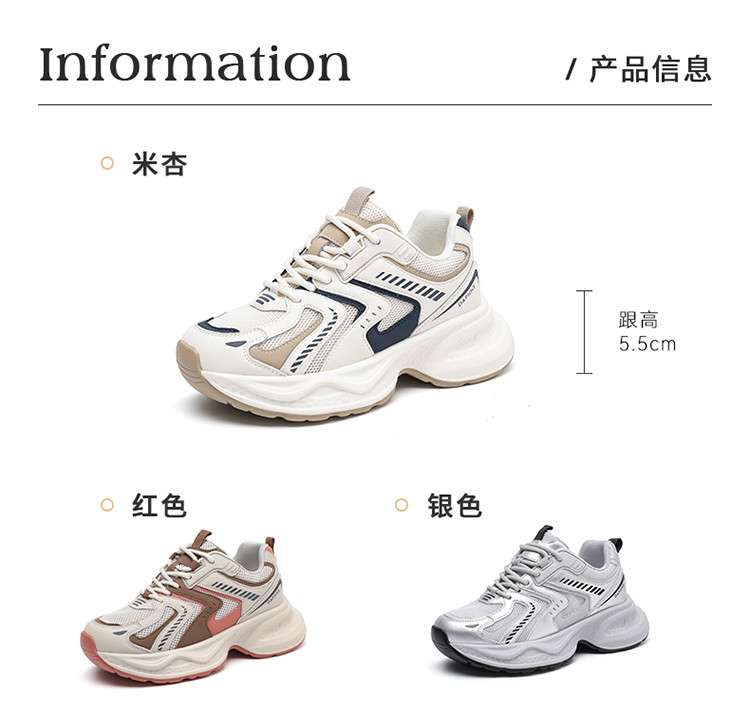 商品名称:春夏厚底老爹鞋女百搭透气网面鞋运动休闲鞋显脚小轻便时尚增高鞋 637079