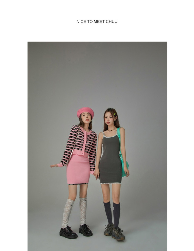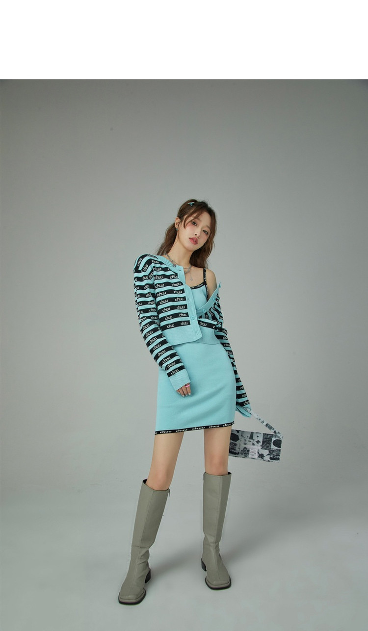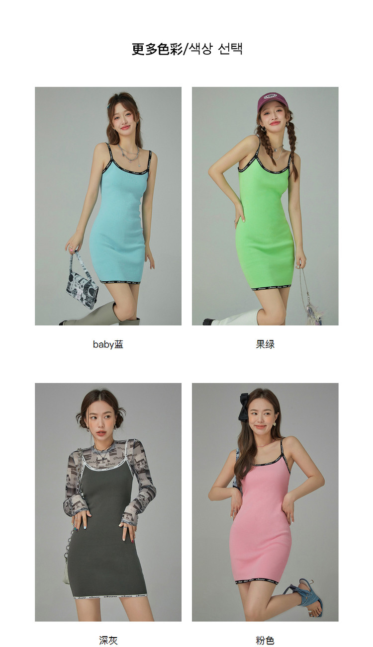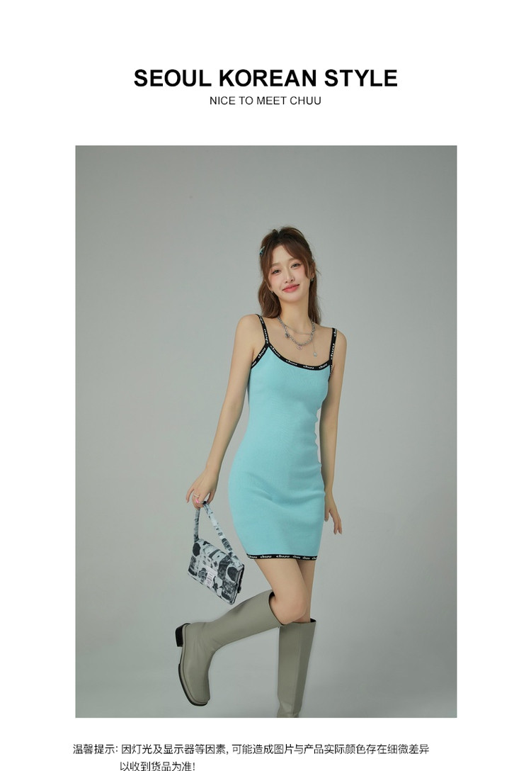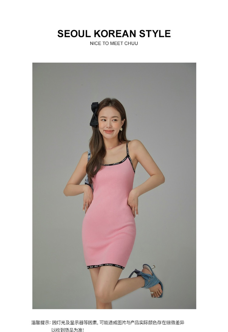 商品名称:CHUU字母吊带连衣裙女秋季简约风时尚气质修身短裙子 923603