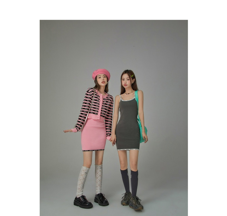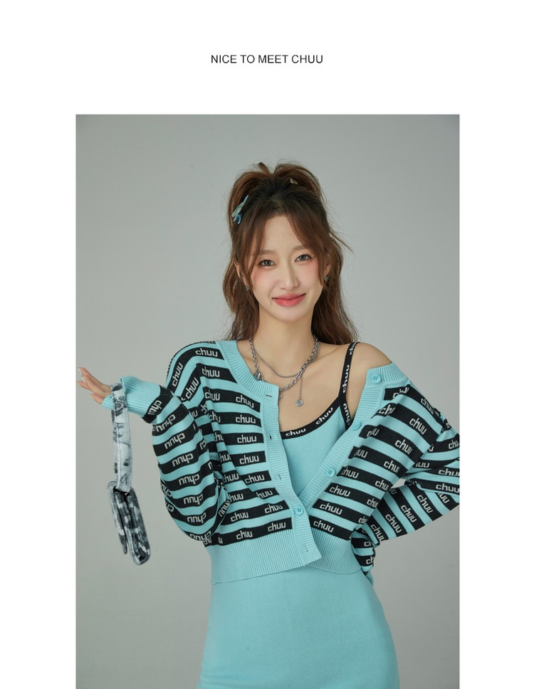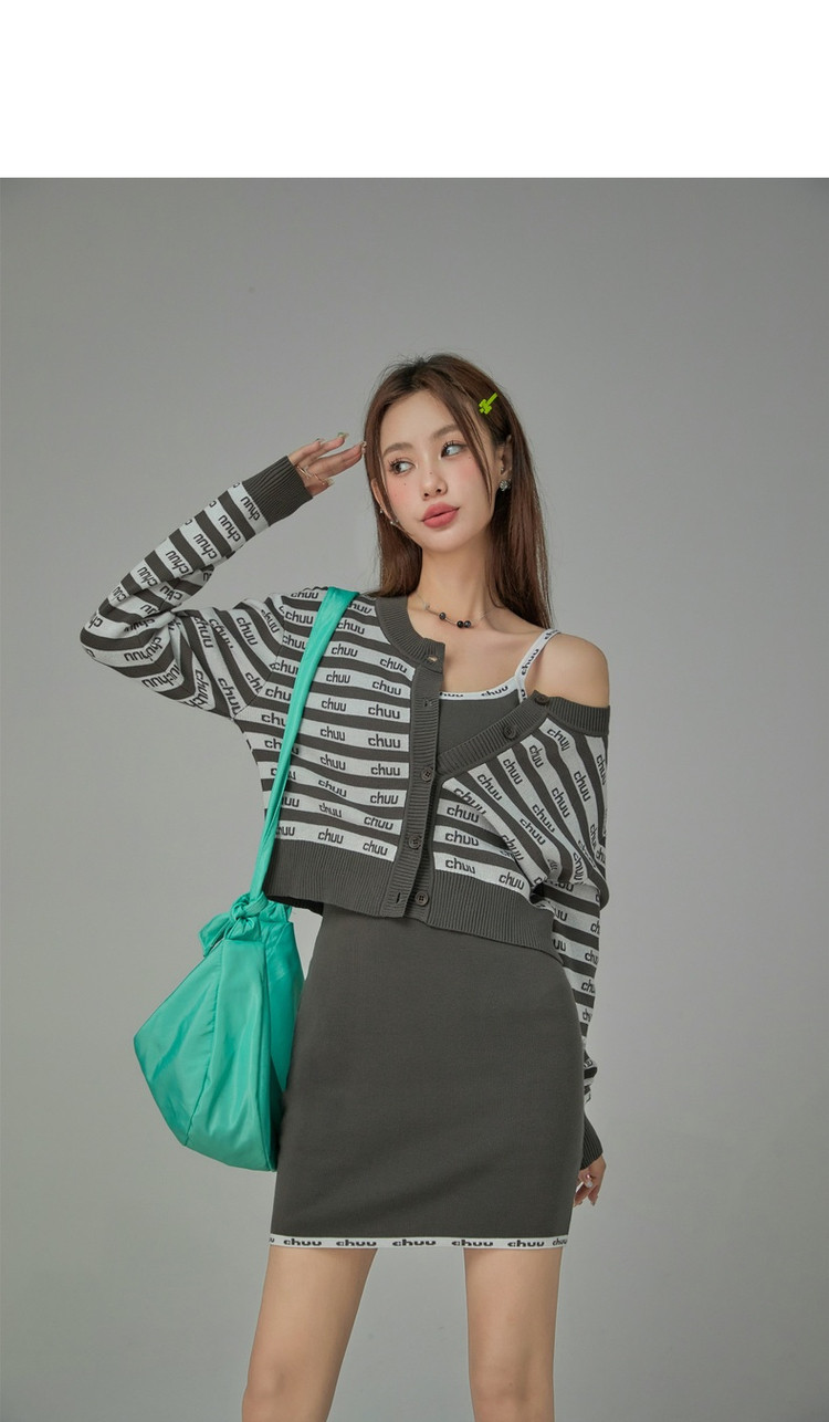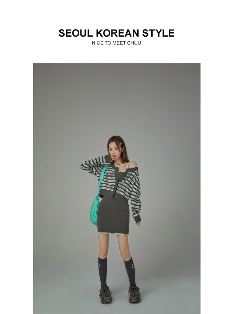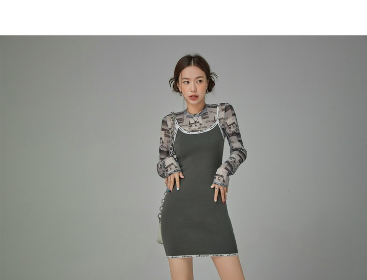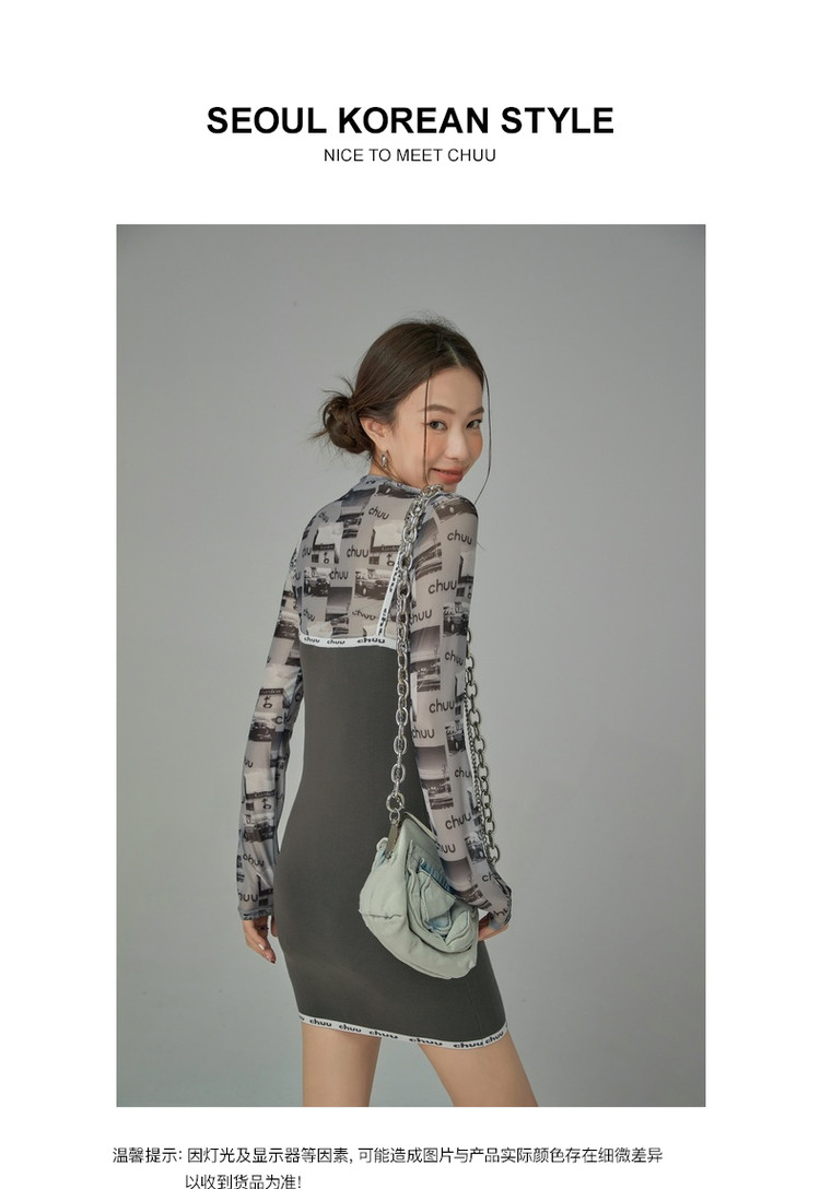 商品名称:CHUU字母吊带连衣裙女秋季简约风时尚气质修身短裙子 923603