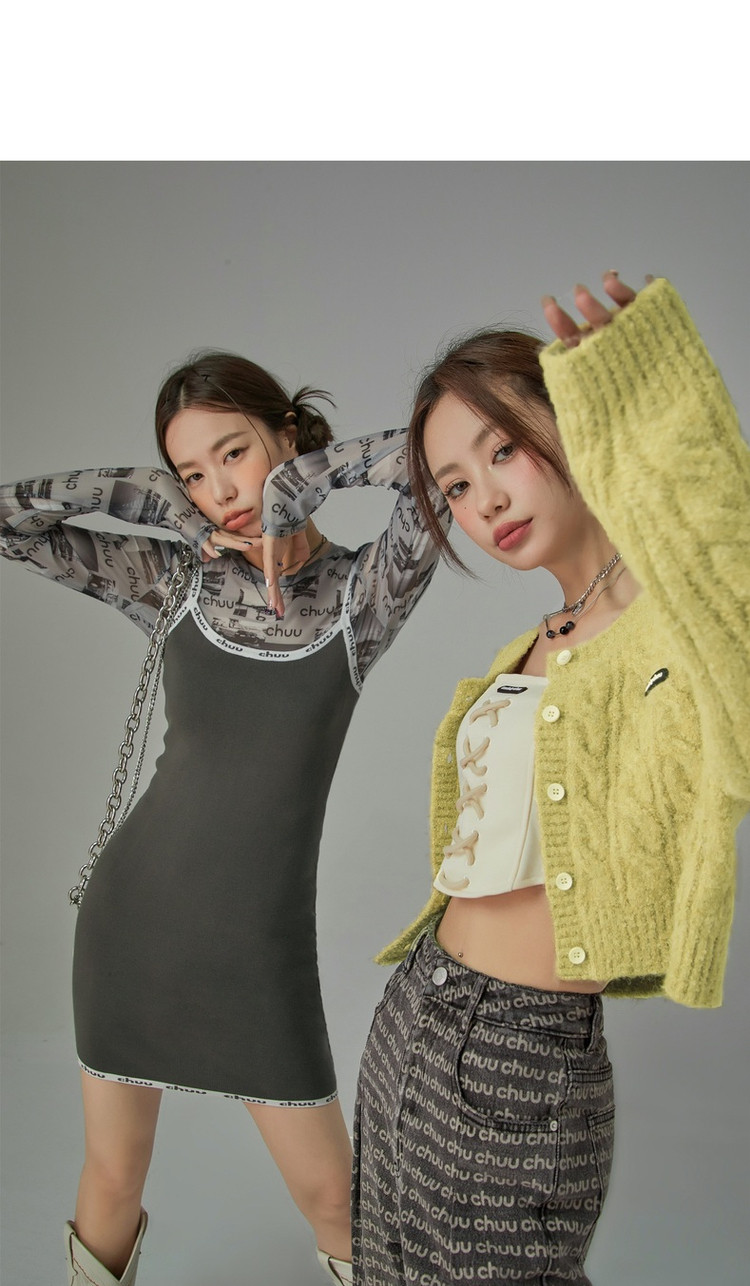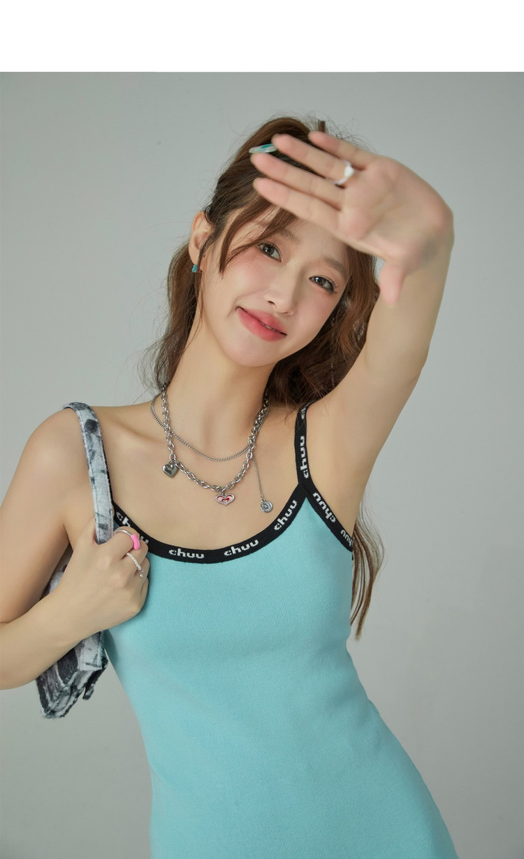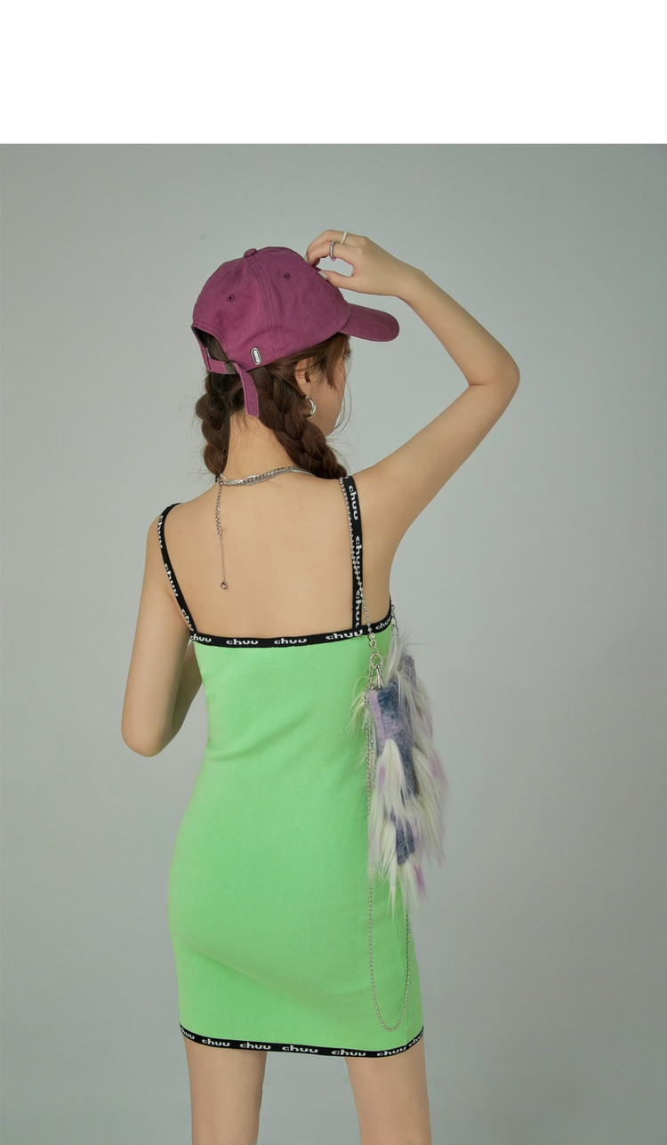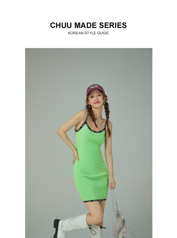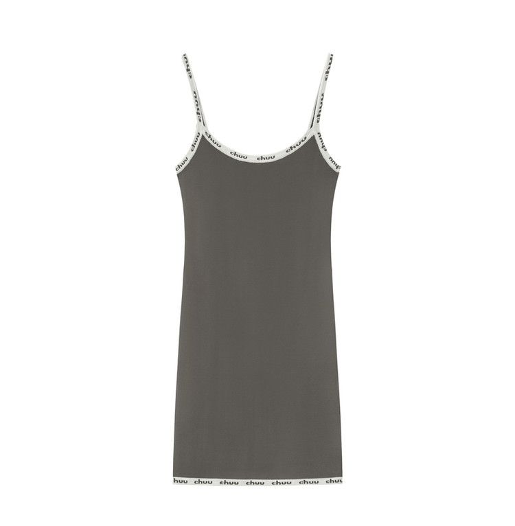 CHUU字母吊带连衣裙女秋季简约风时尚气质修身短裙子 923603
