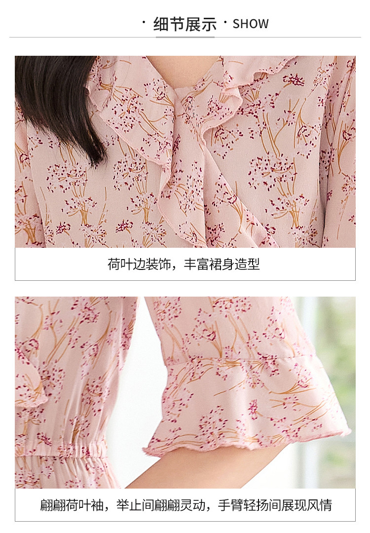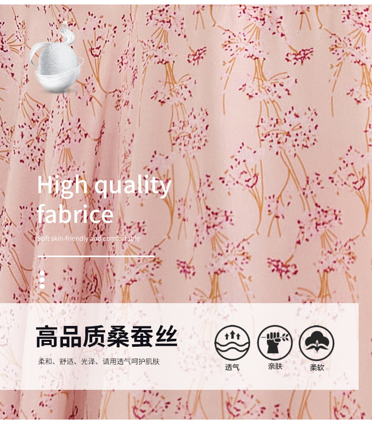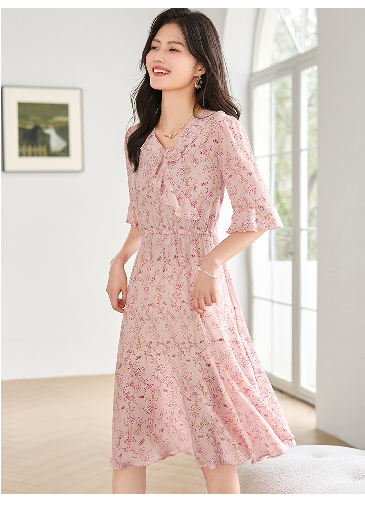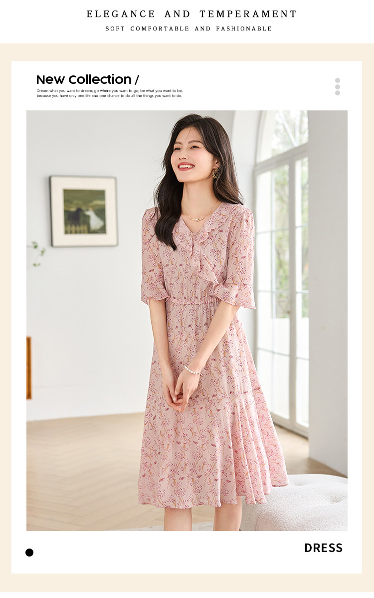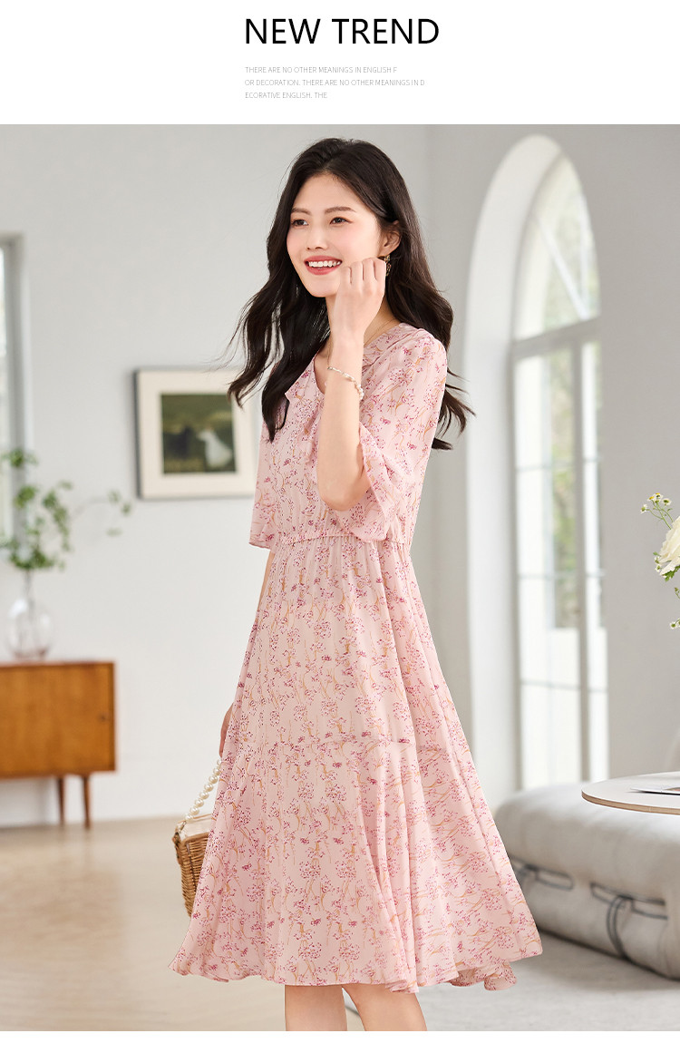 商品名称:浪漫印花2025夏季女装时尚真丝荷叶领桑蚕丝显瘦连衣裙 987224