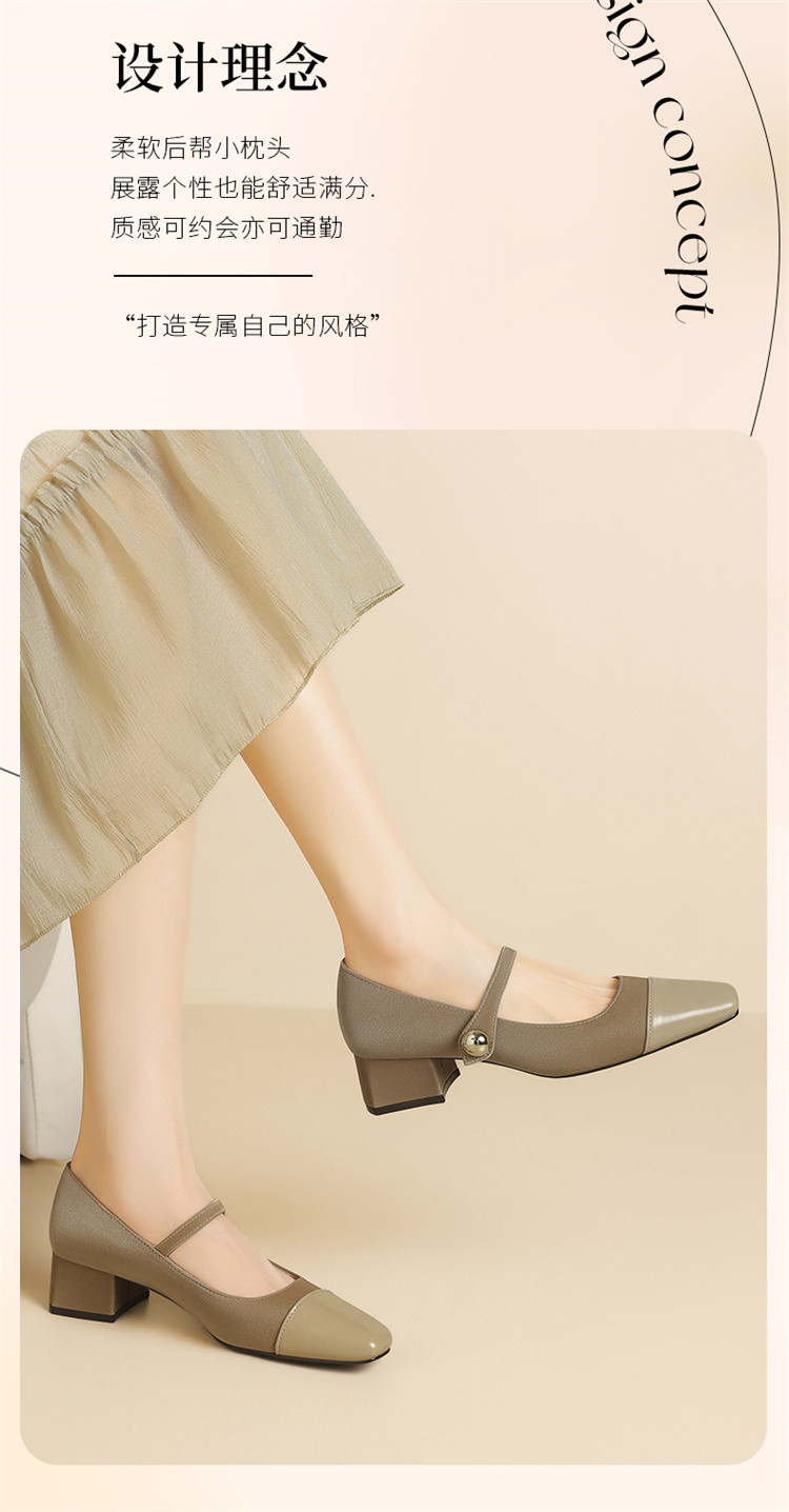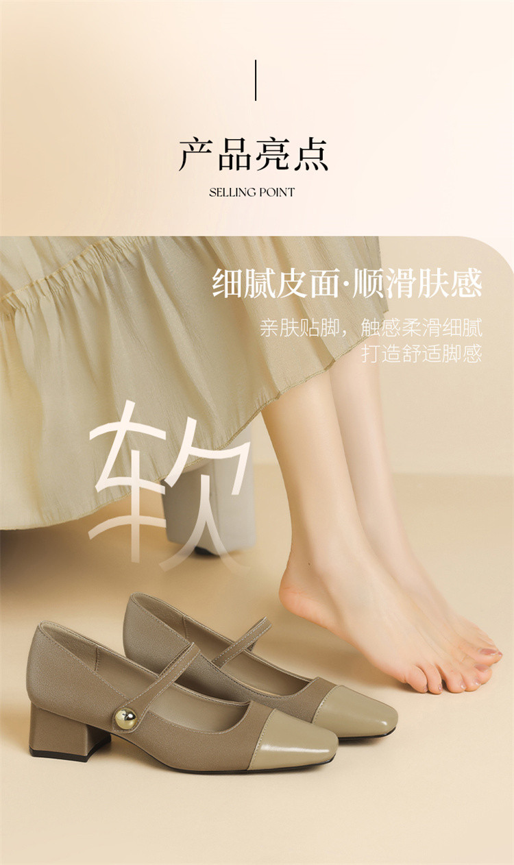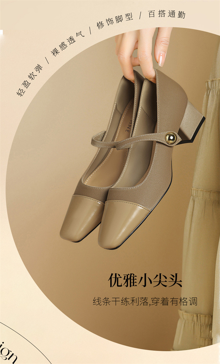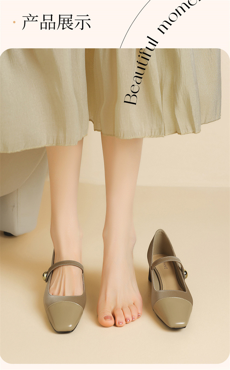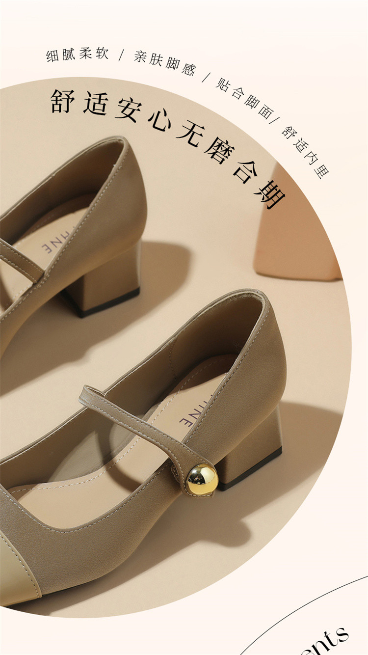 商品名称:浅口玛丽珍女鞋夏季法式气质时尚单鞋一字带粗跟不累脚通勤鞋女 595223