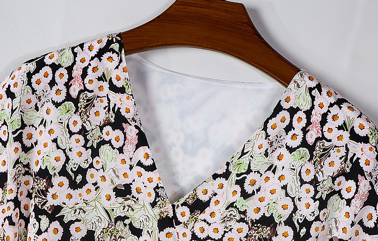 【恰好时光系列】夏法式V领文艺剪花叶子垂顺爽滑A字女式连衣裙 007105