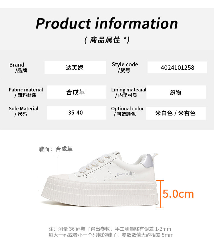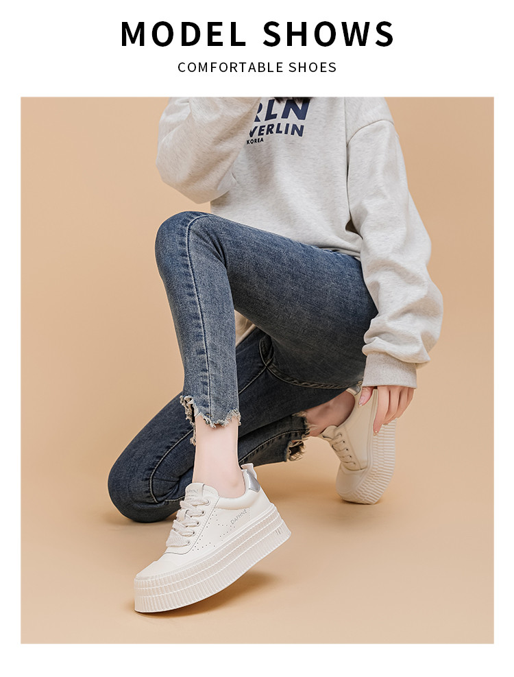 商品名称:春夏小白鞋女厚底板鞋饼干鞋简约舒适透气运动休闲鞋小个子增高鞋 527127