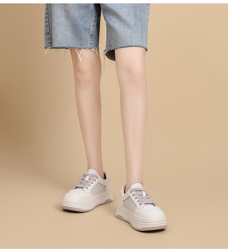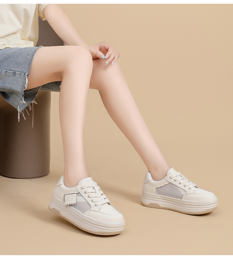 2024春夏透气网面鞋女薄款小白鞋百搭厚底板鞋舒适运动休闲鞋 608407