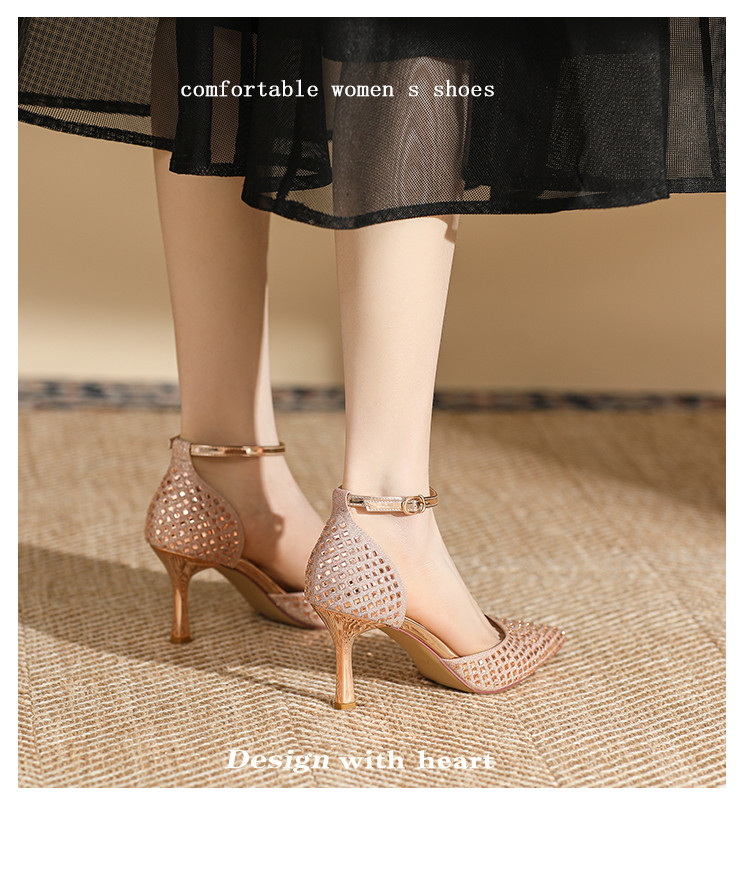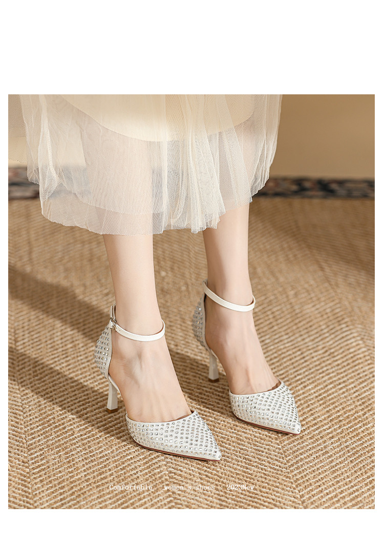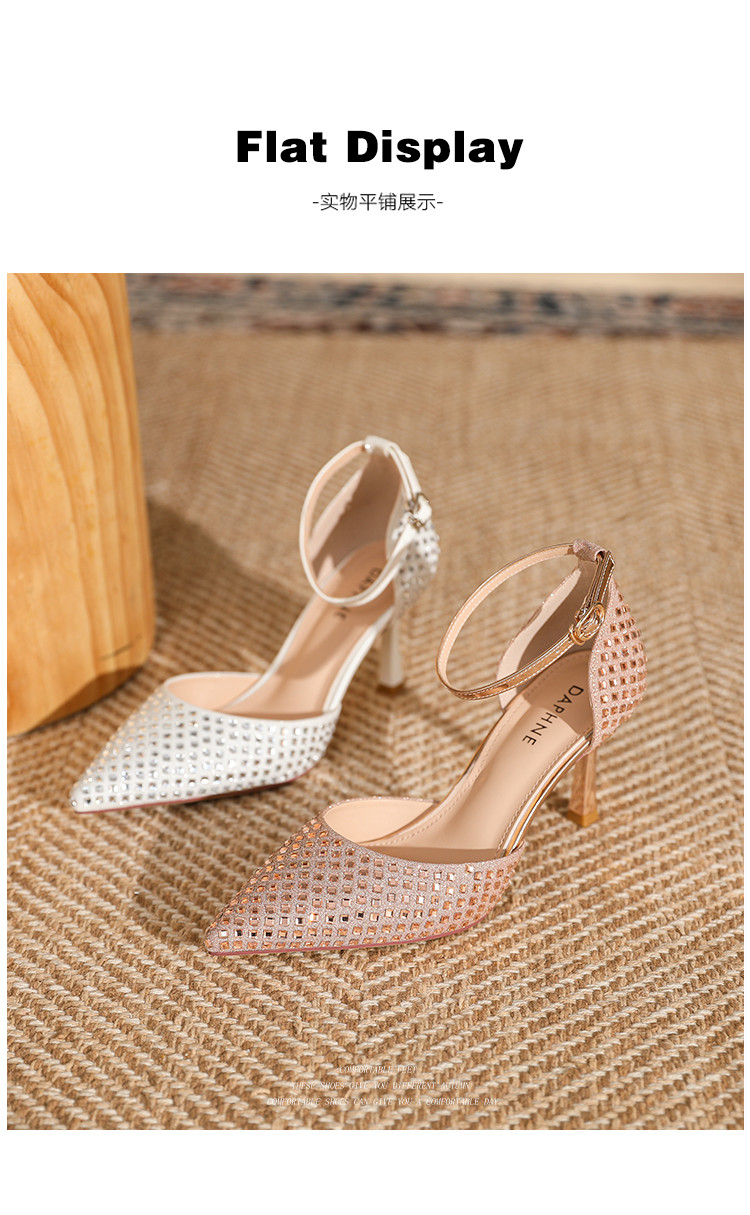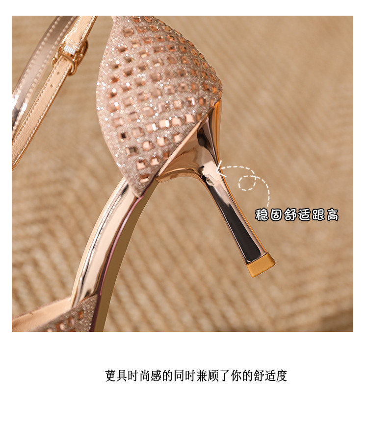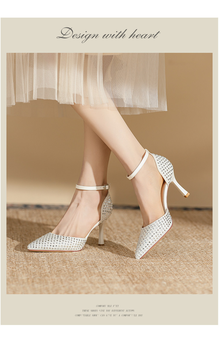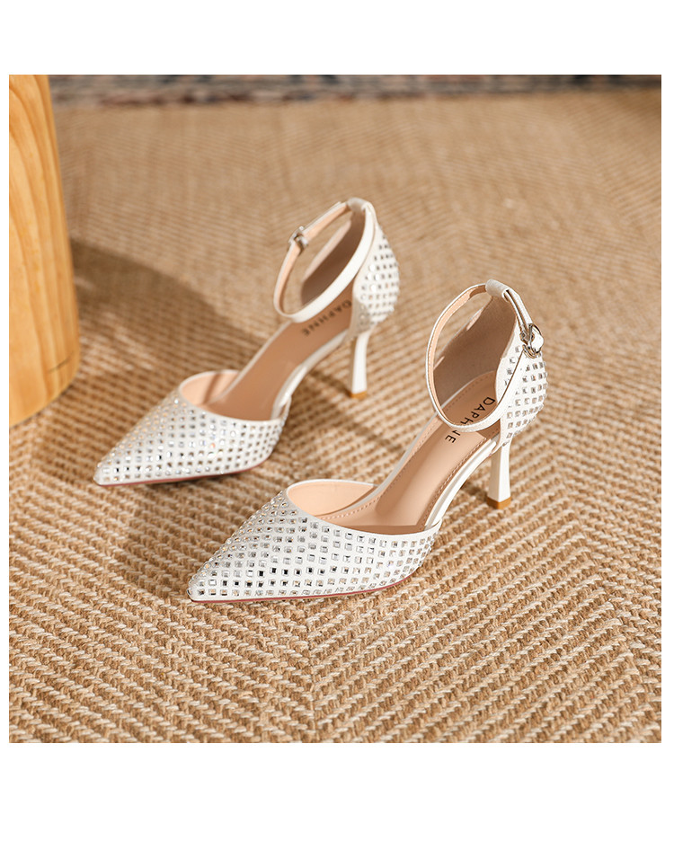 商品名称:夏季仙女风高跟鞋时装鞋时尚通勤鞋中空凉鞋婚鞋方钻细跟女单鞋 333143