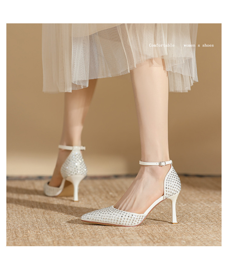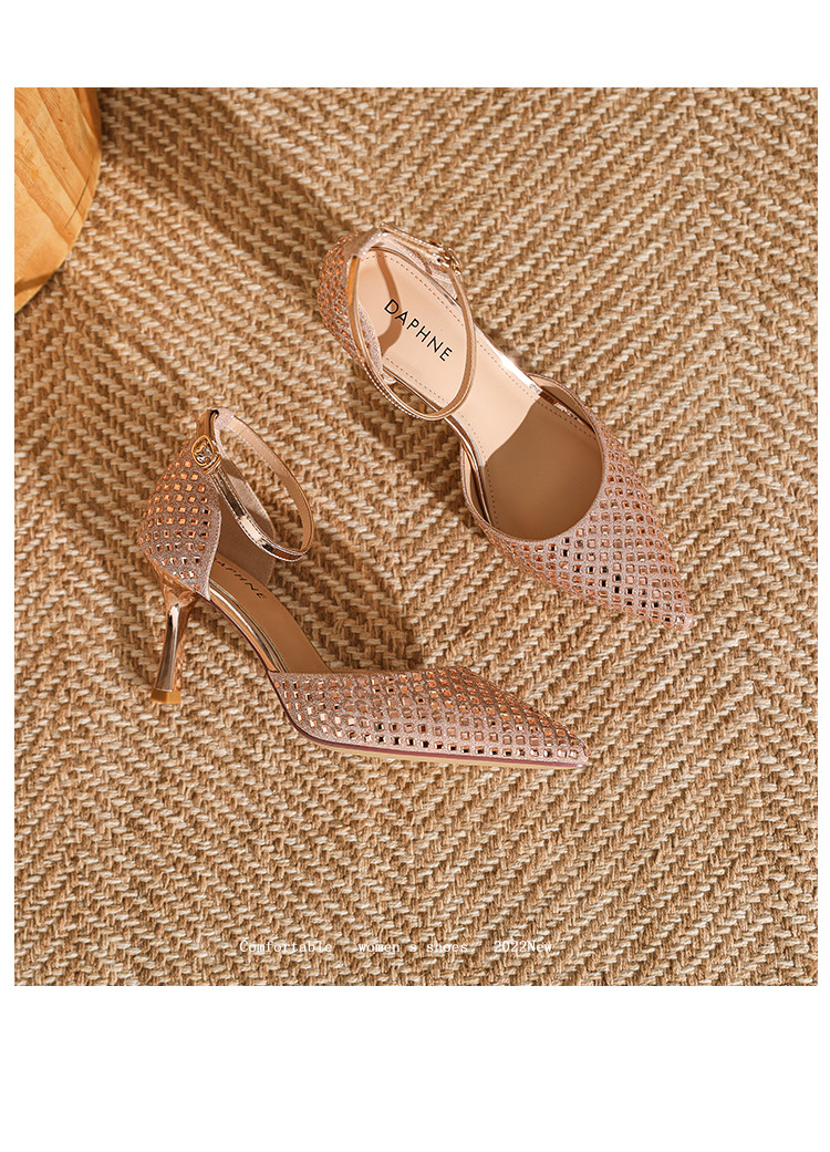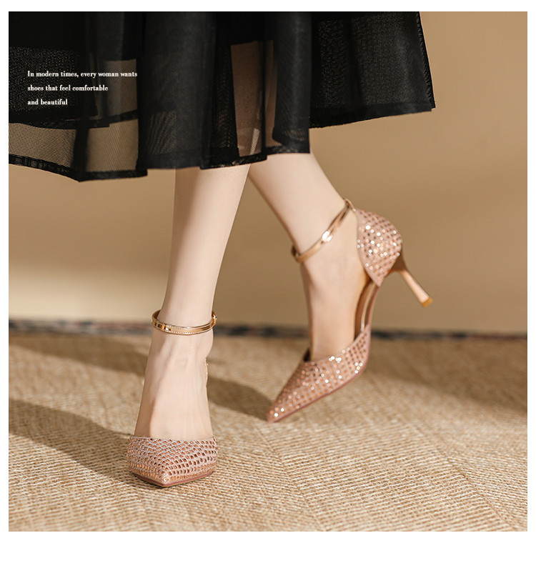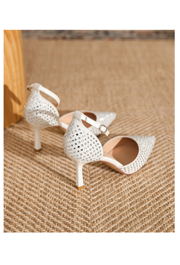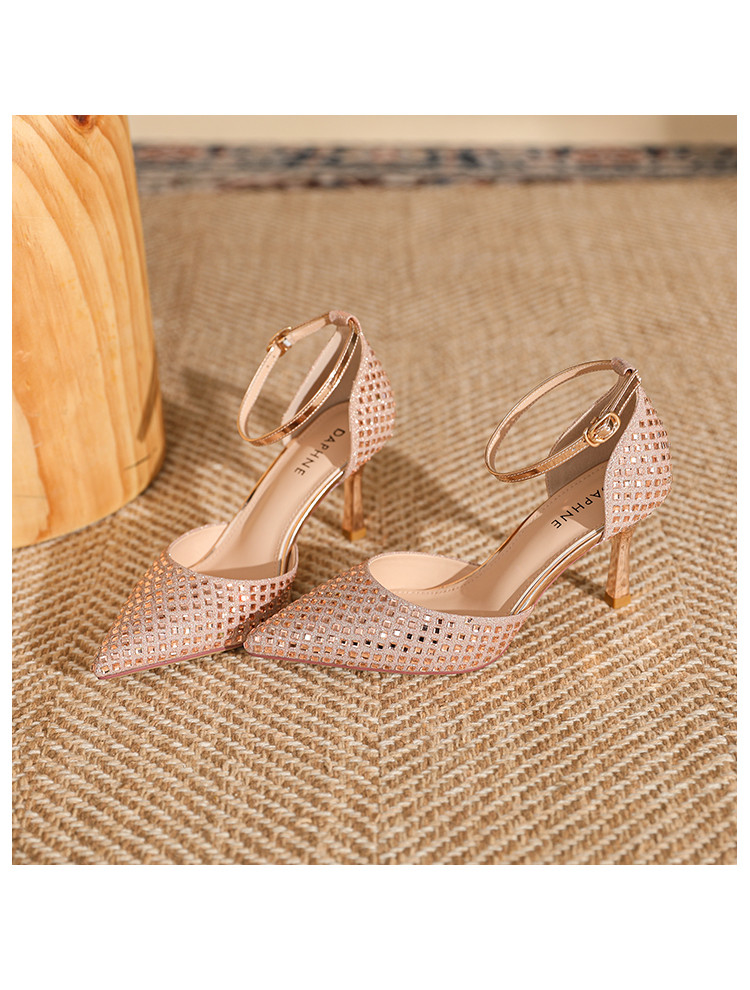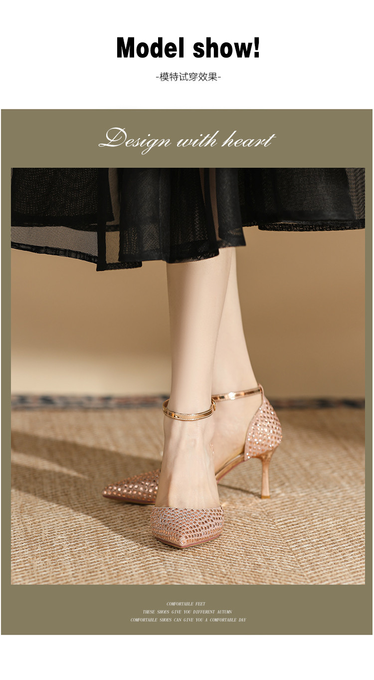 商品名称:夏季仙女风高跟鞋时装鞋时尚通勤鞋中空凉鞋婚鞋方钻细跟女单鞋 333143