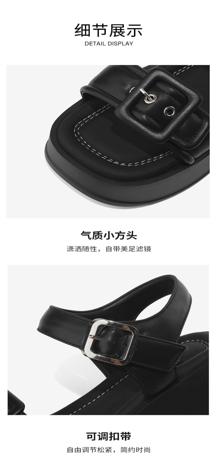 商品名称:【舒适不累脚】一字带凉鞋夏季厚底凉拖鞋女款运动凉鞋坡跟凉鞋 117399