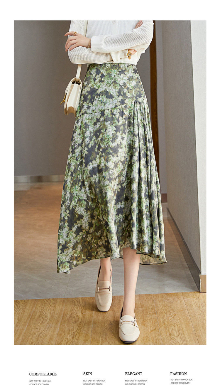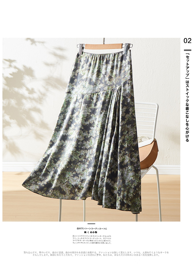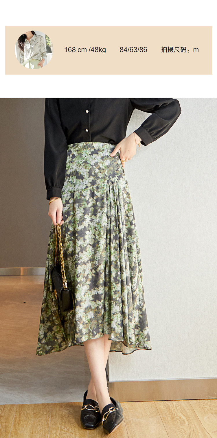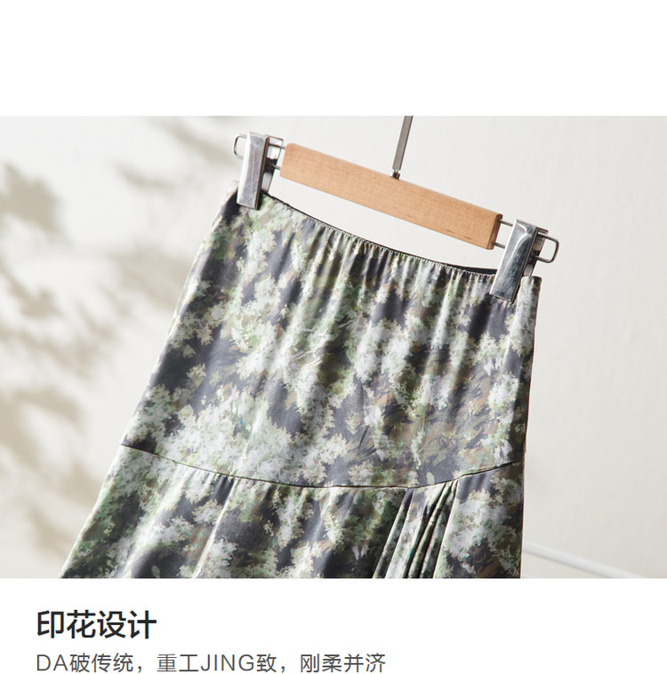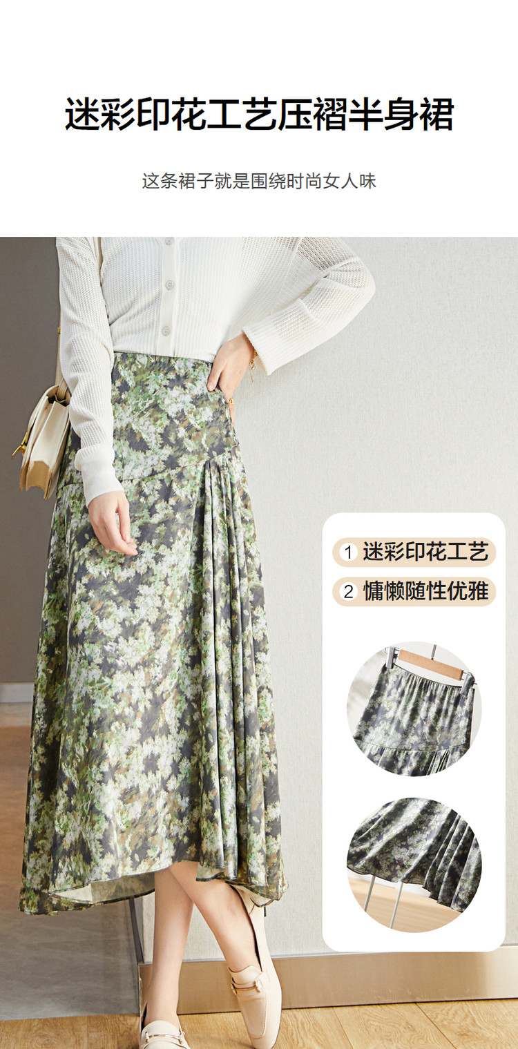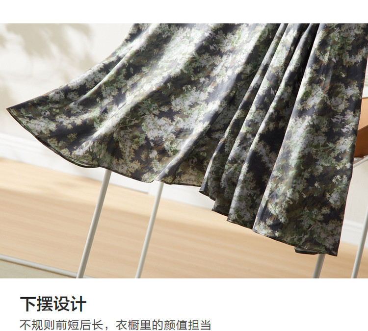 商品名称:【迷彩印花工艺】春秋不规则a字压褶前短后长半身裙女中长款 124289