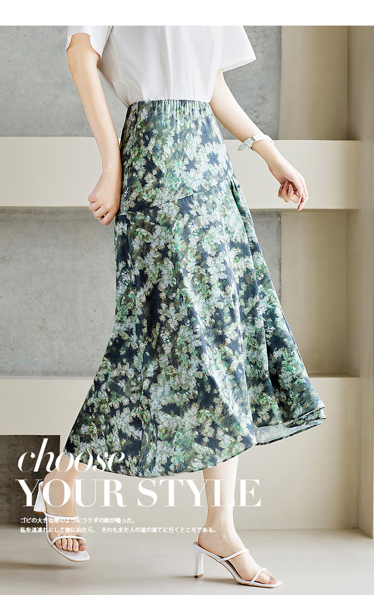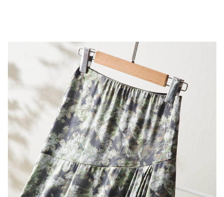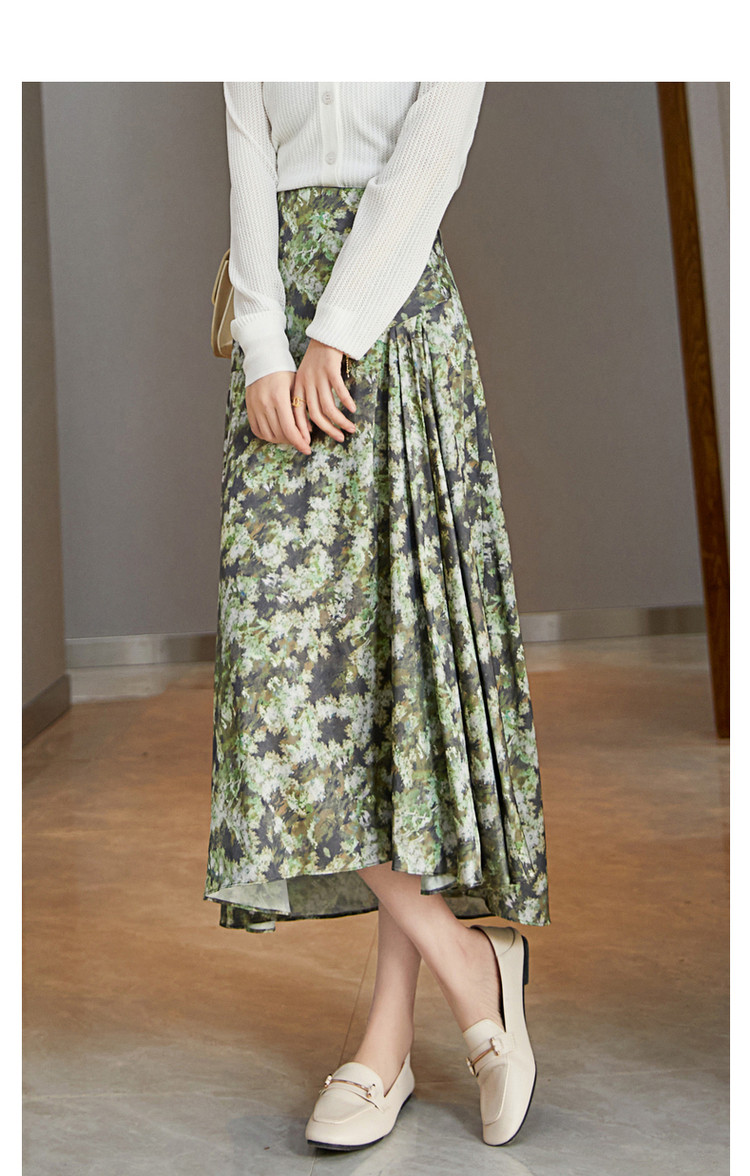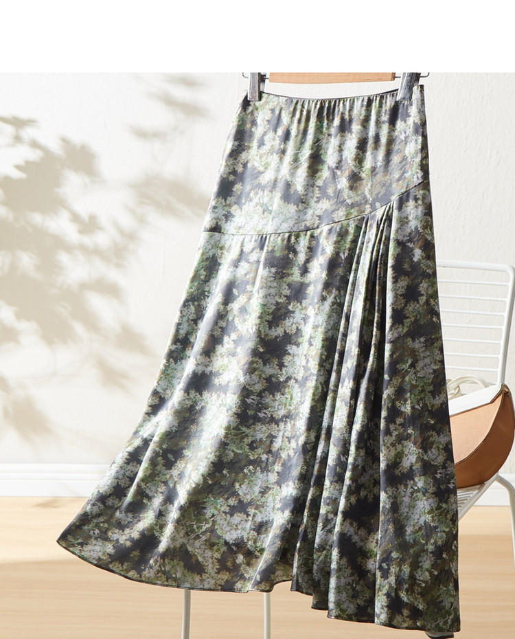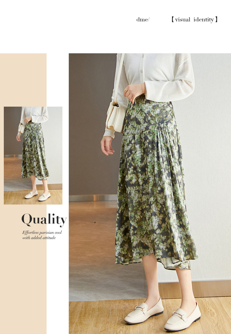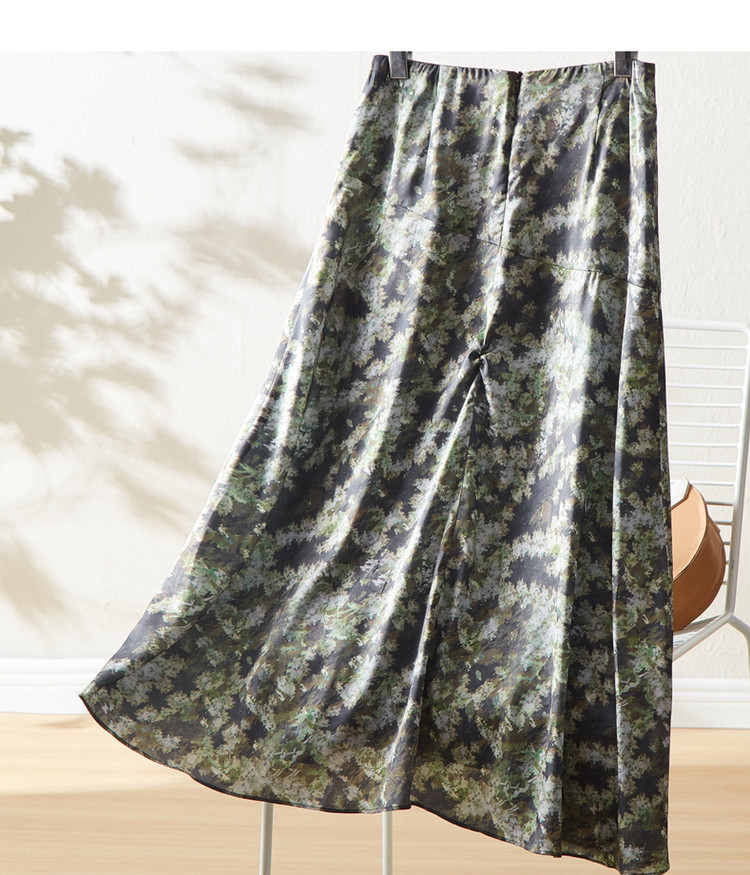 商品名称:【迷彩印花工艺】春秋不规则a字压褶前短后长半身裙女中长款 124289