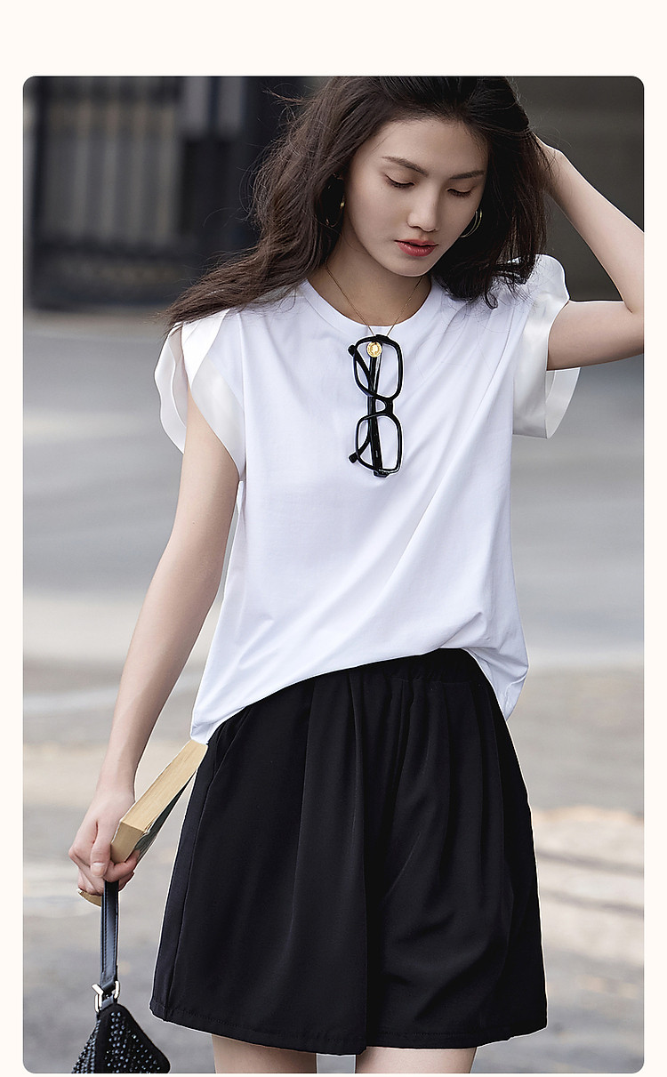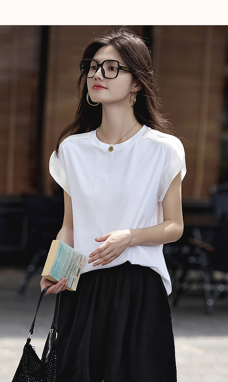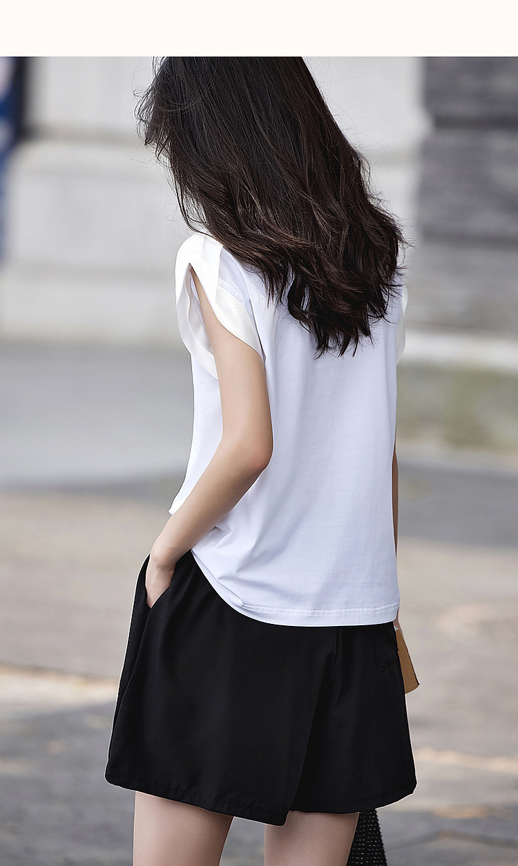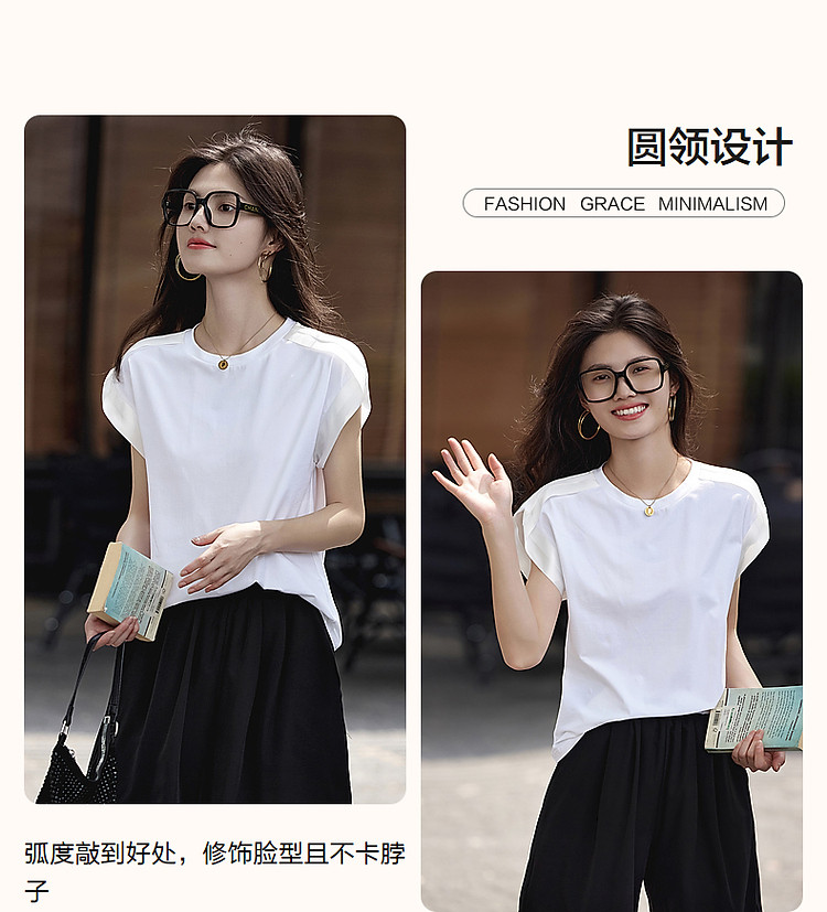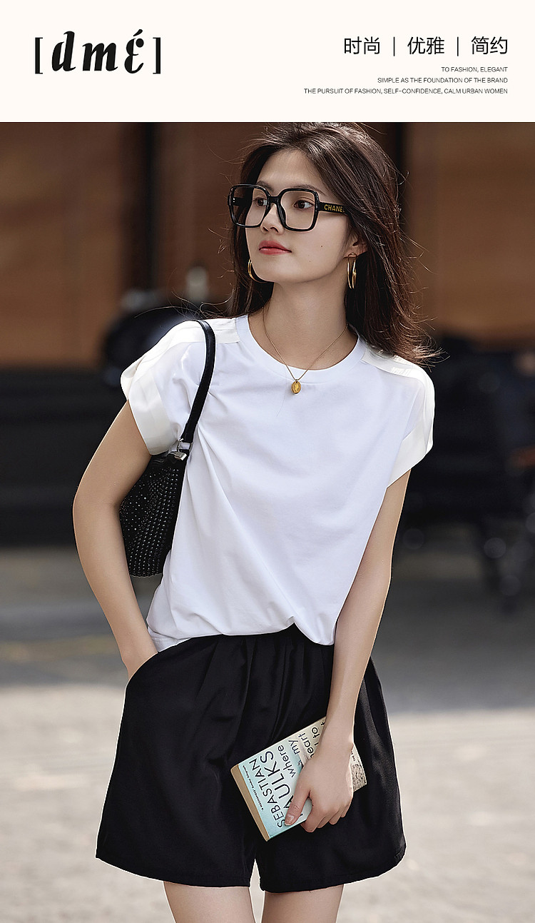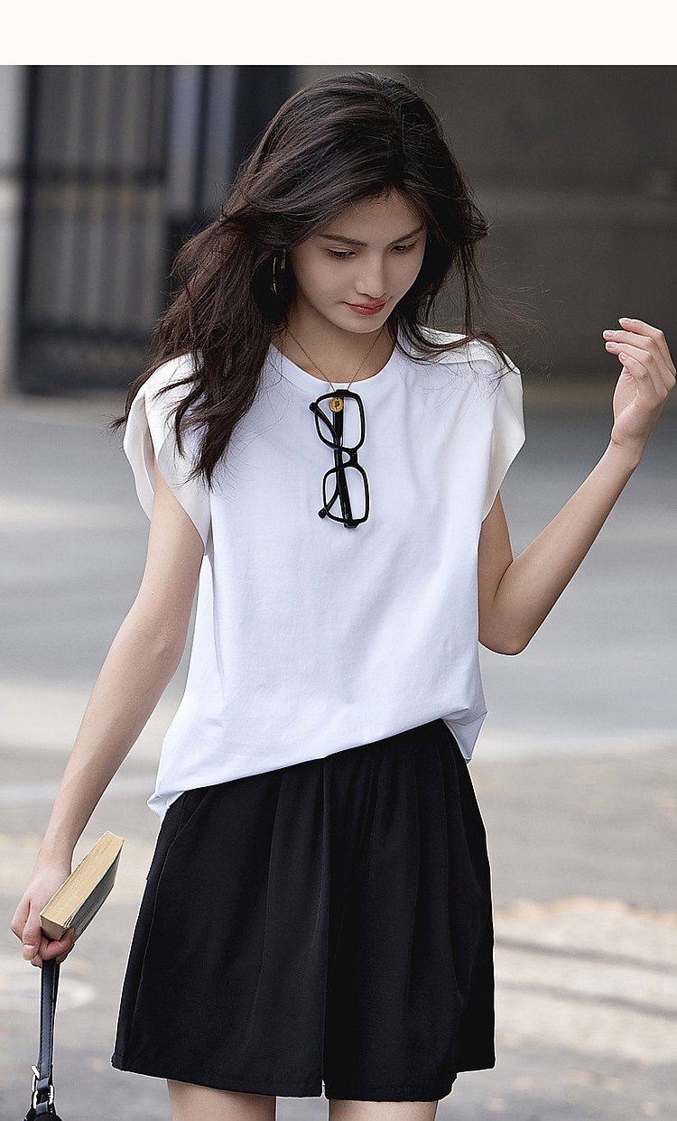 商品名称:【口碑云朵T】夏简约风圆领织带装饰爽滑无袖藏肉针织女式t恤 967489
