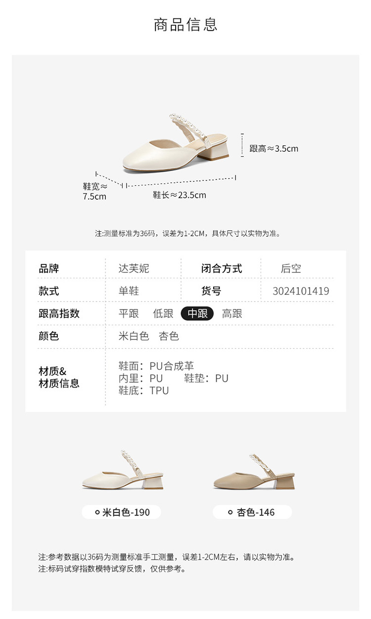 商品名称:夏季款方头珍珠舒适百搭外穿穆勒拖鞋女拖鞋通勤一脚蹬女鞋 347994