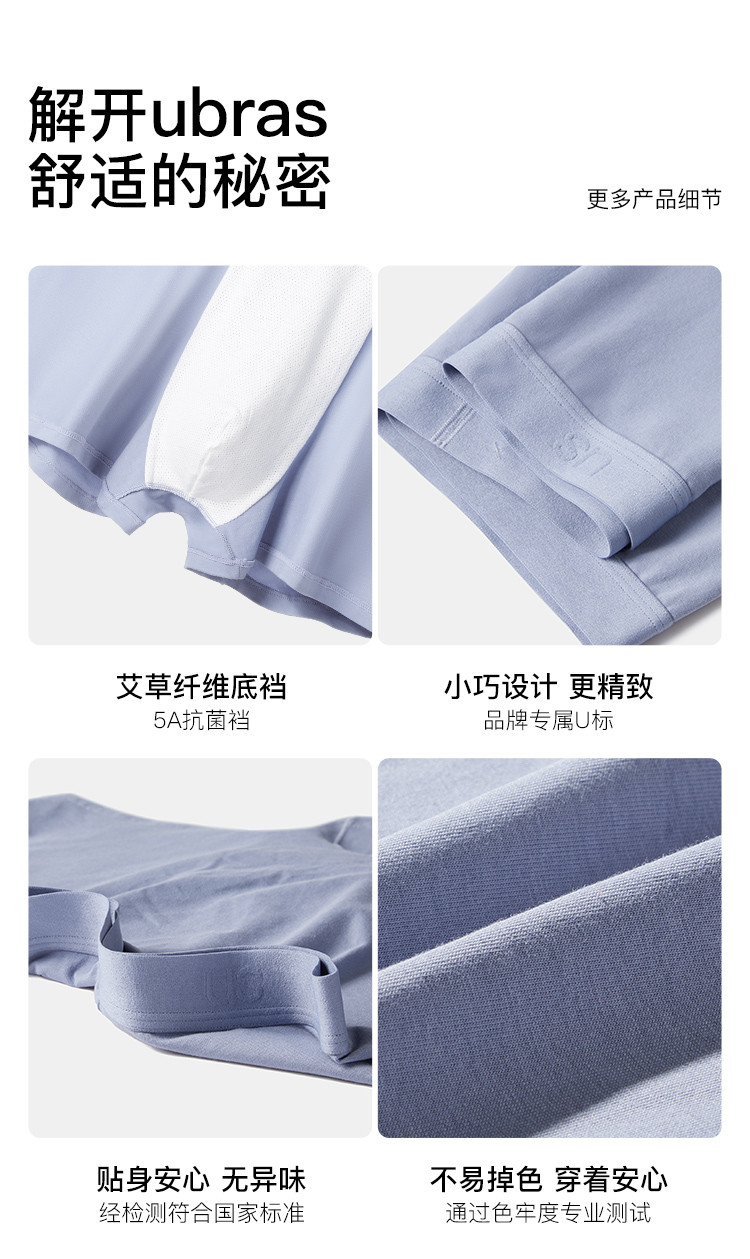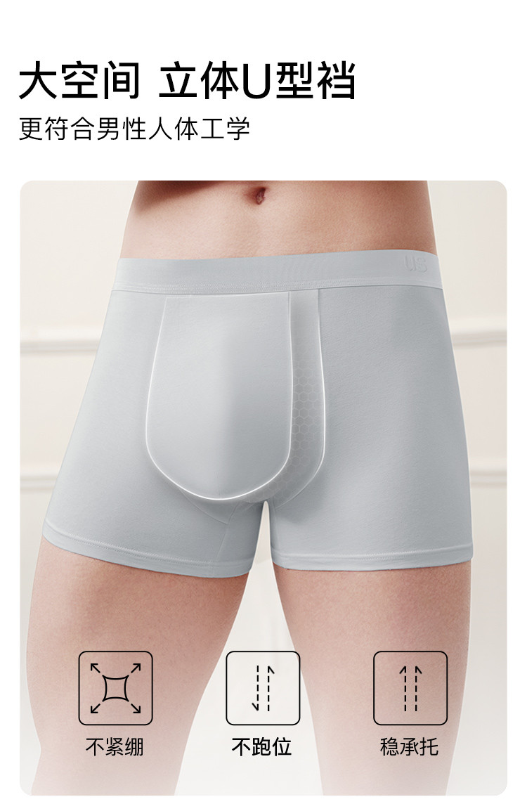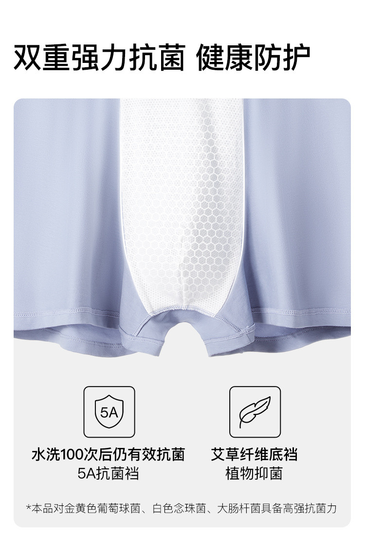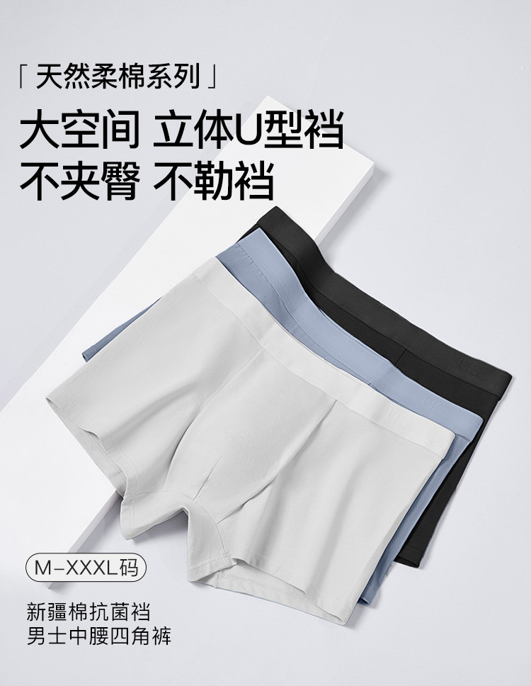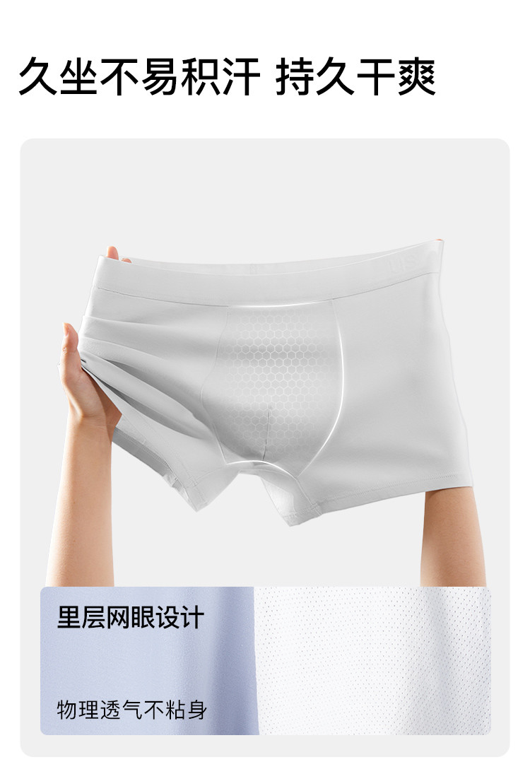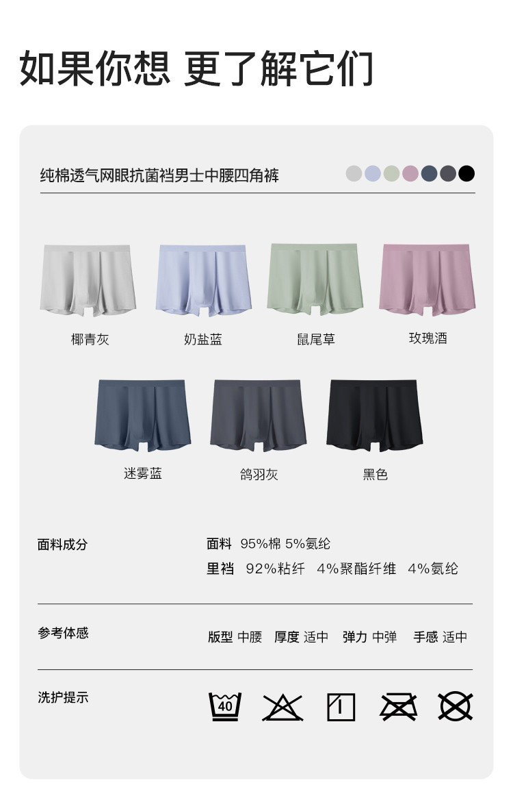 商品名称:【三条装】男士纯色内裤抗菌舒适透气网眼中腰四角裤男士 065344