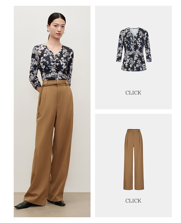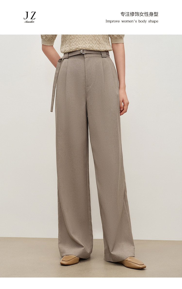 商品名称:玖姿旗下安娜蔻系列简约设计感压褶花纱通勤长裤女装秋季 870348