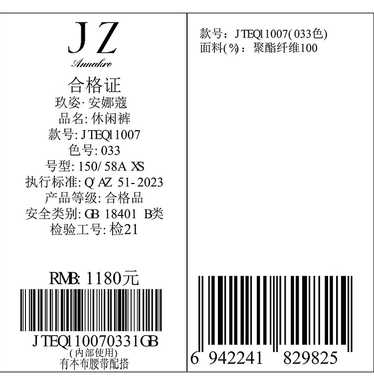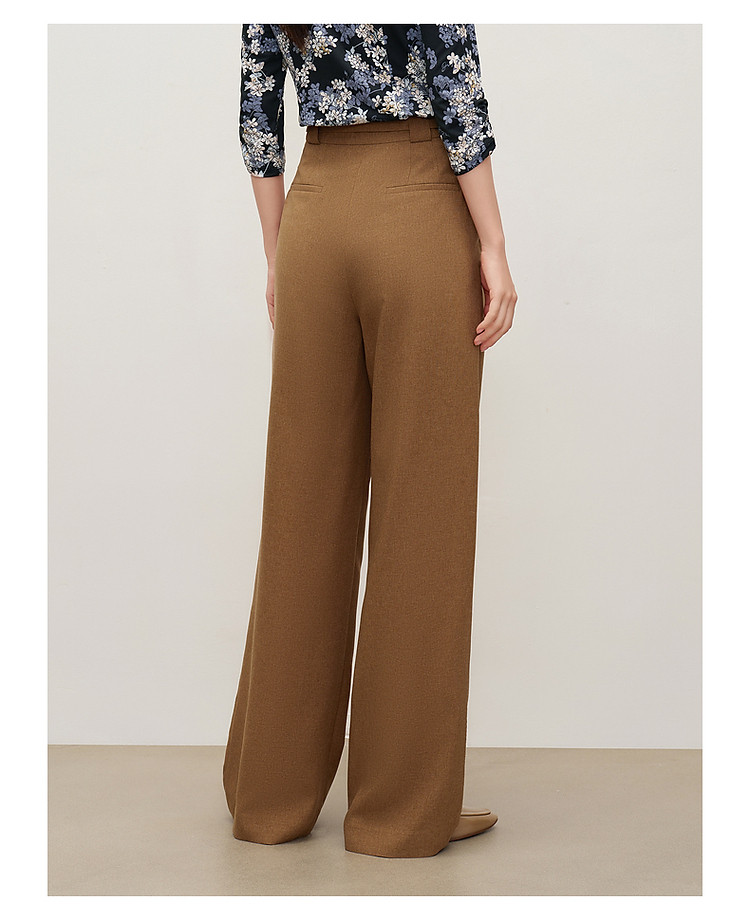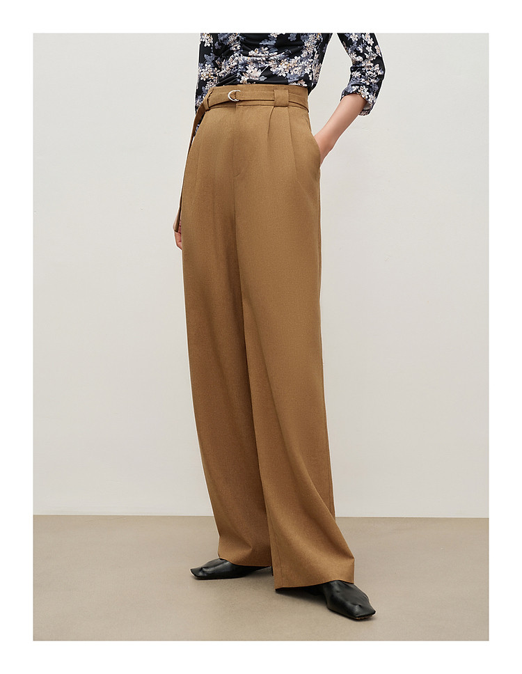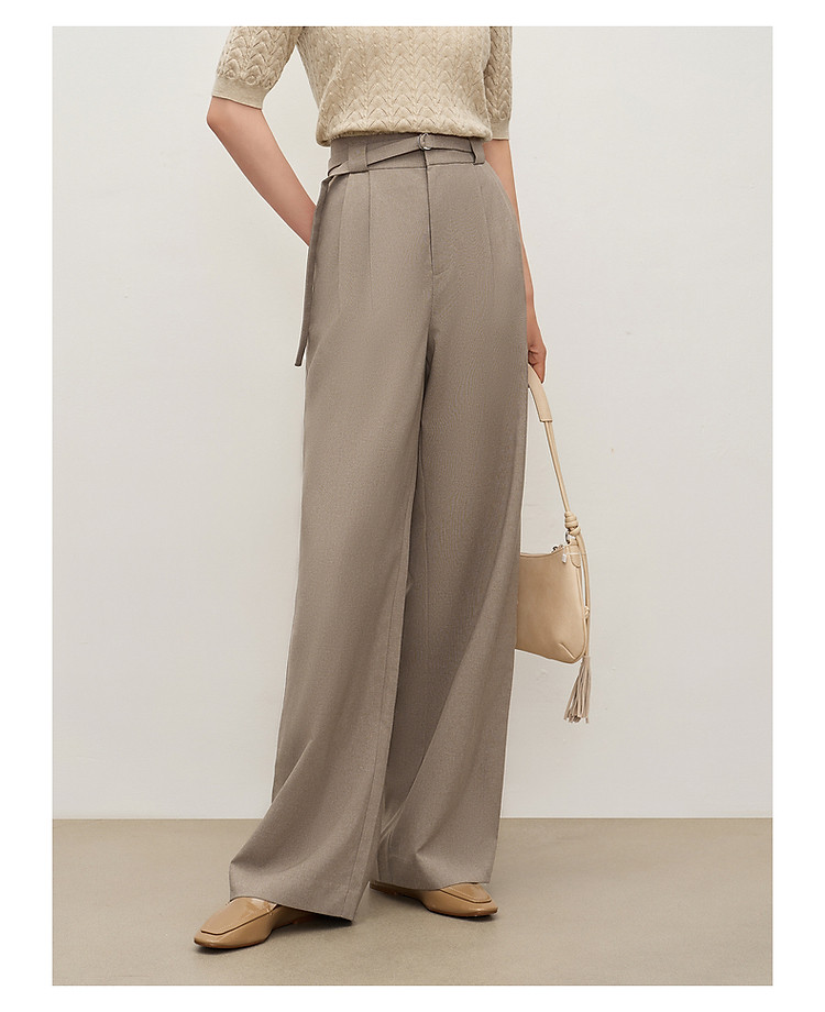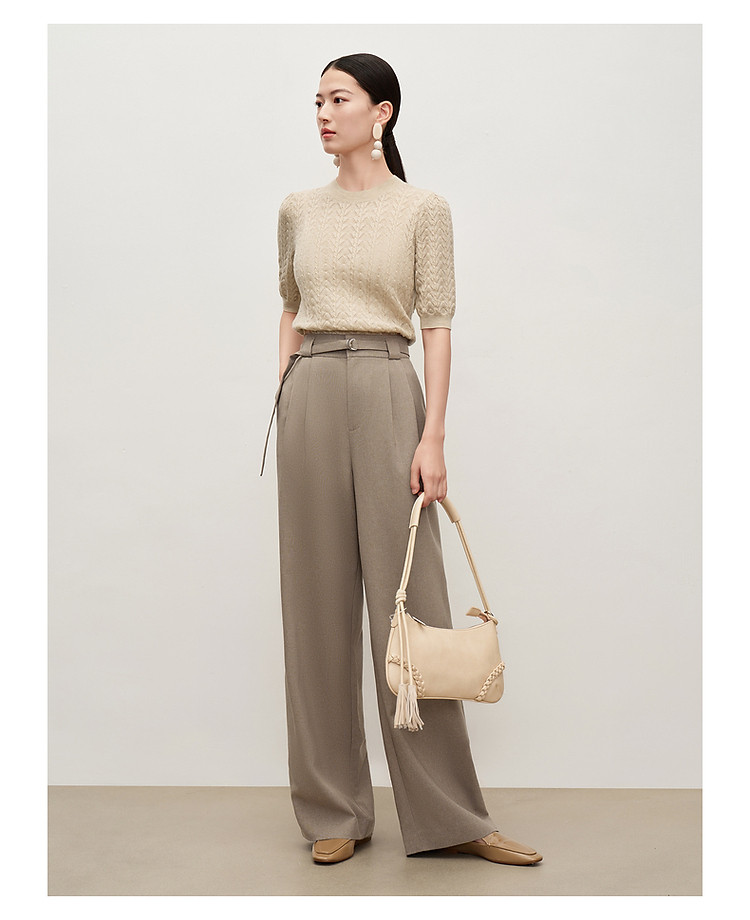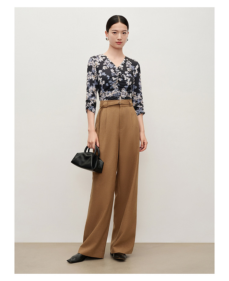 玖姿旗下安娜蔻系列简约设计感压褶花纱通勤长裤女装秋季 870348