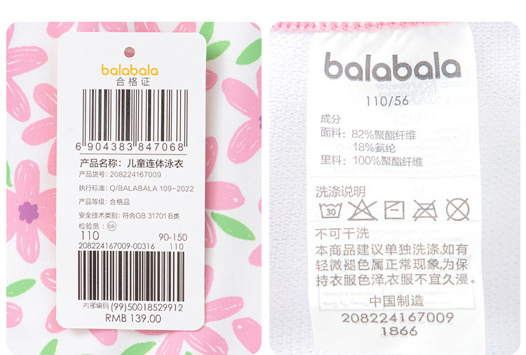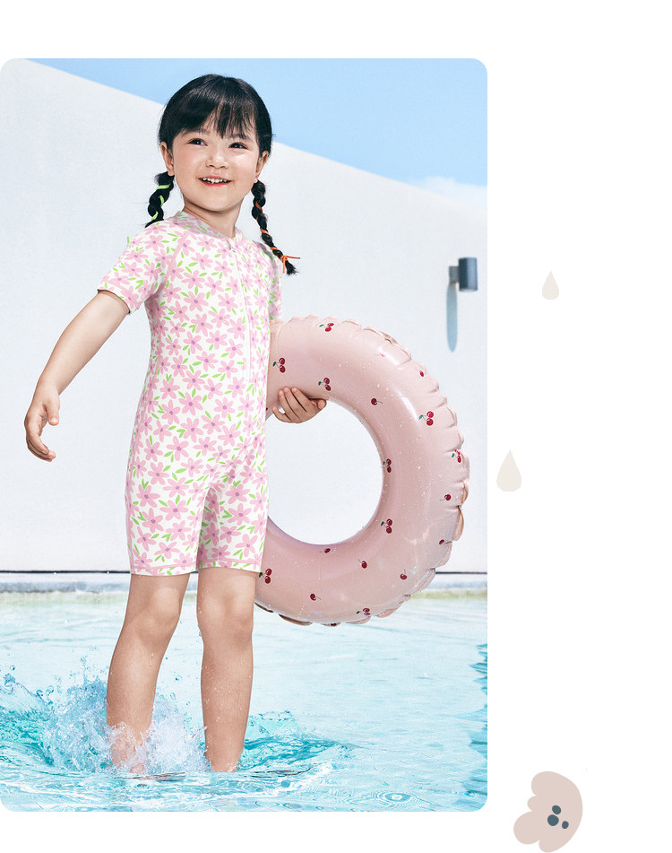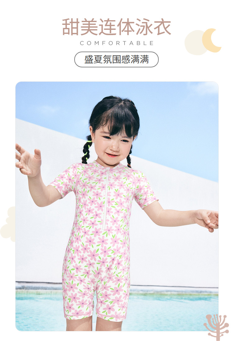 商品名称:防晒耐氯高弹儿童连体泳衣夏季女童泳装婴幼儿小童印花高弹力甜美 932613