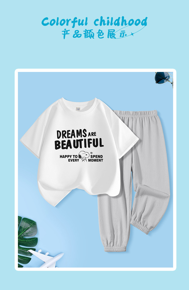 商品名称:童装男童夏装25年夏季运动套装儿童防蚊长裤中大童纯棉短袖t恤 471583