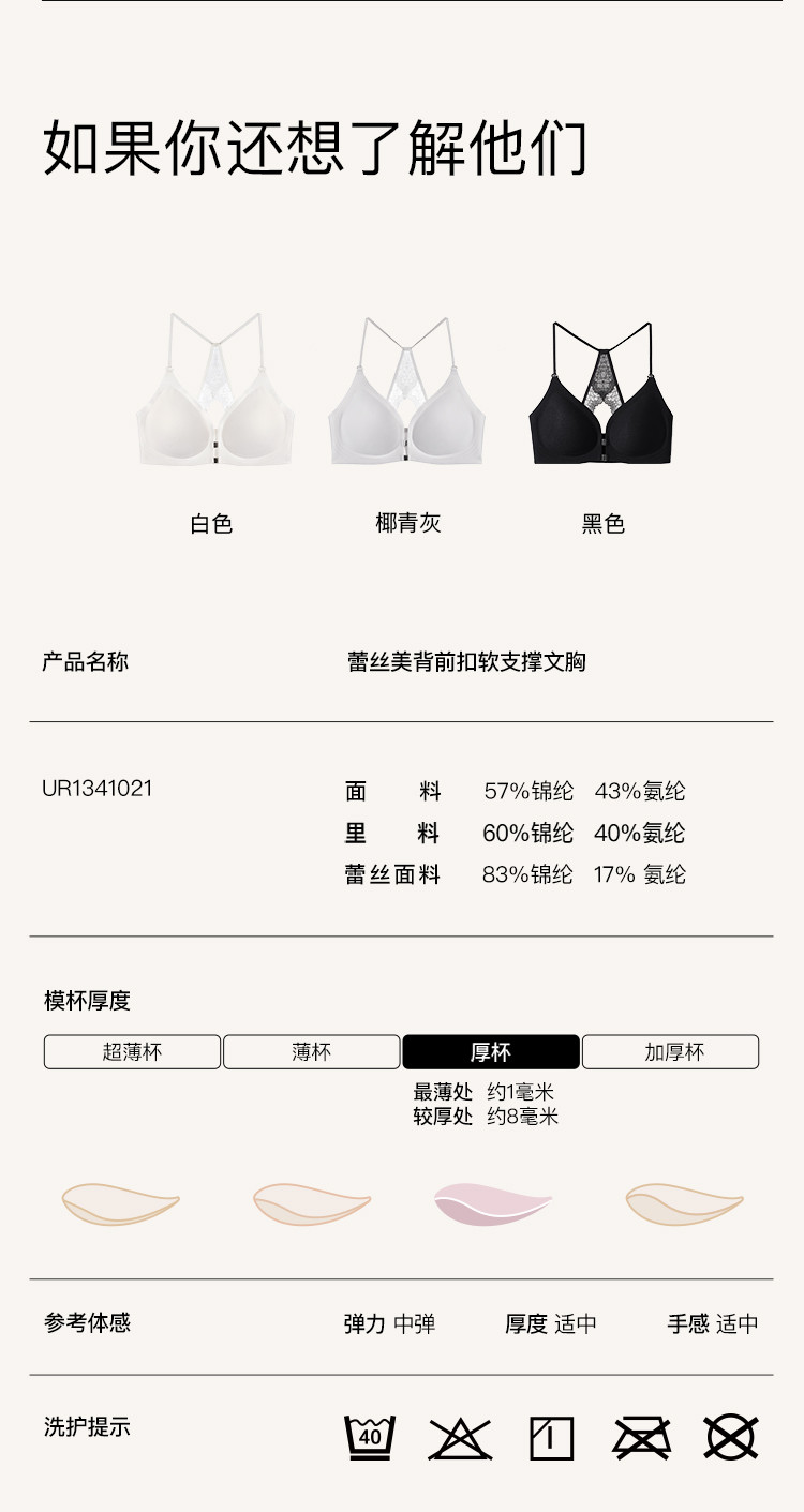 商品名称:【性感蕾丝 聚拢升杯】蕾丝美背前扣软支撑文胸女士内衣 979008