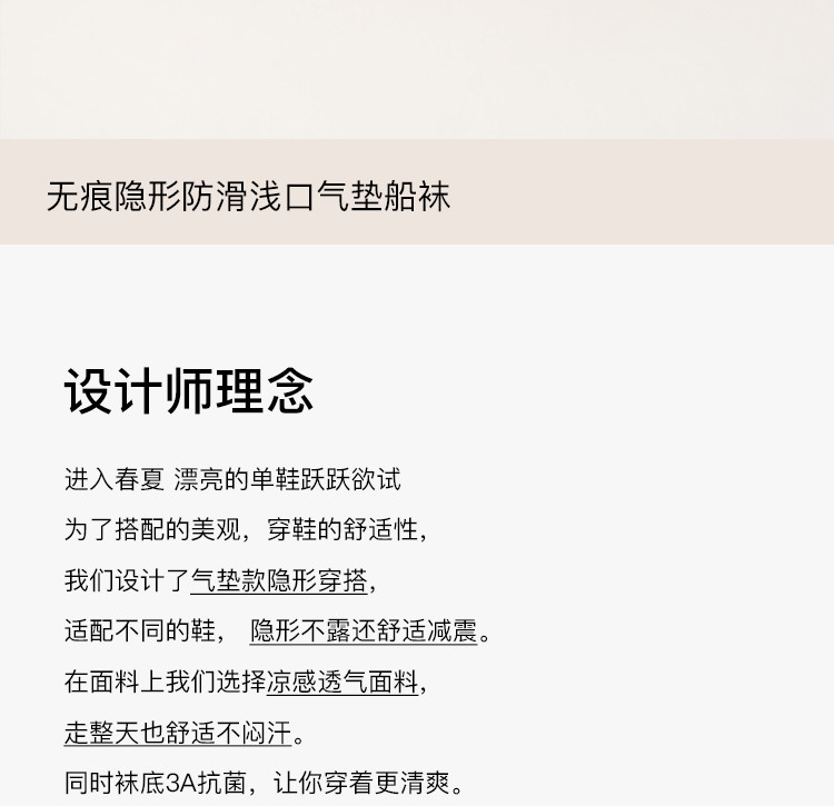 商品名称:【无痕百搭】3双装浅口气垫船袜减震不掉跟舒适女袜夏季 316416