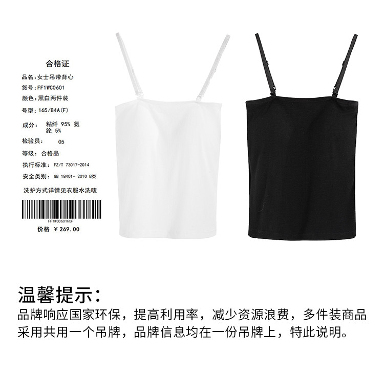 商品名称:【2件装】经典纯色简约百搭打底吊带背心女内搭 781195