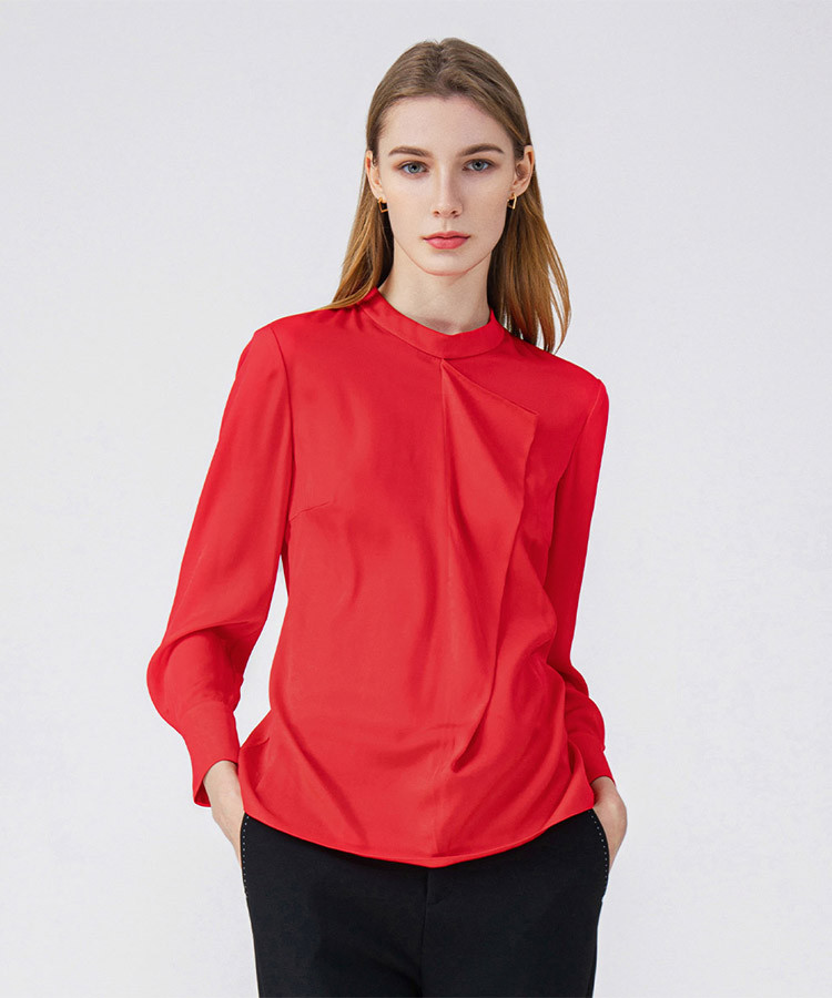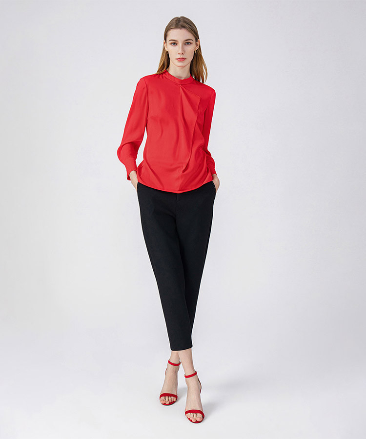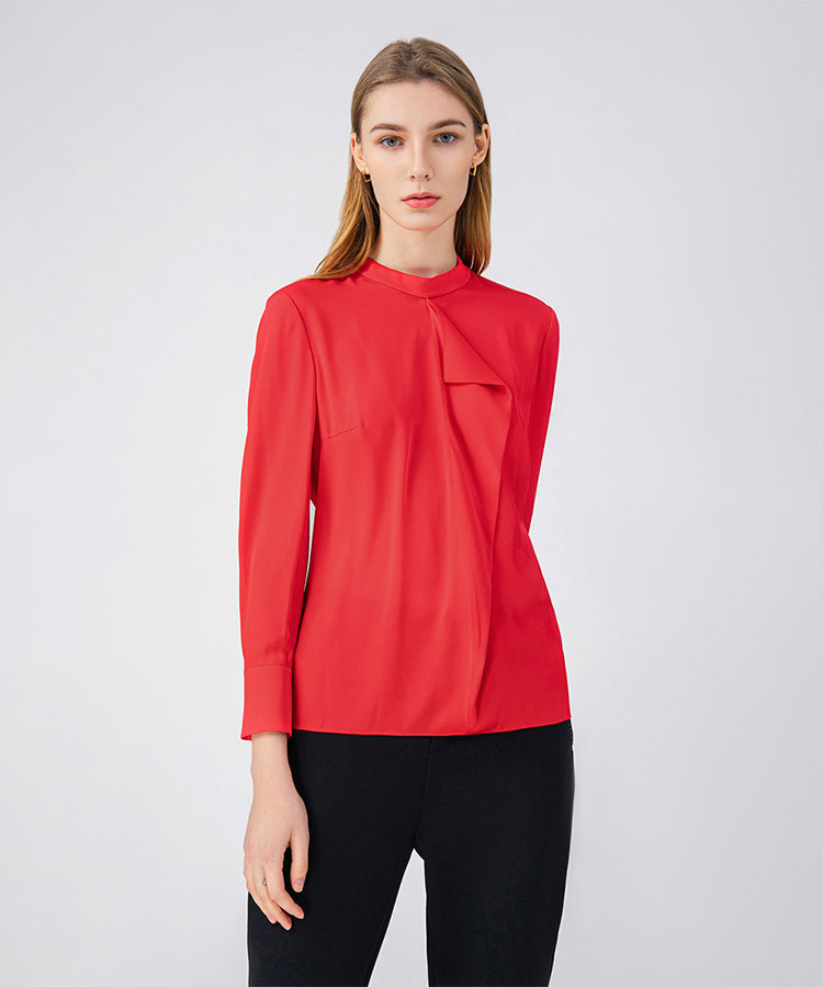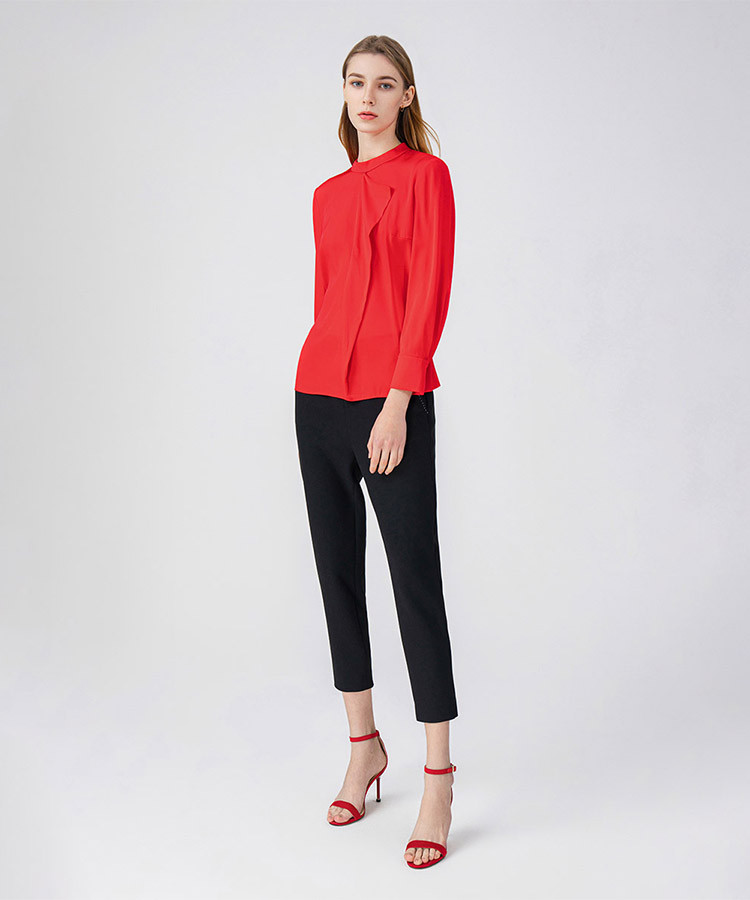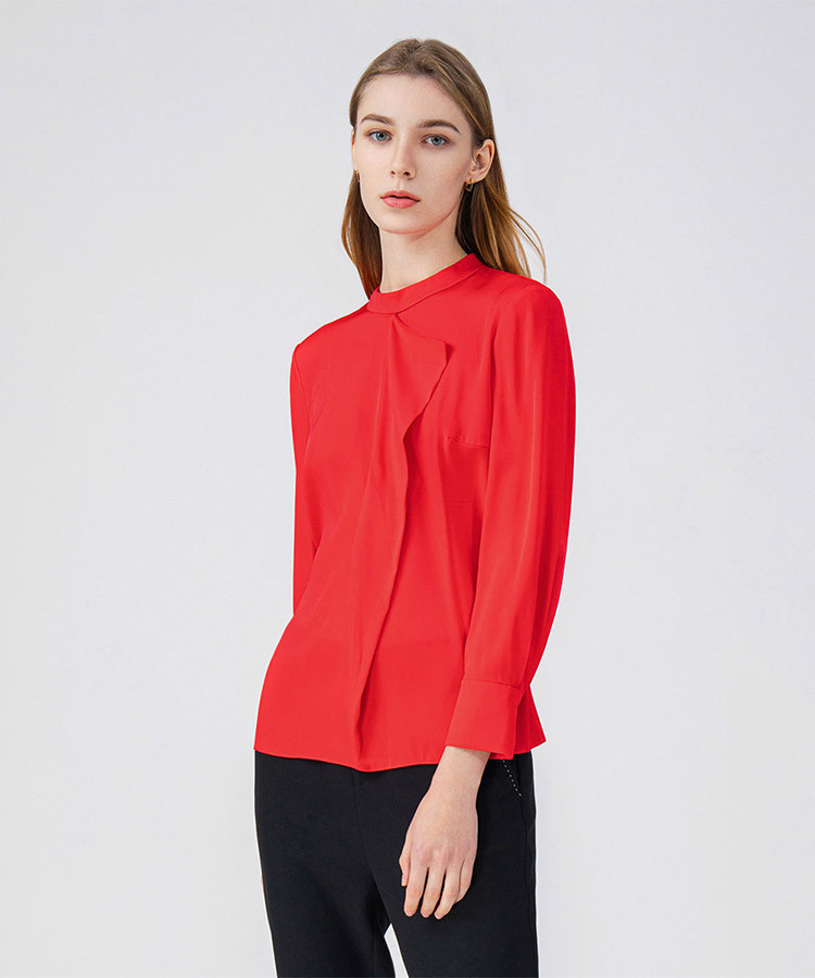 商品名称:宝姿女装烈焰红飘片日常休闲衬衫长袖上衣 605194