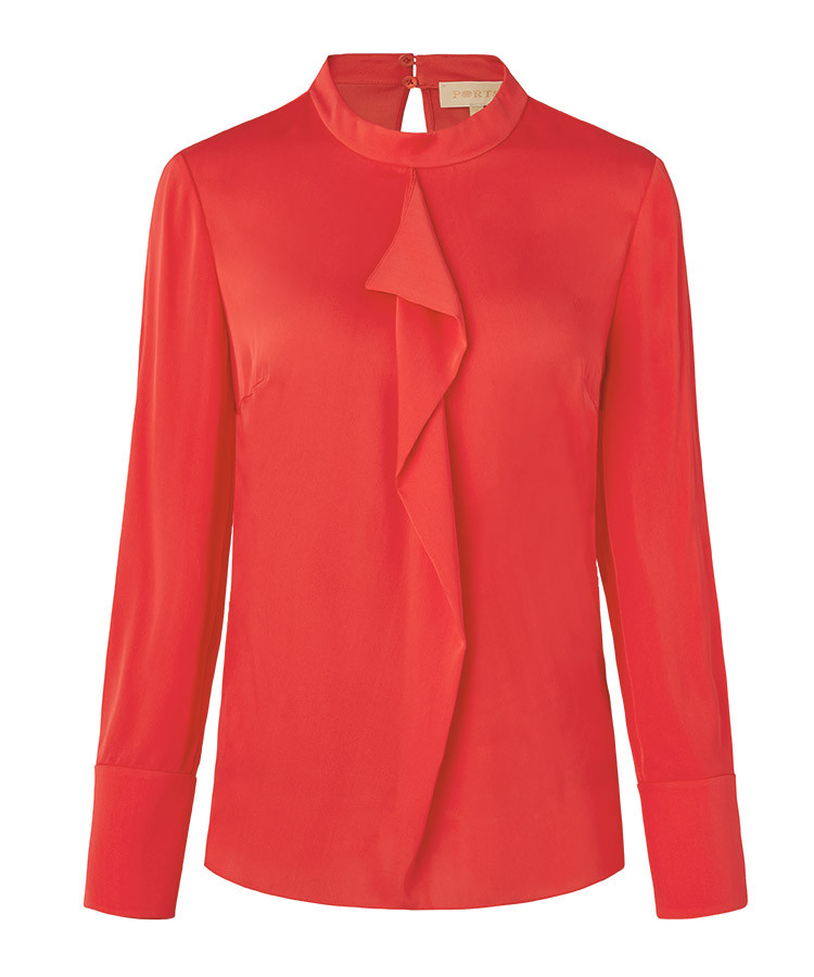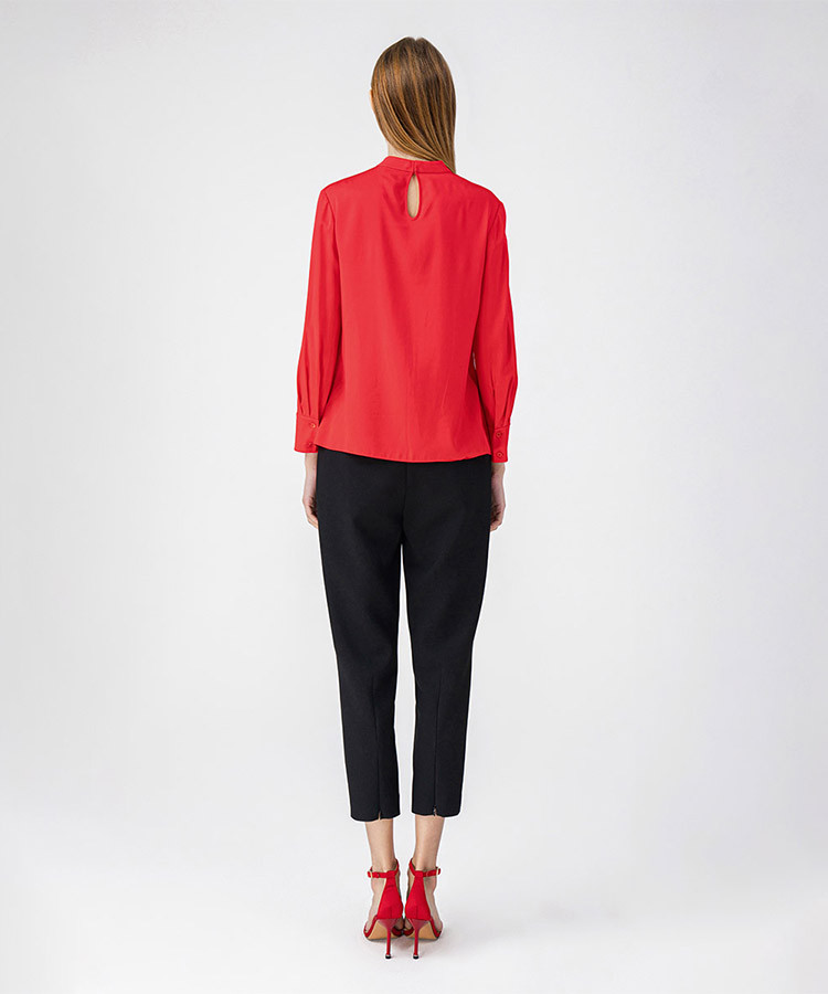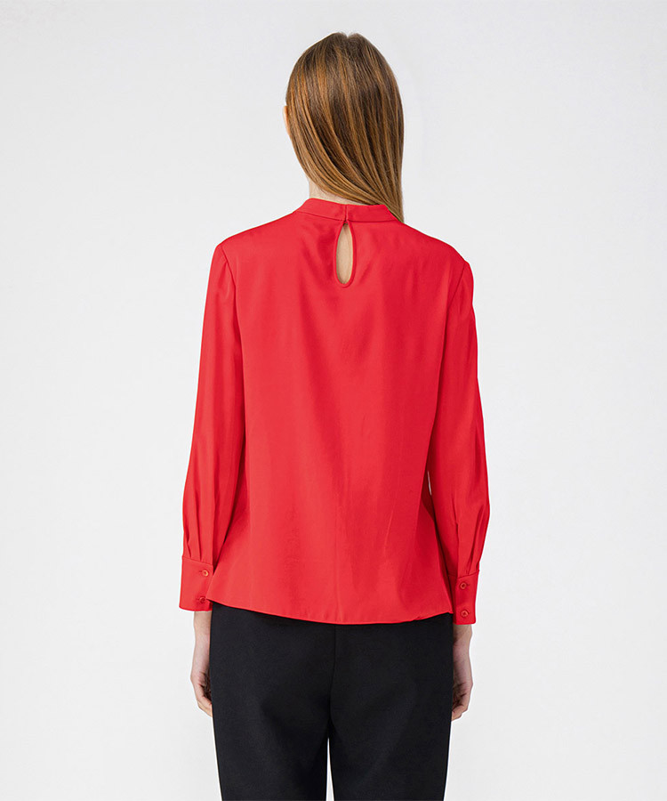 宝姿女装烈焰红飘片日常休闲衬衫长袖上衣 605194