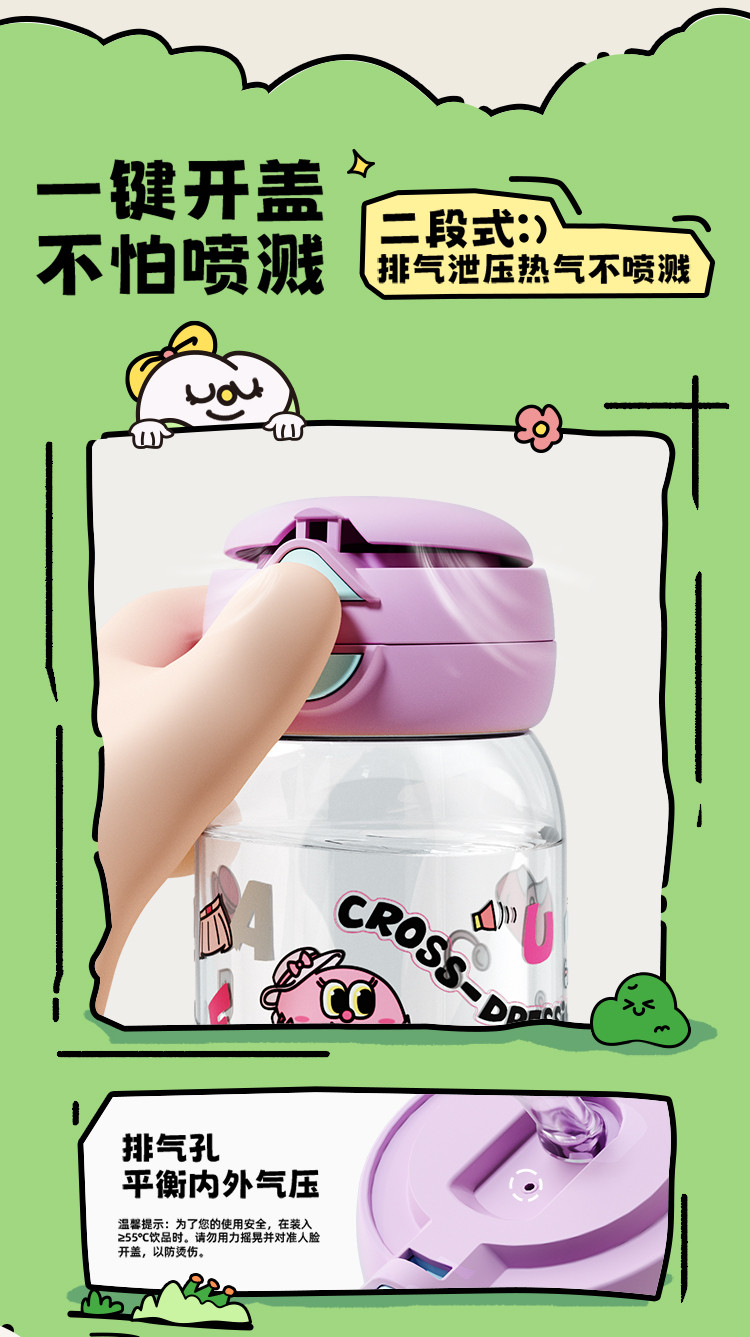 一杯三饮儿童水杯男童女童吸管杯卡通可爱时尚便携小学生冷热水杯 137669