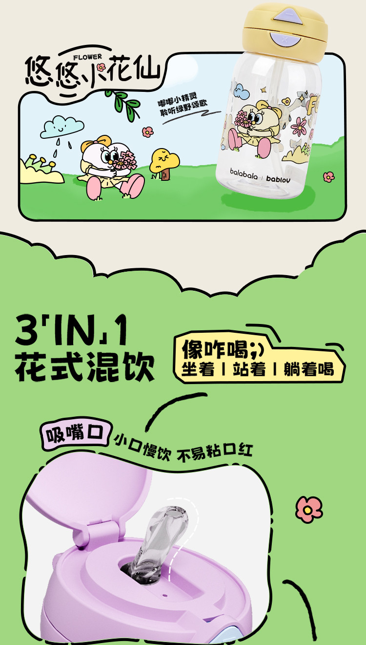 商品名称:一杯三饮儿童水杯男童女童吸管杯卡通可爱时尚便携小学生冷热水杯 137669
