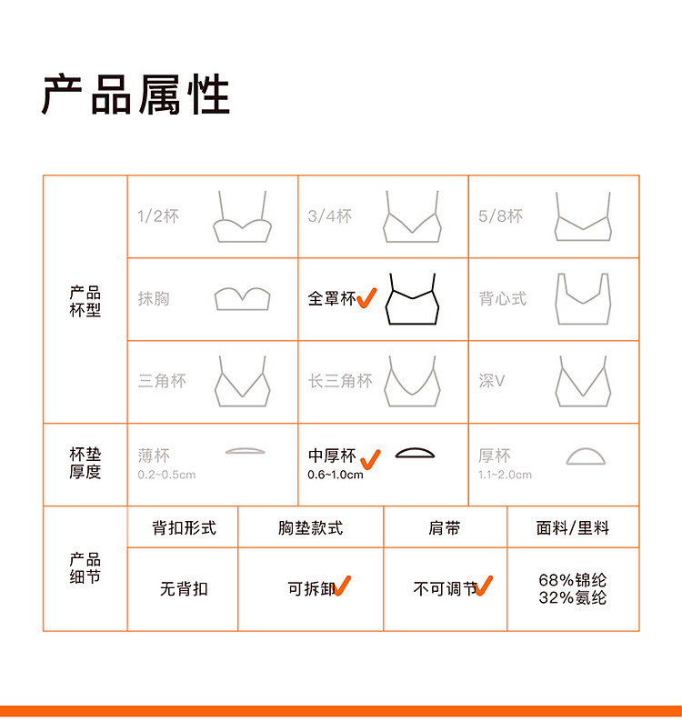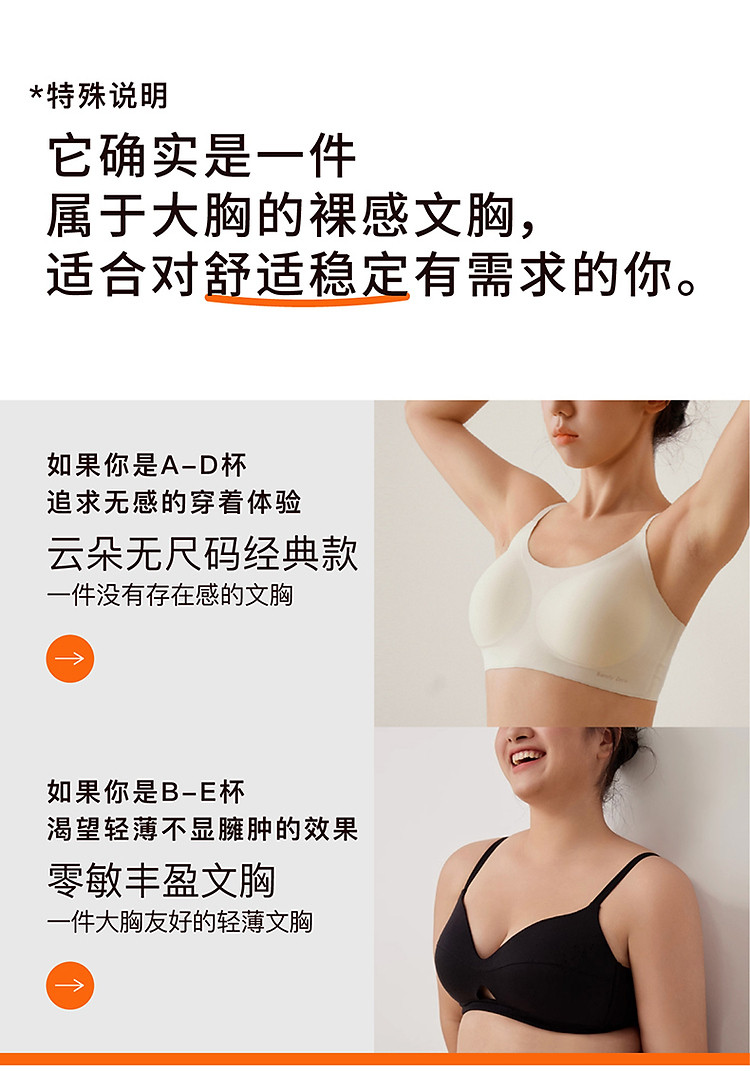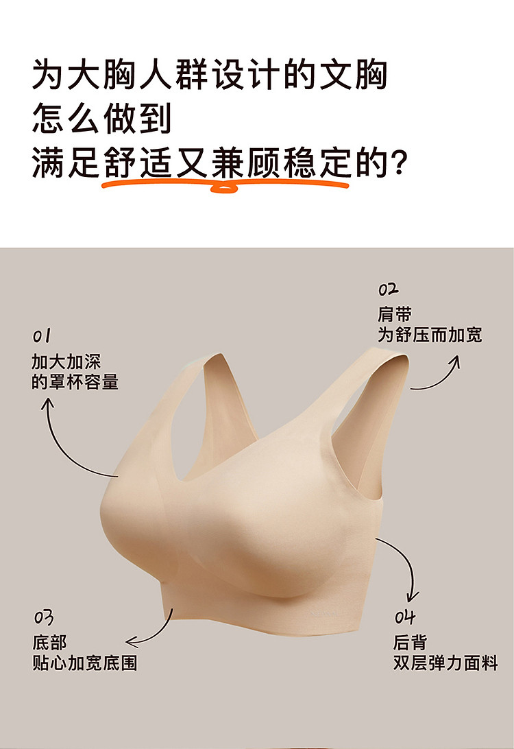 商品名称:NEIWAI内外橙标|云朵无尺码丰盈款大码文胸均码内衣承托 965130