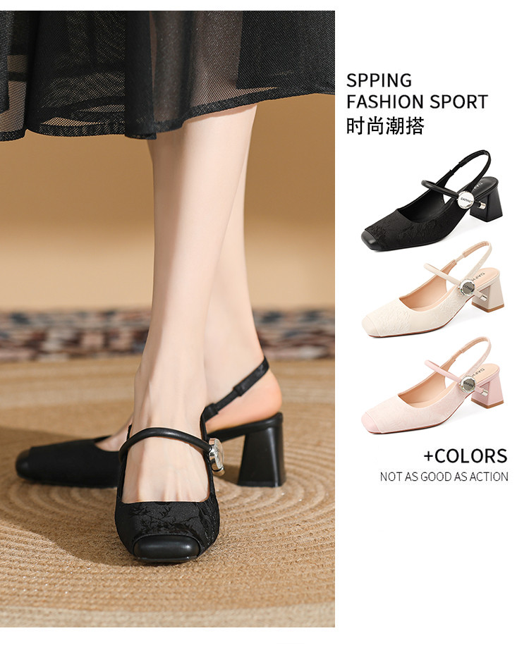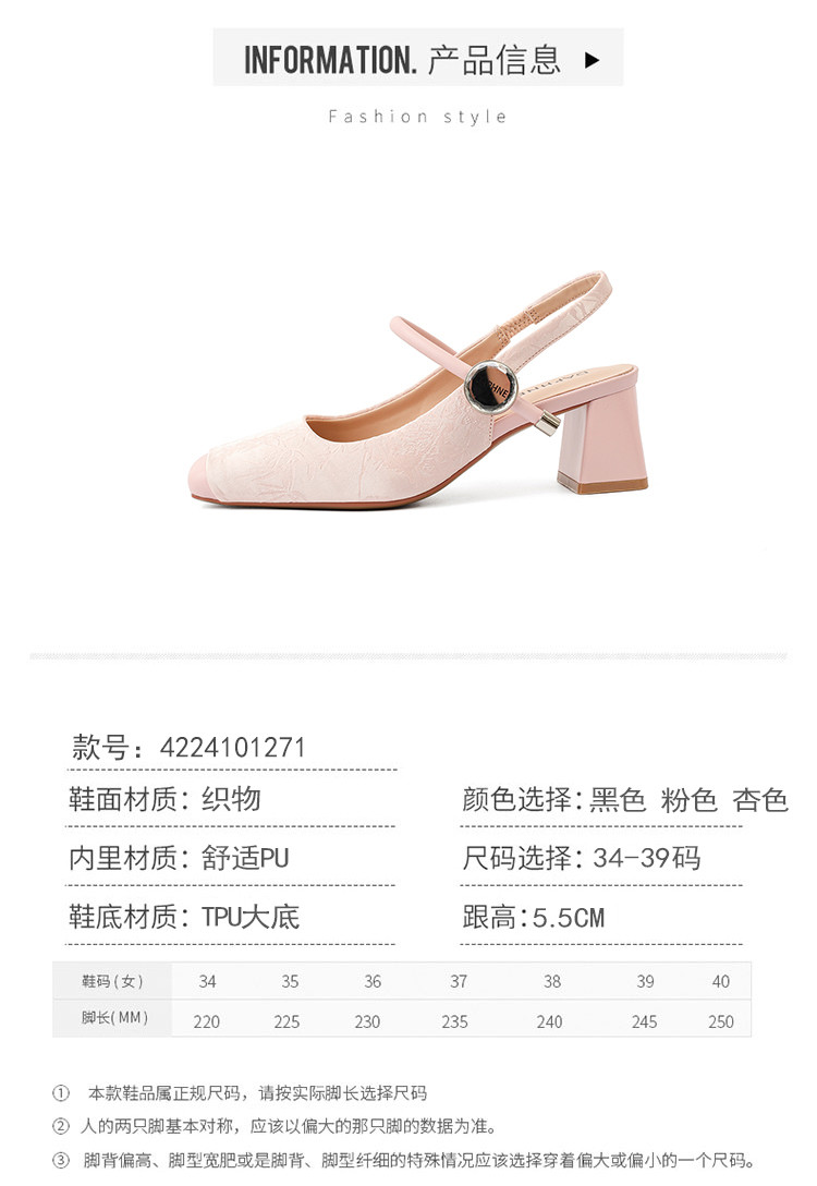 商品名称:【气质优雅】粗跟包头凉鞋女百搭女士凉鞋女夏季凉鞋玛丽珍鞋女鞋 718935