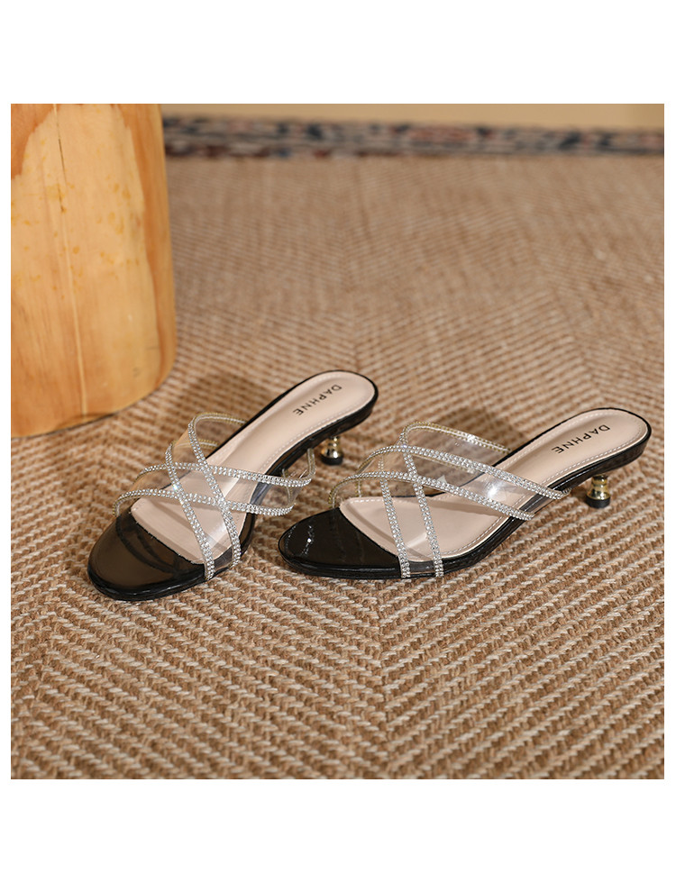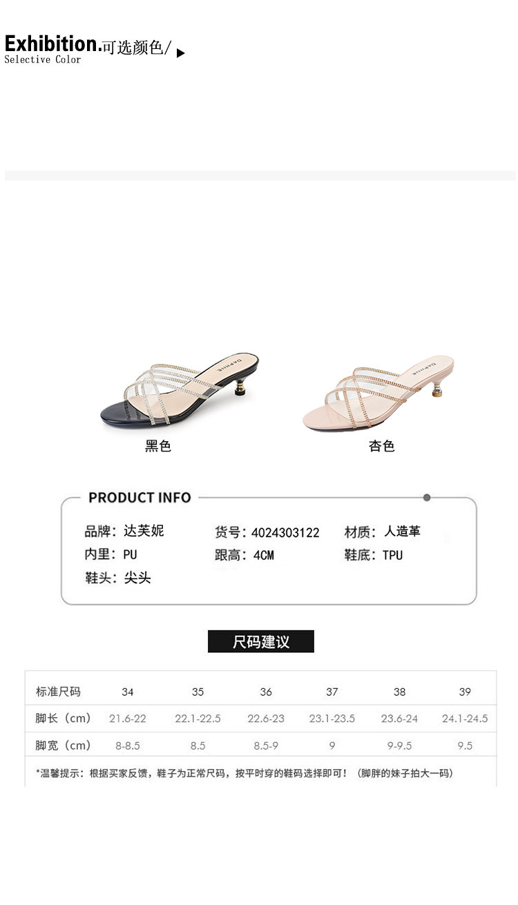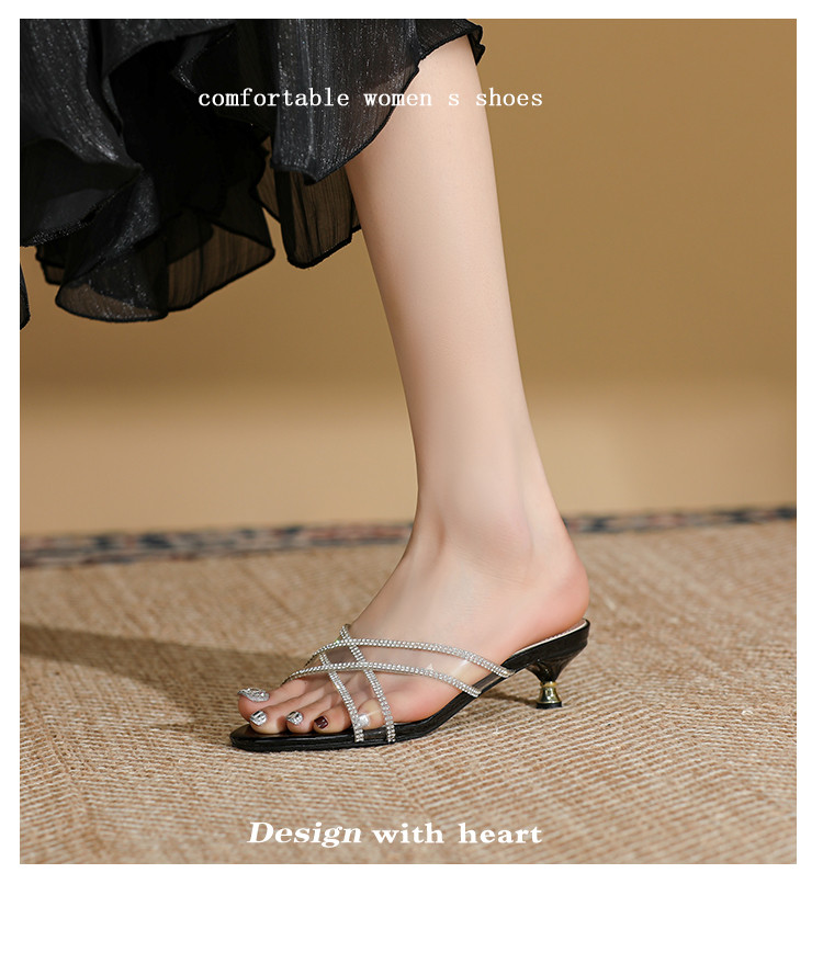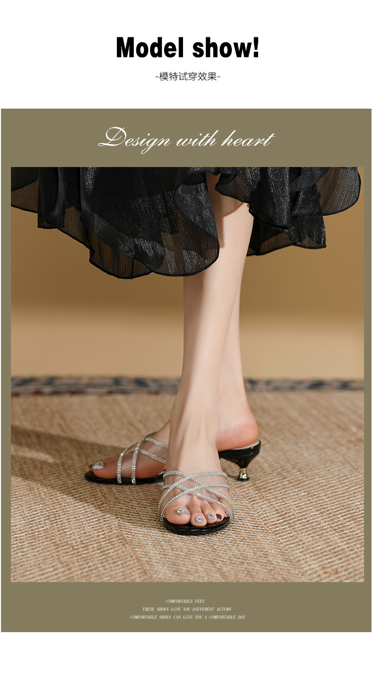 商品名称:夏季气质高跟水钻凉拖鞋女时尚细跟女外穿拖鞋一脚蹬时装鞋通勤鞋 409367
