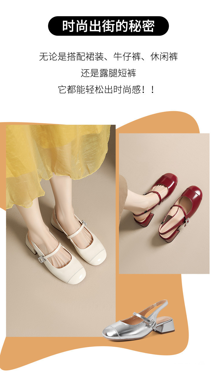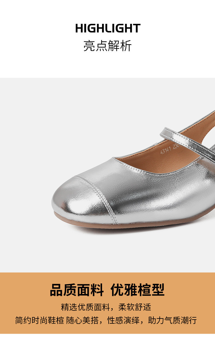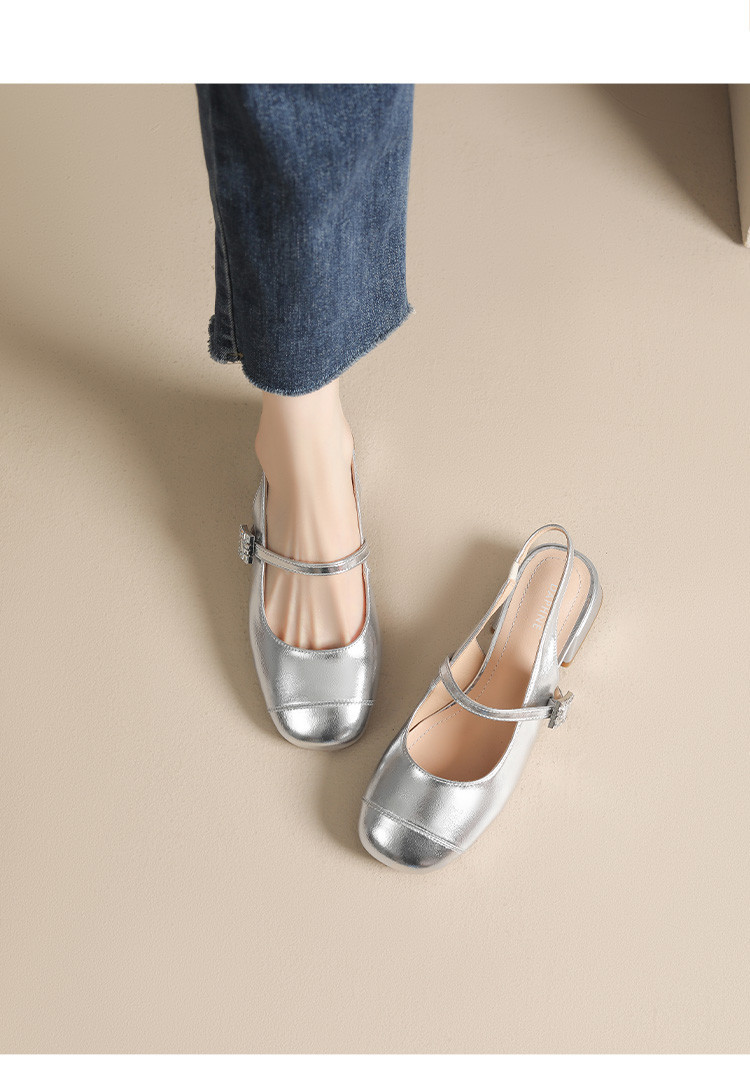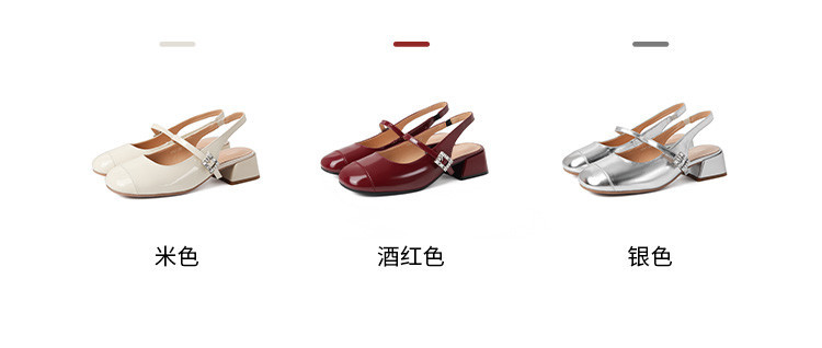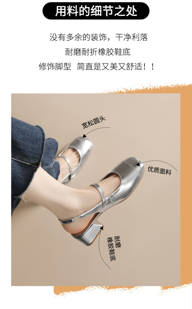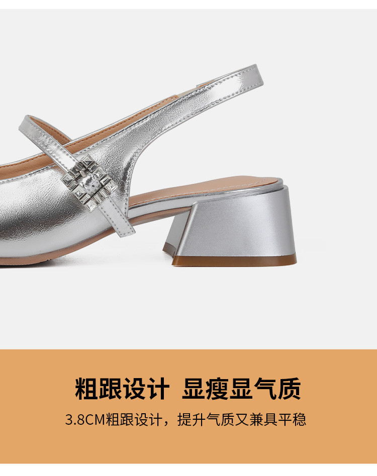 商品名称:包头凉鞋女夏季中跟银色玛丽珍女皮鞋浅口后空单鞋 041370