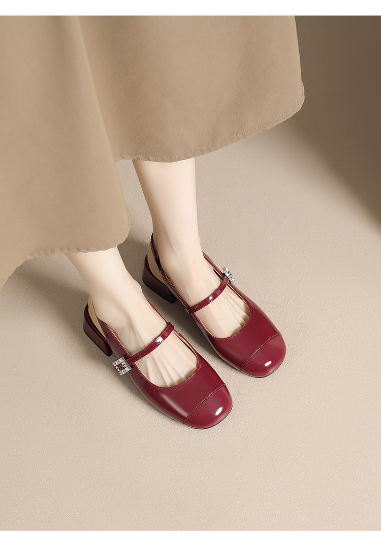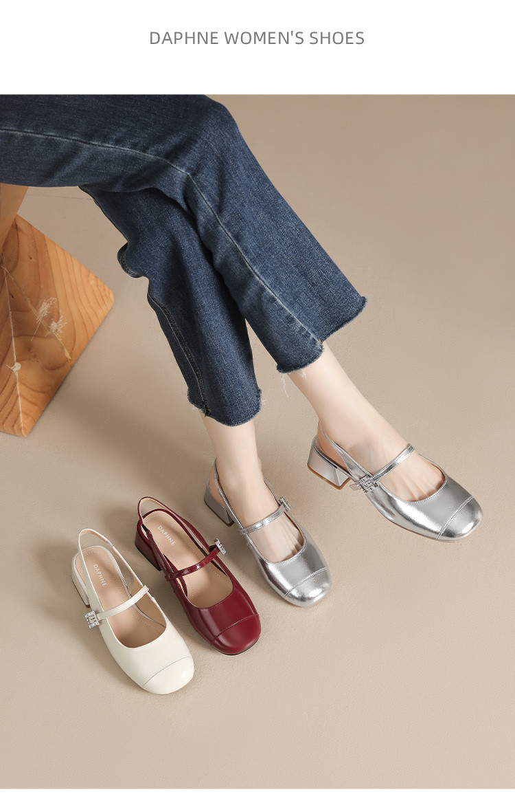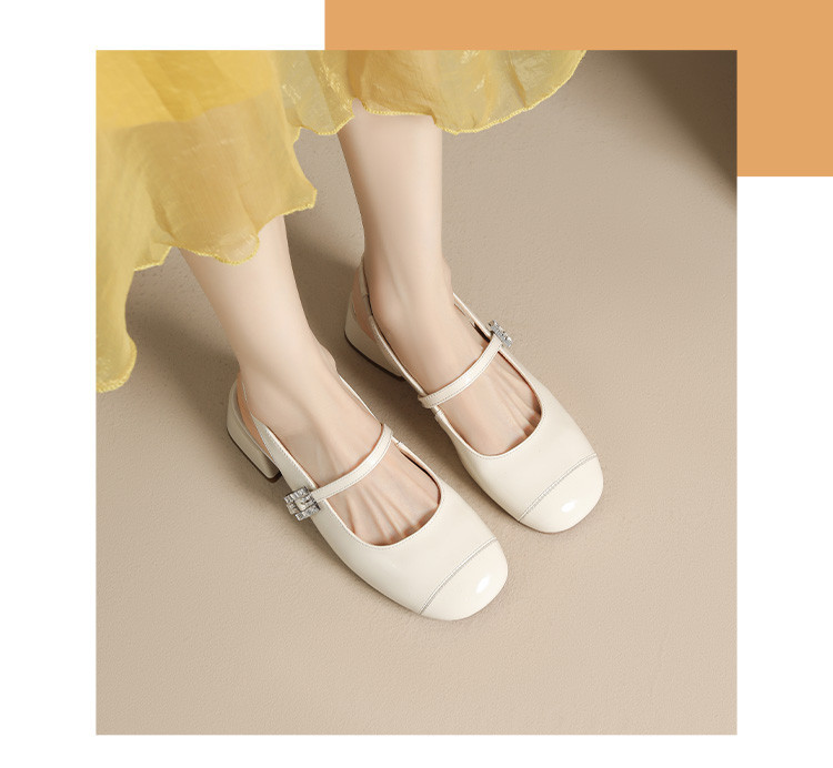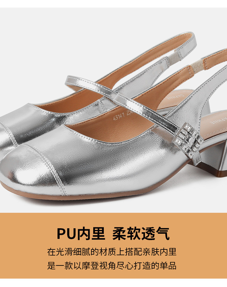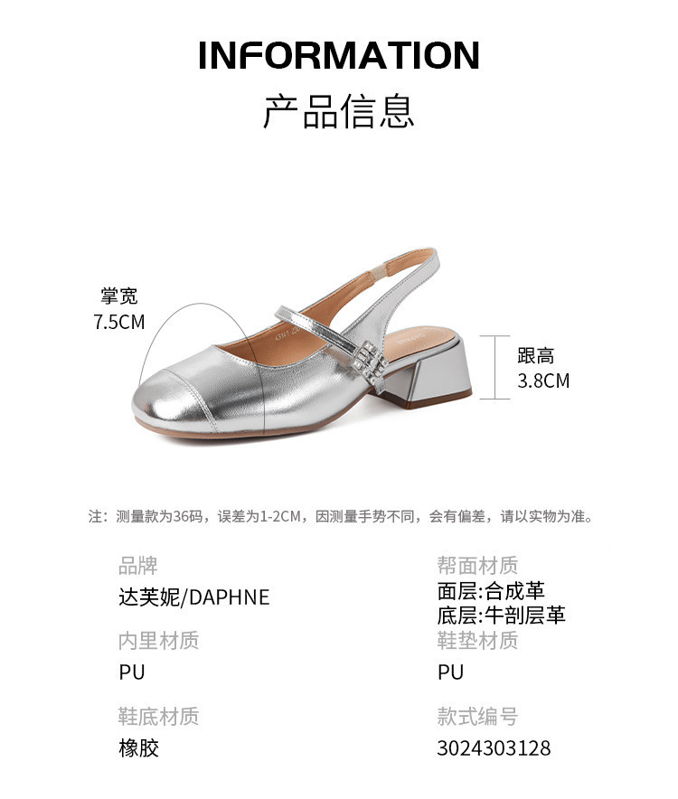 商品名称:包头凉鞋女夏季中跟银色玛丽珍女皮鞋浅口后空单鞋 041370